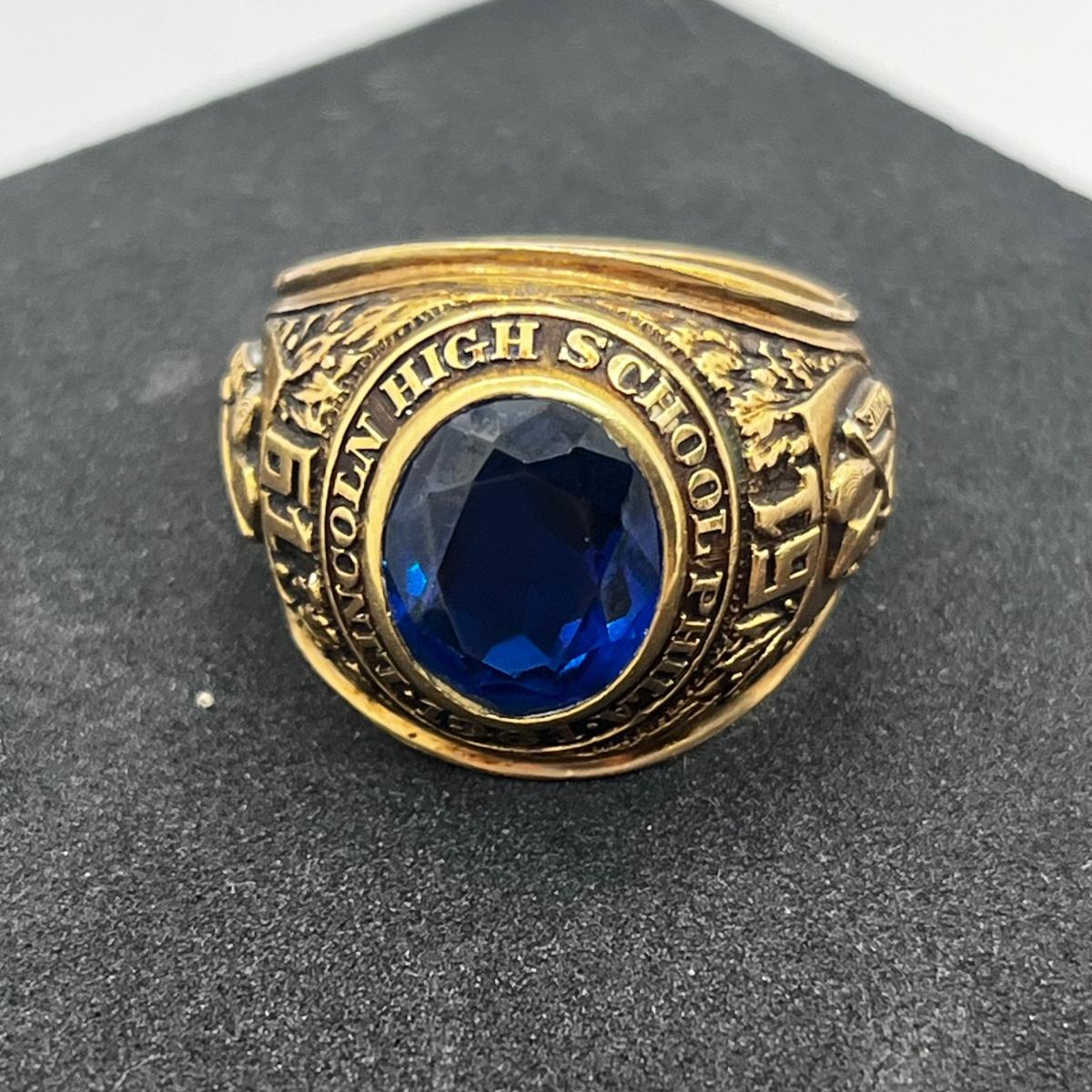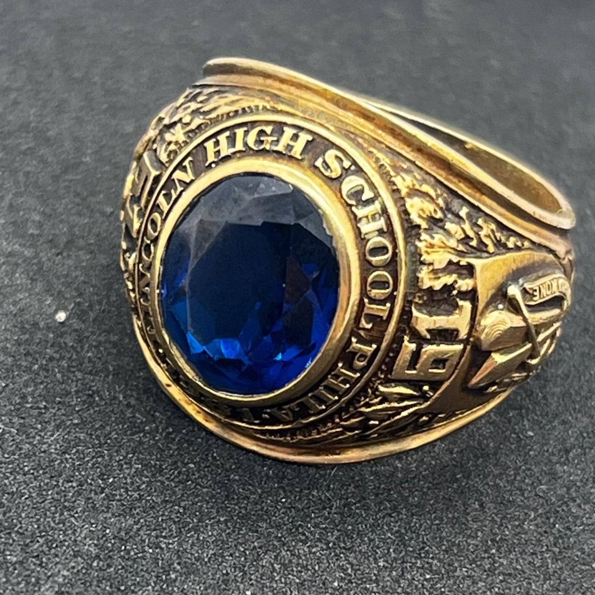 LOT 96J: 10K Gold 1961 Lincoln High School Philadelphia Class Ring - 17 GTW - Size 10