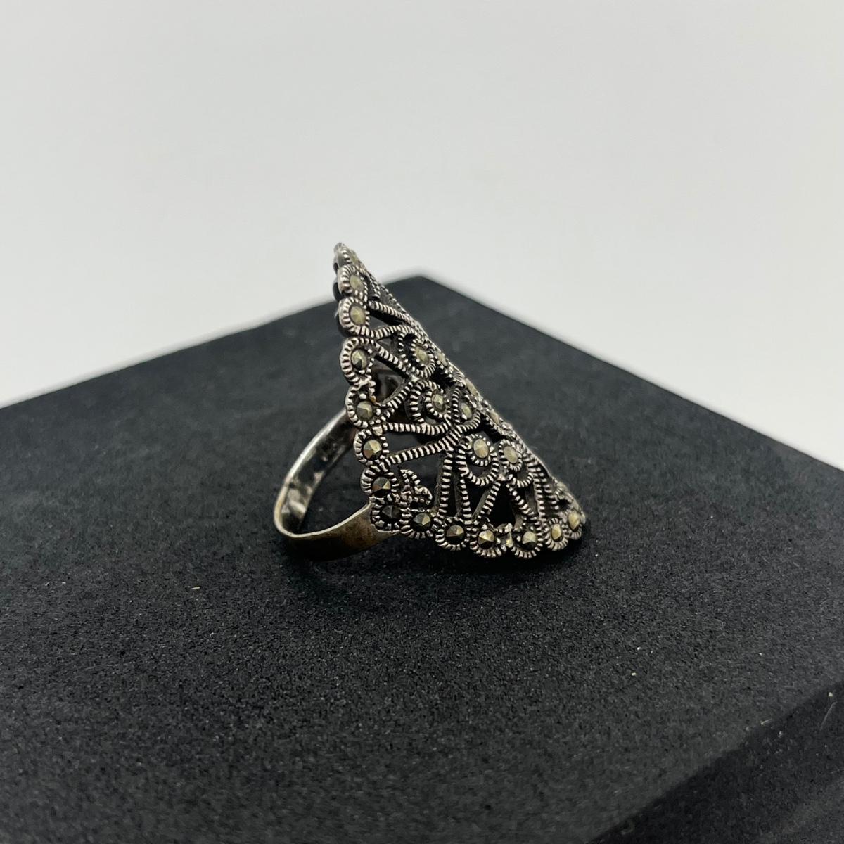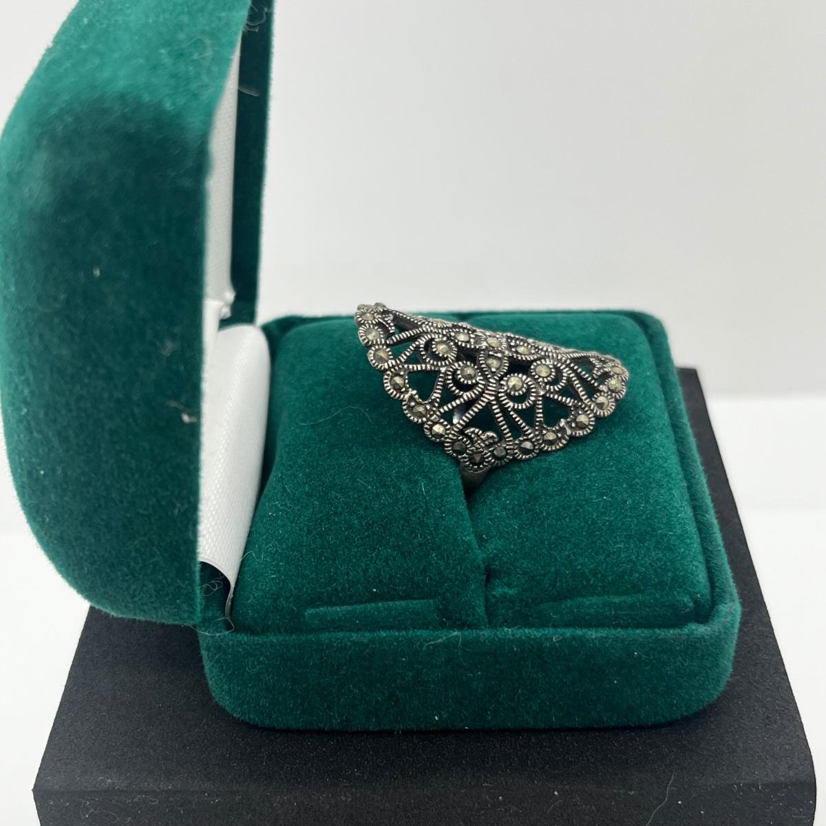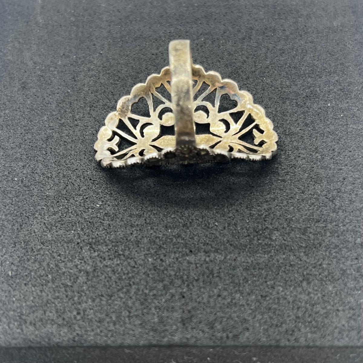 LOT 105J: NF 925 Vintage Sterling Silver Marcasite Filigree Ring - Size 8