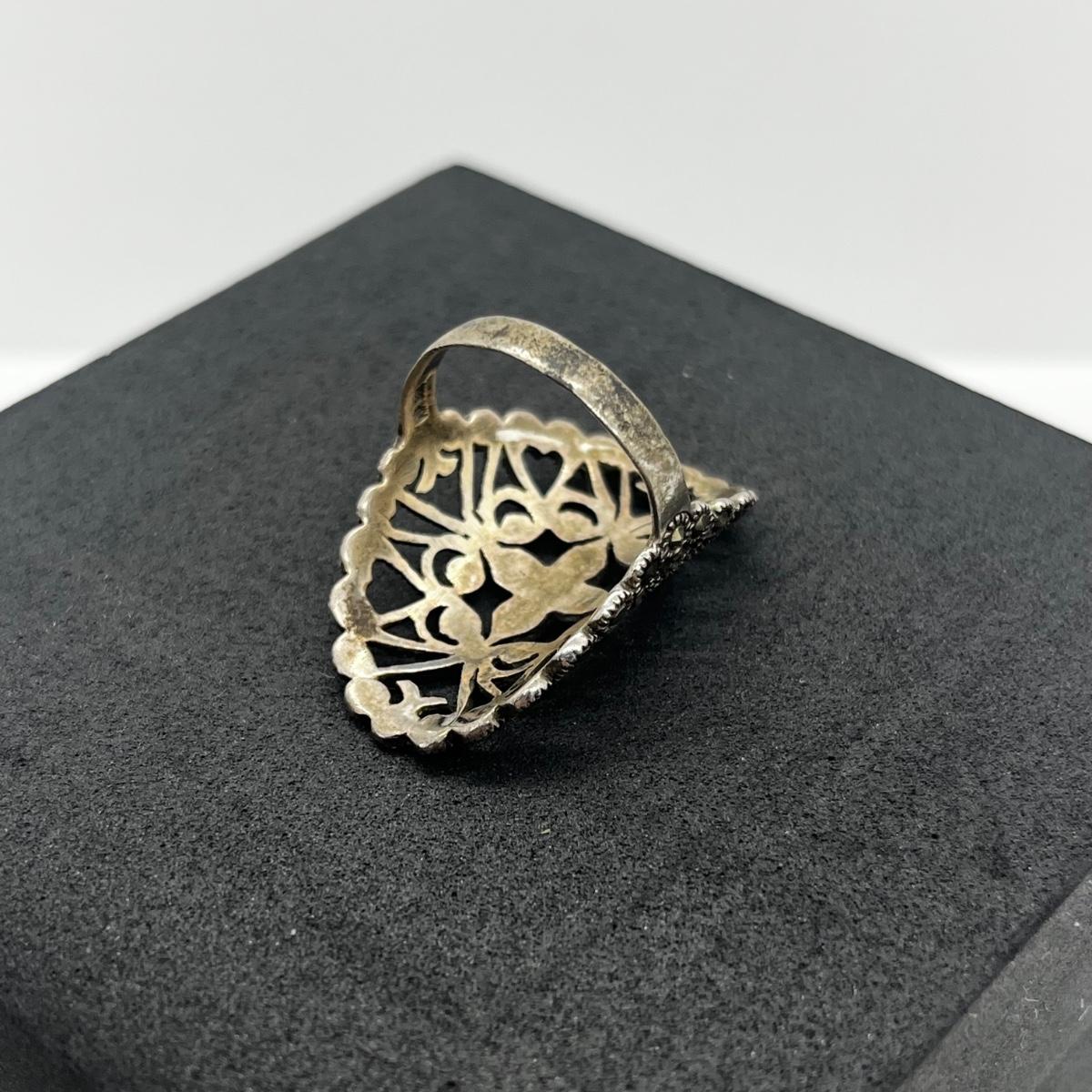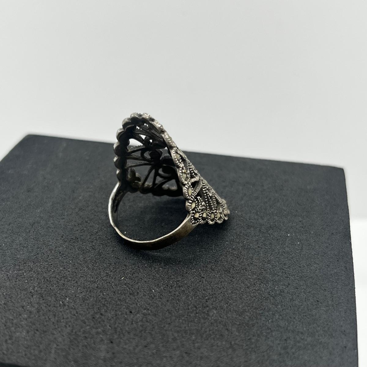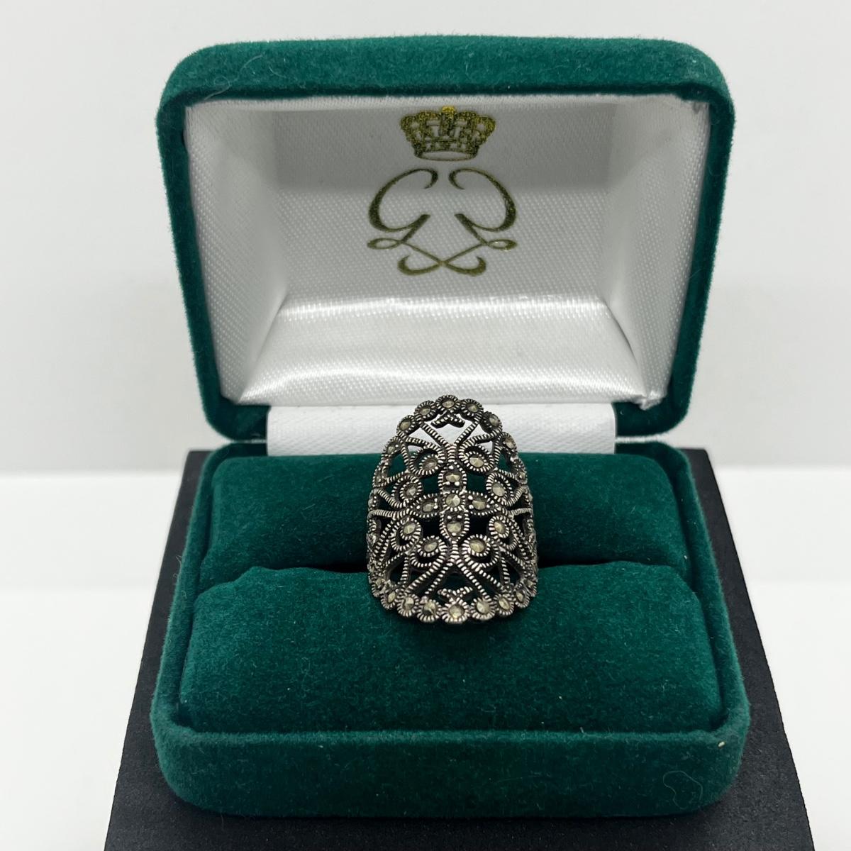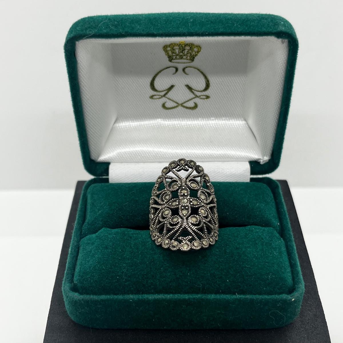 LOT 105J: NF 925 Vintage Sterling Silver Marcasite Filigree Ring - Size 8