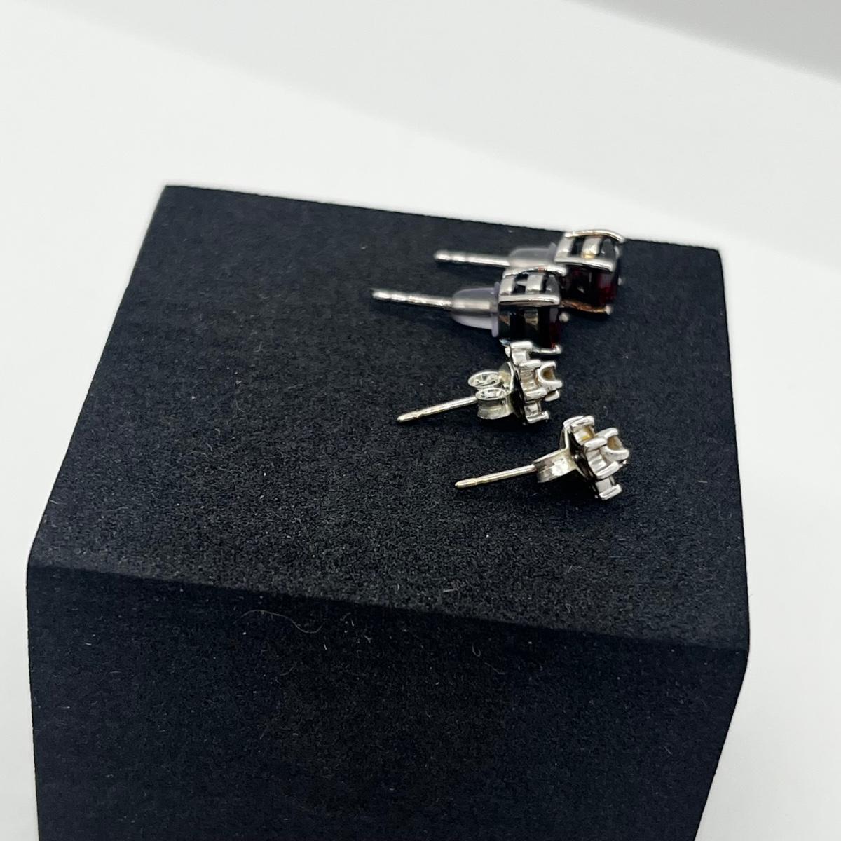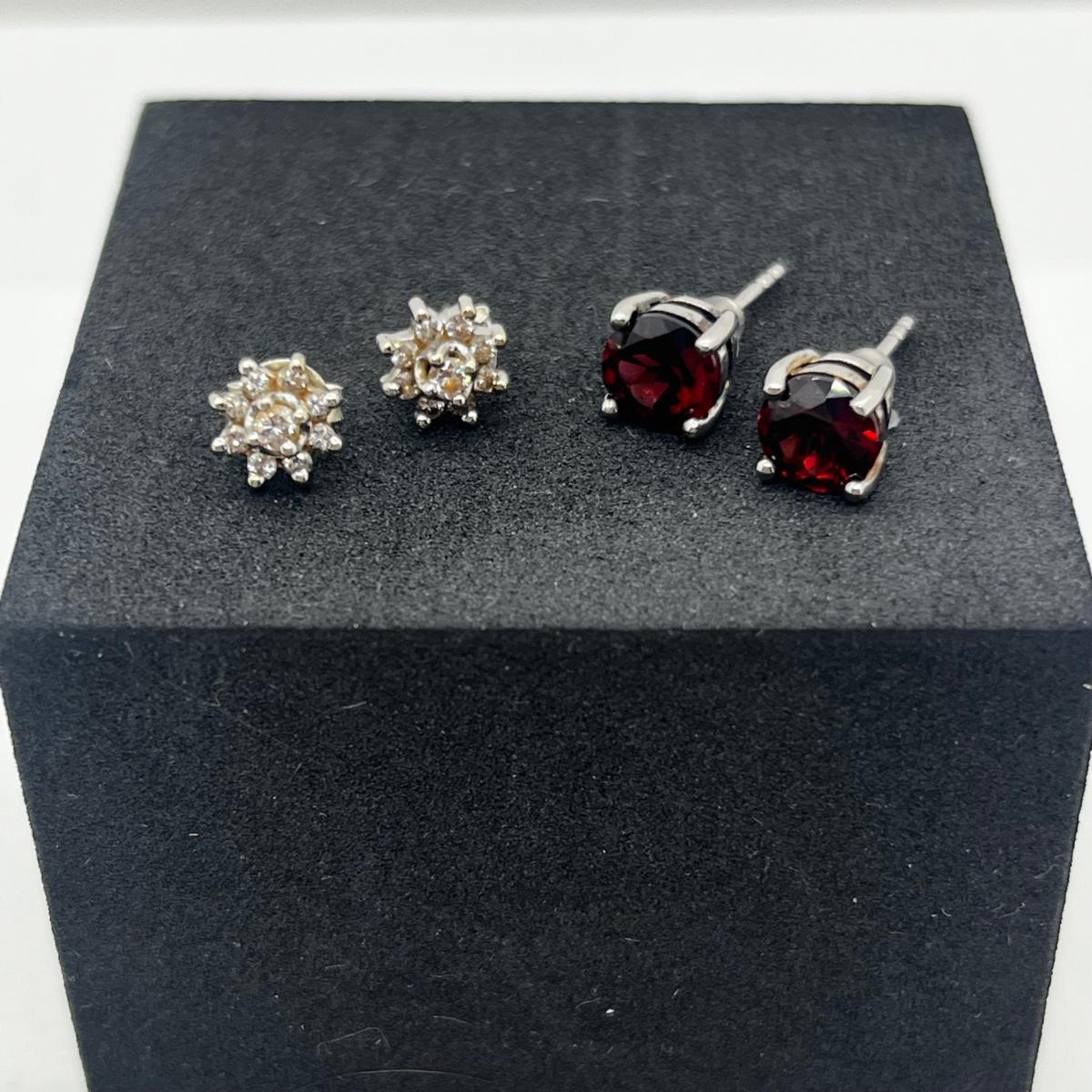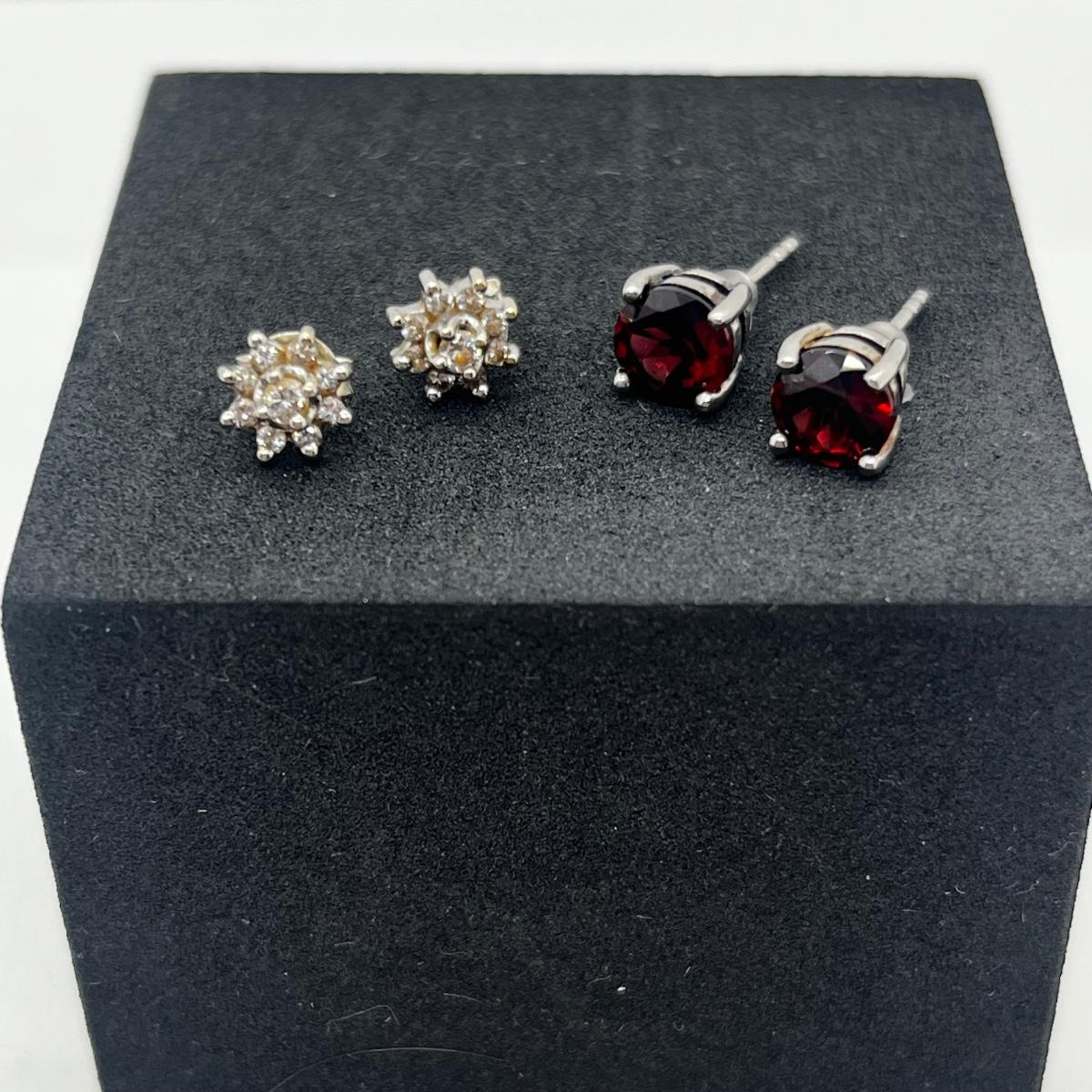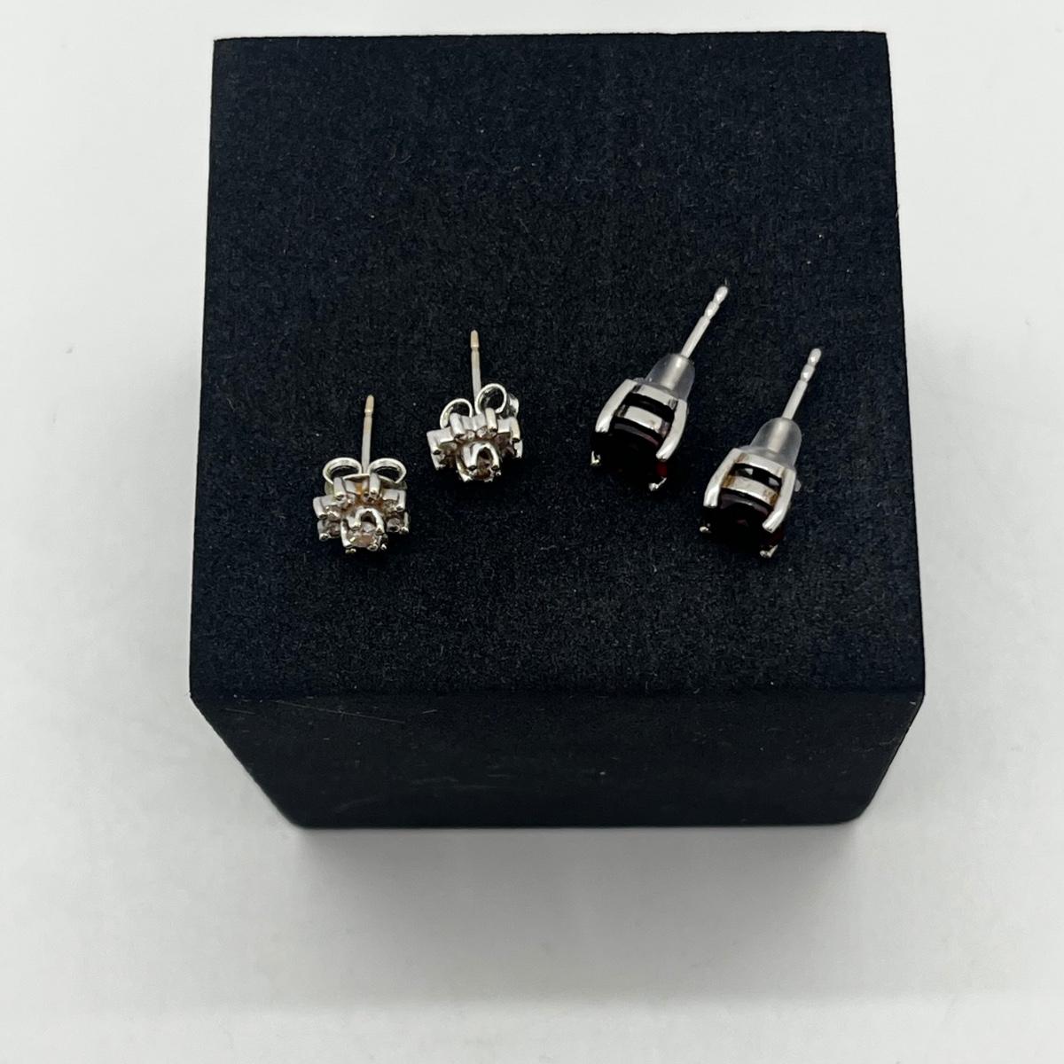 LOT 108J: 925 Round Garnet Post Earrings and 925 Diamond Post Earrings