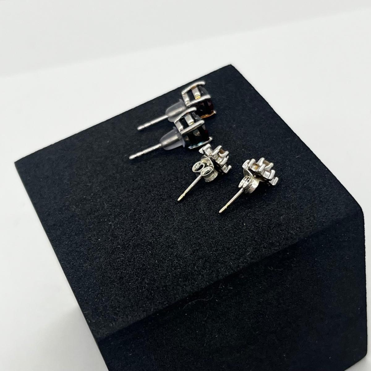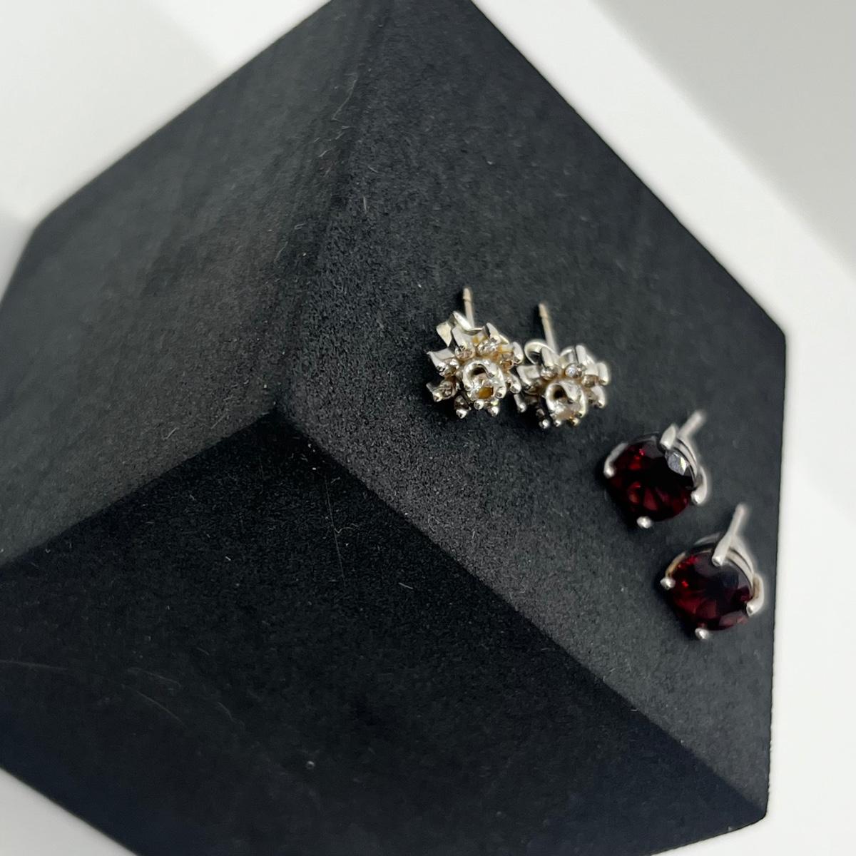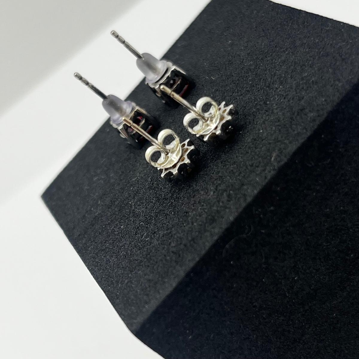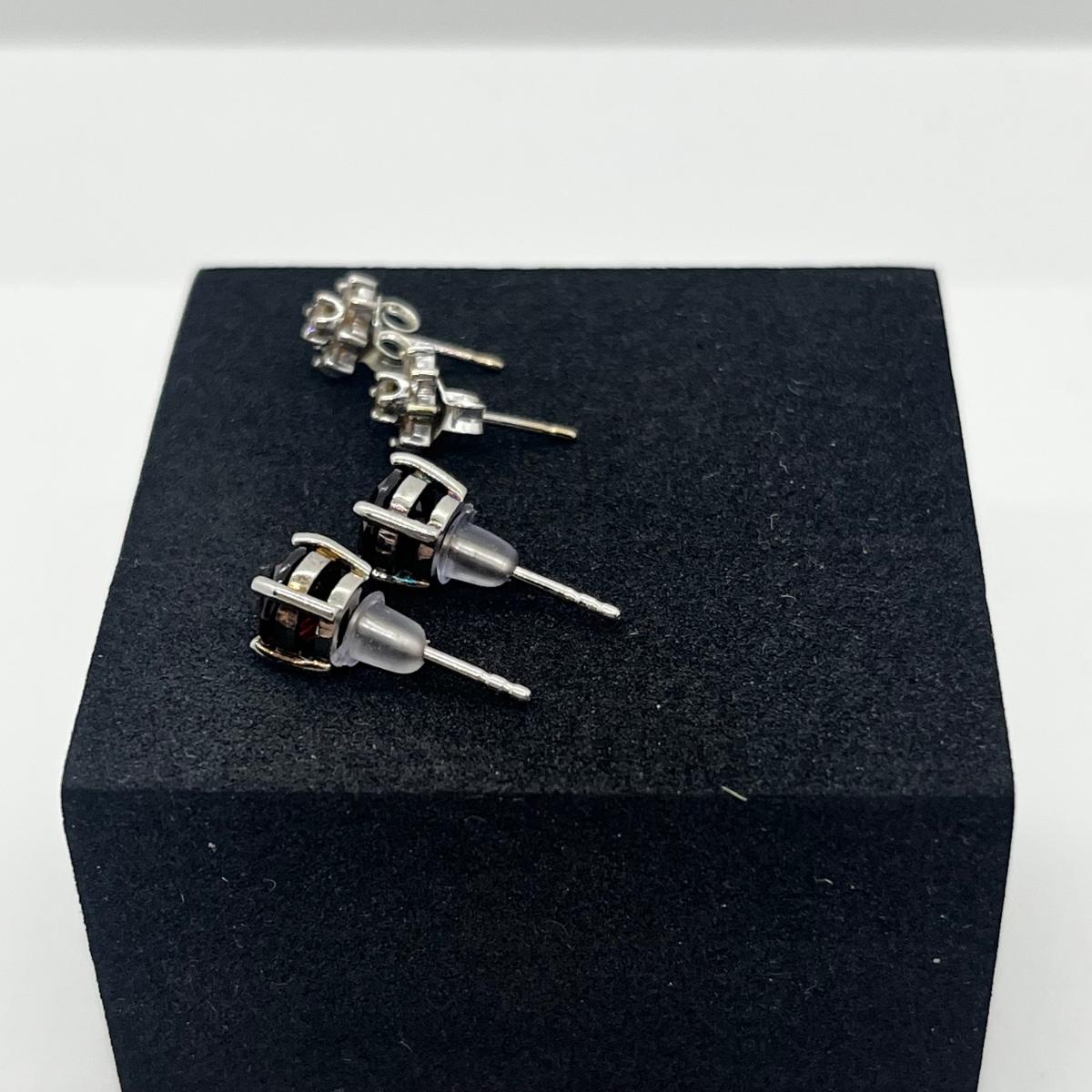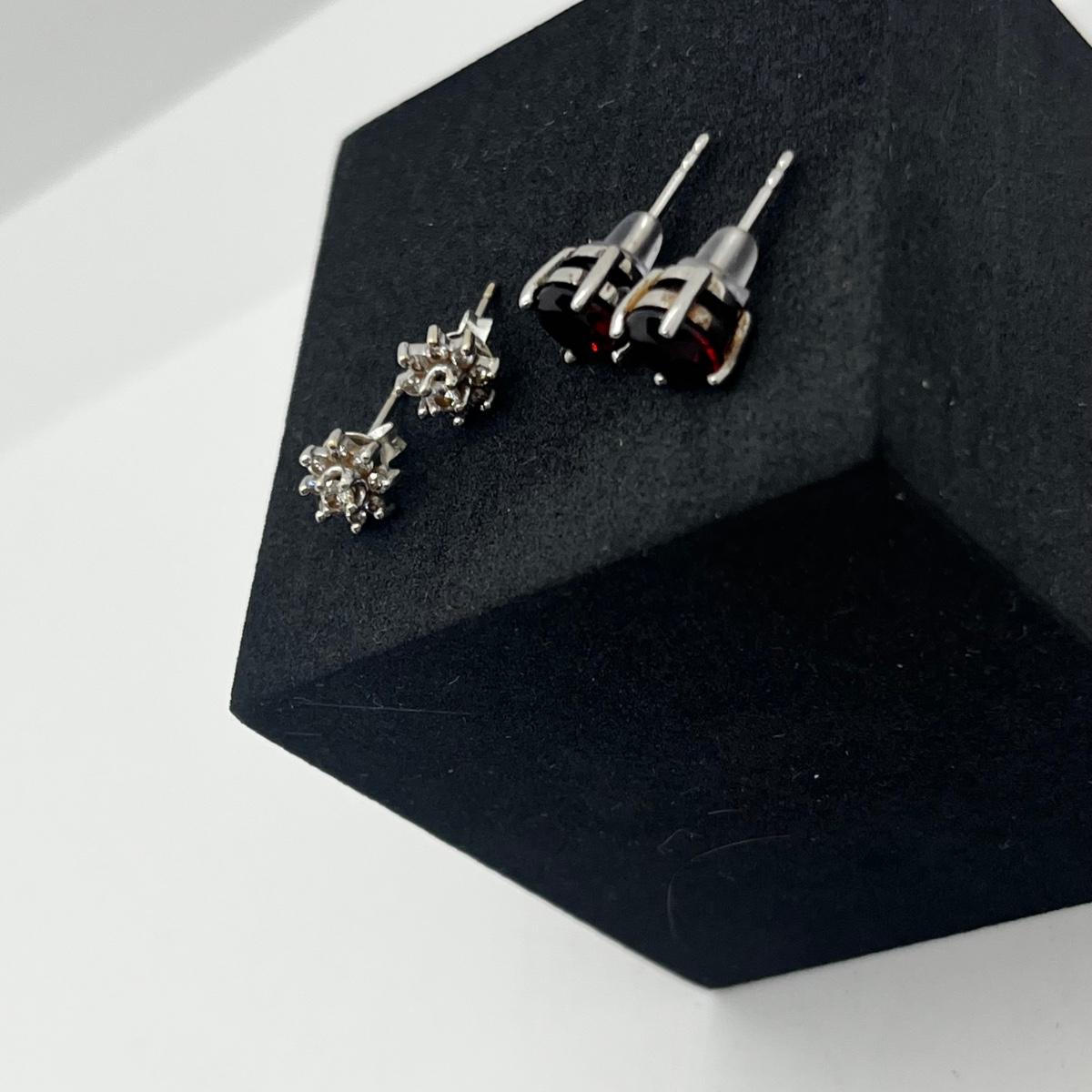 LOT 108J: 925 Round Garnet Post Earrings and 925 Diamond Post Earrings