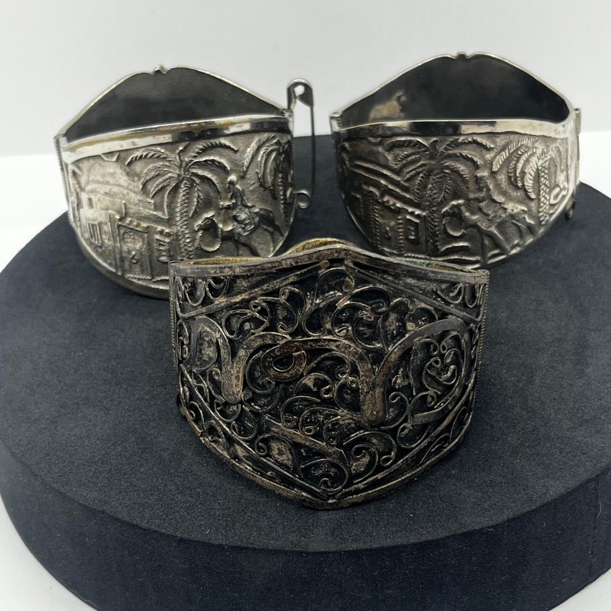 LOT 112J: Vintage Hinged Bangle Bracelets with Asian and Middle Eastern Designs
