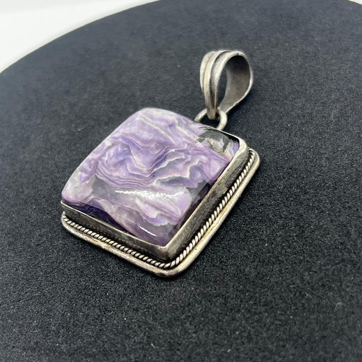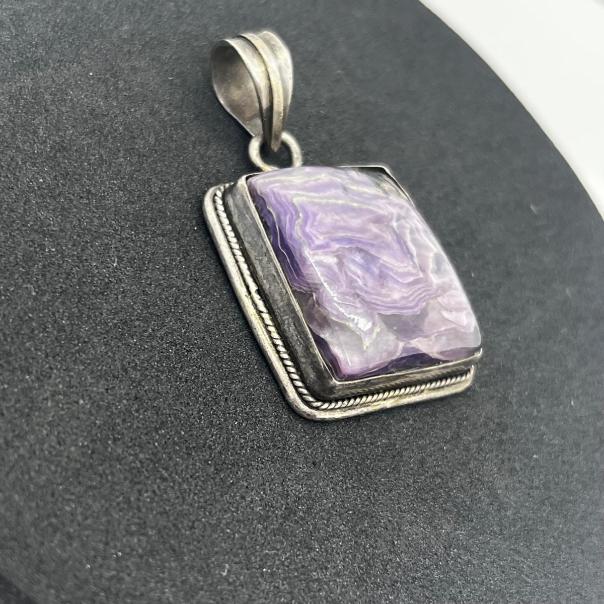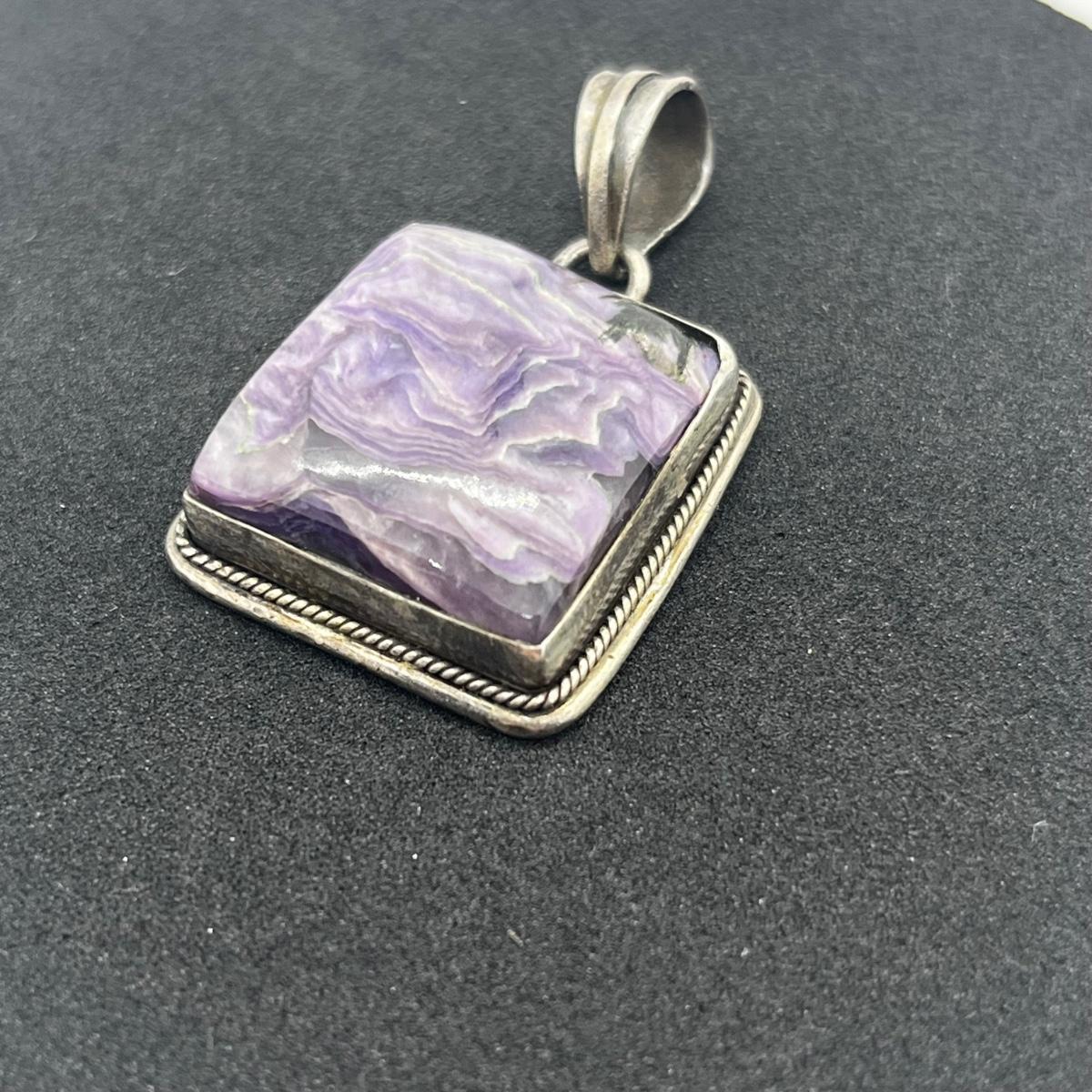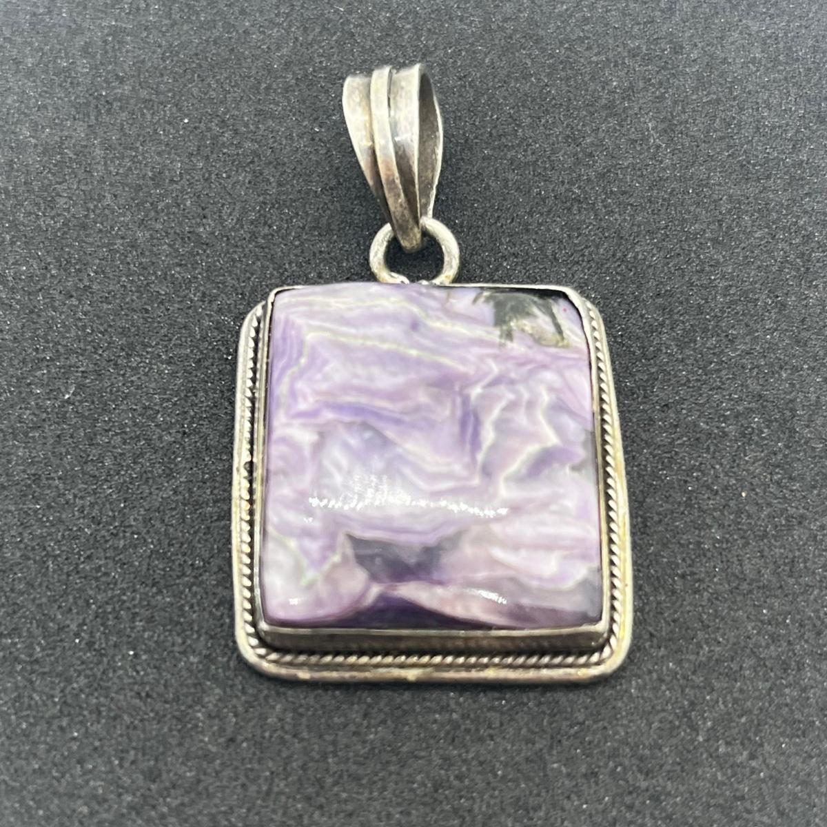 LOT 113J: Beautiful 925 Vintage Raw Purple Gemstone Pendant 15.2 GTW