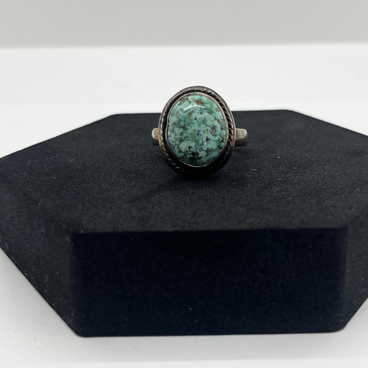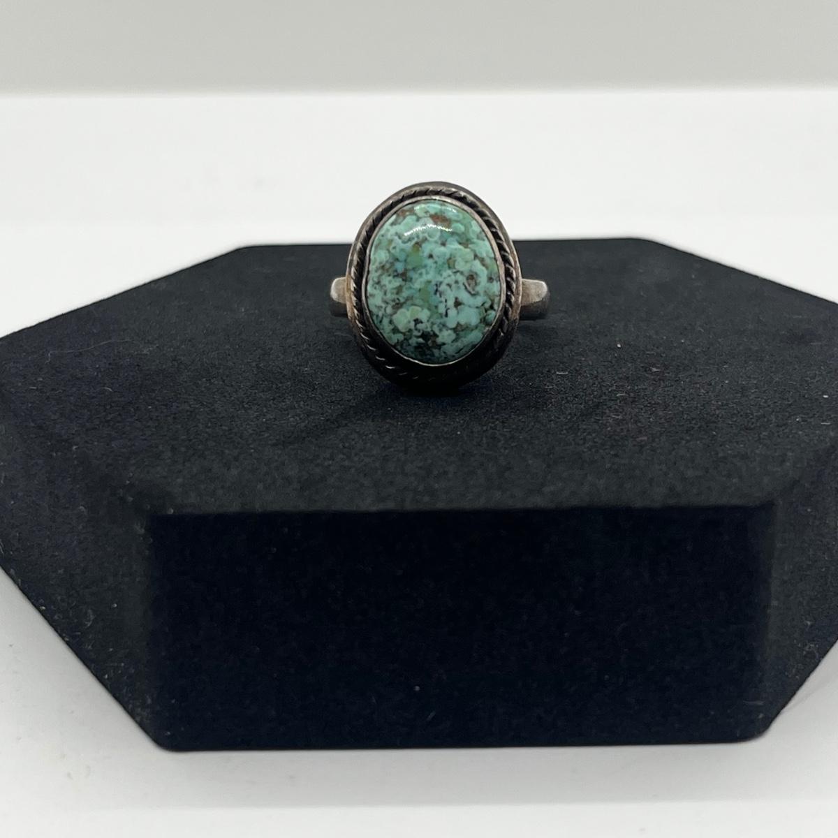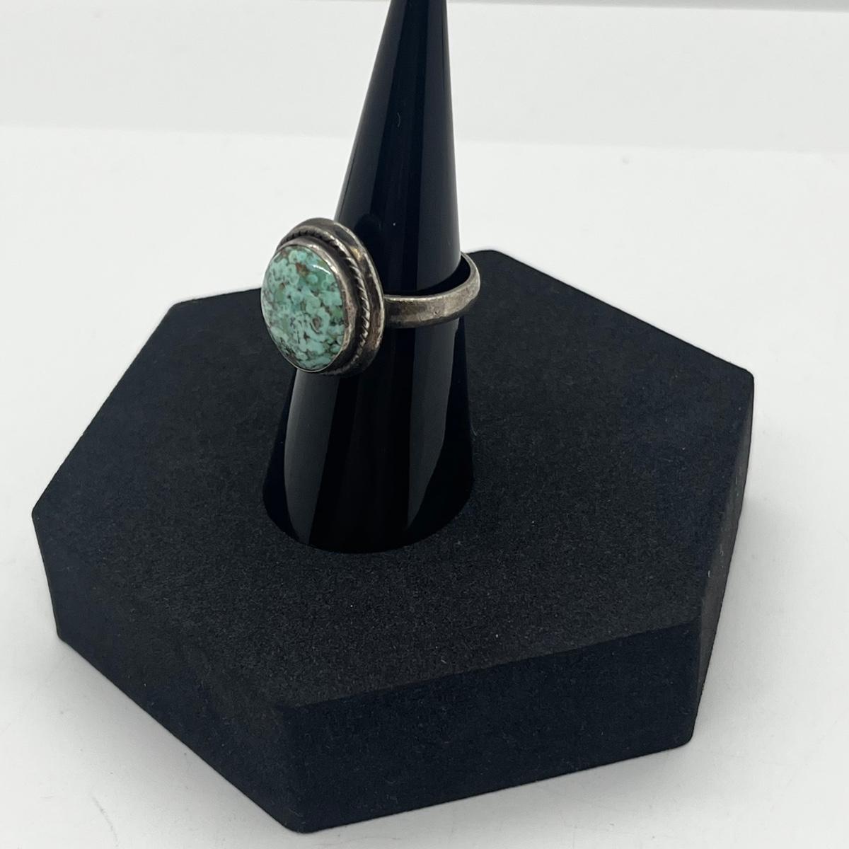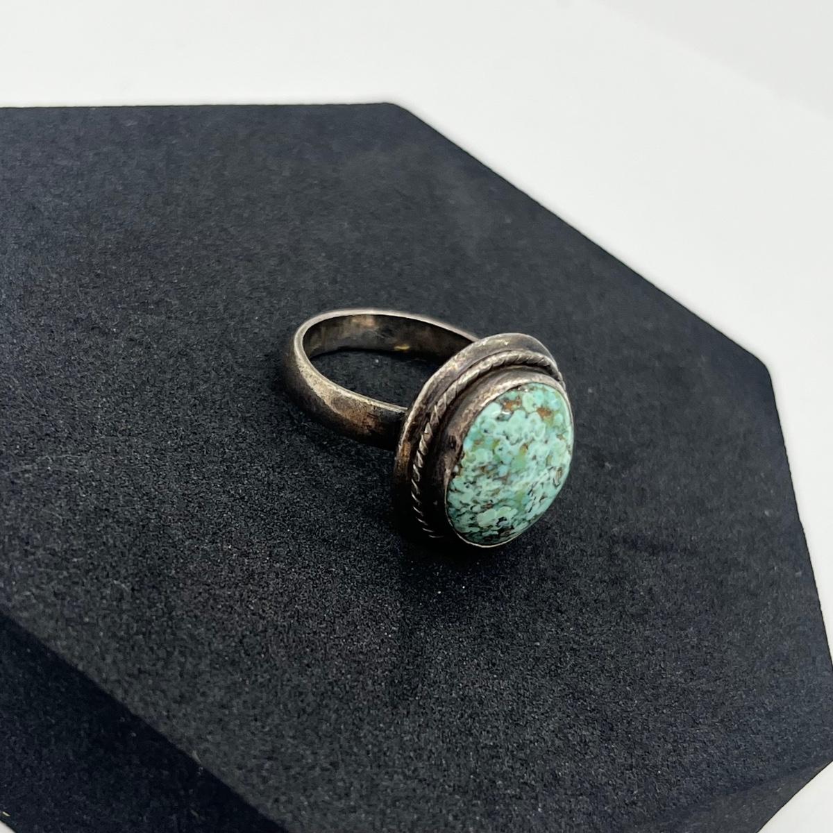 LOT 118J: Sterling Silver and Turquoise Vintage Ring - Size 6.5 - 7.2 GTW