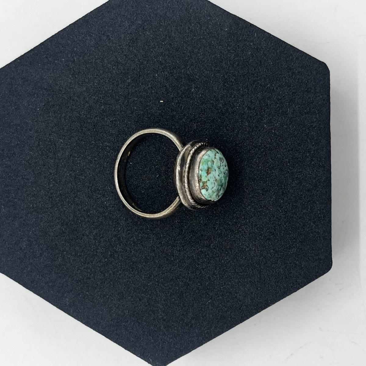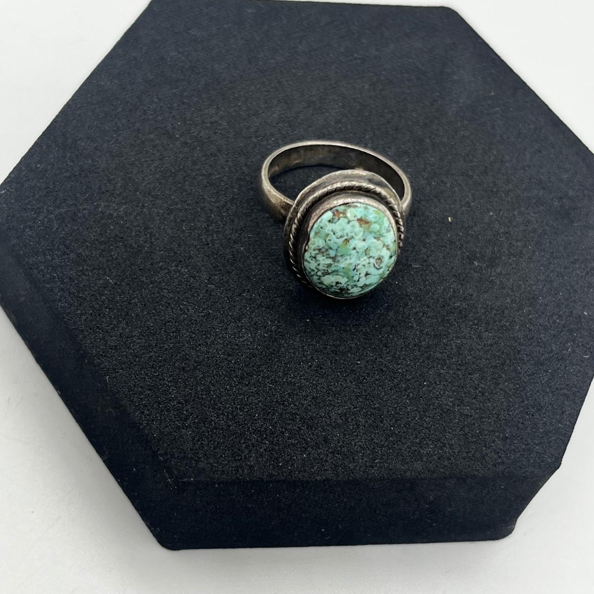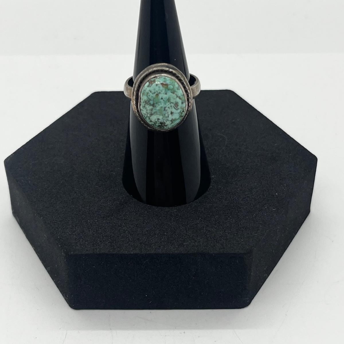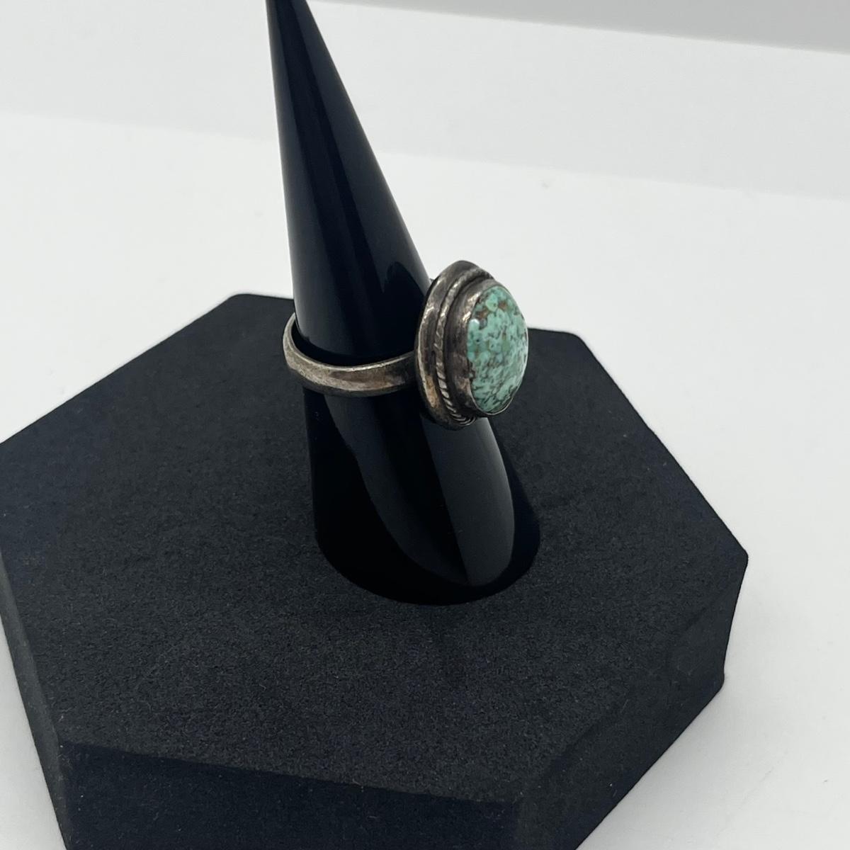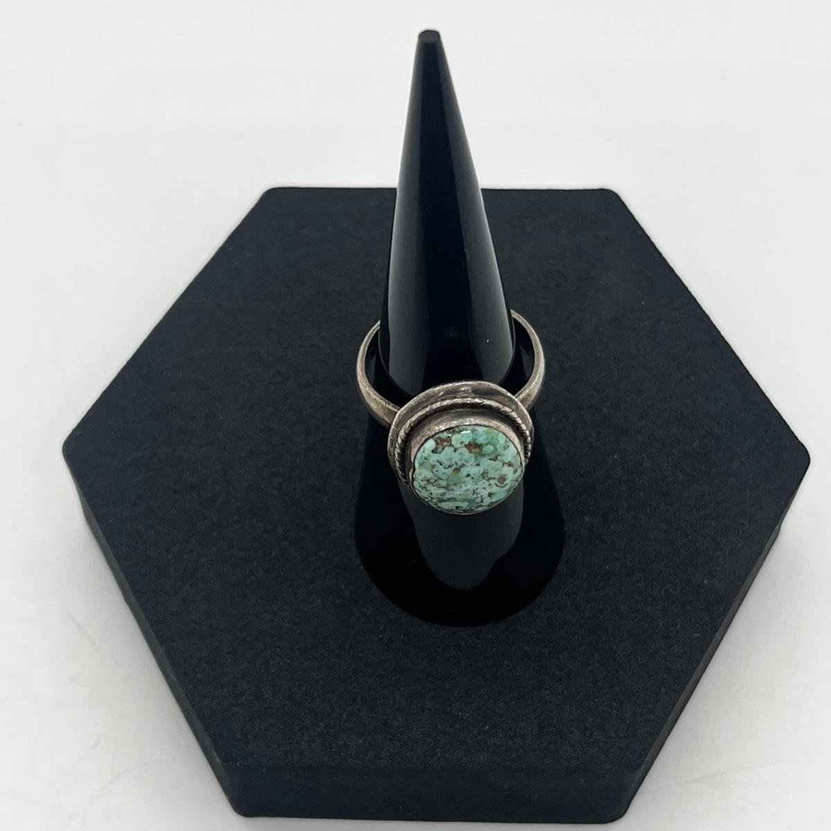 LOT 118J: Sterling Silver and Turquoise Vintage Ring - Size 6.5 - 7.2 GTW