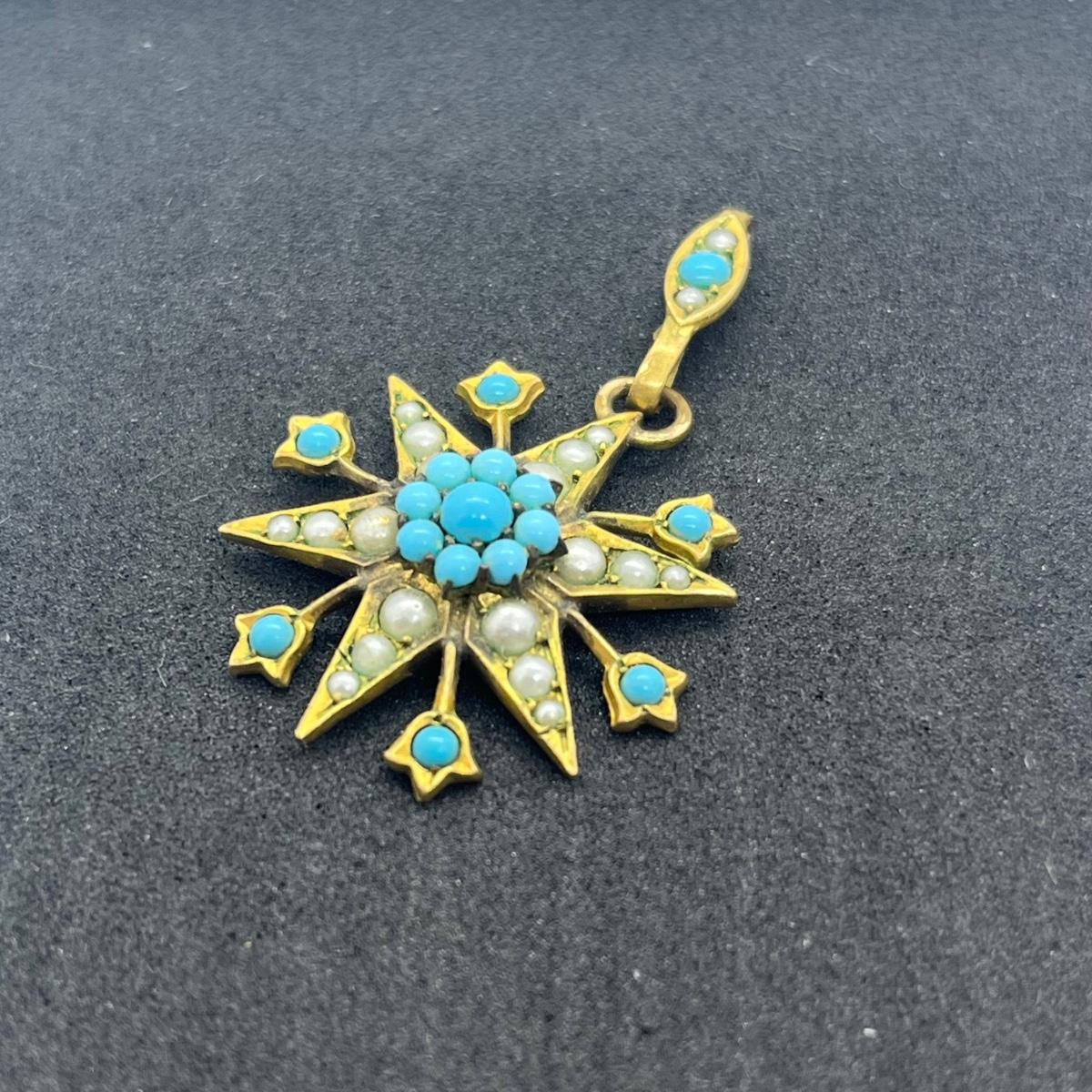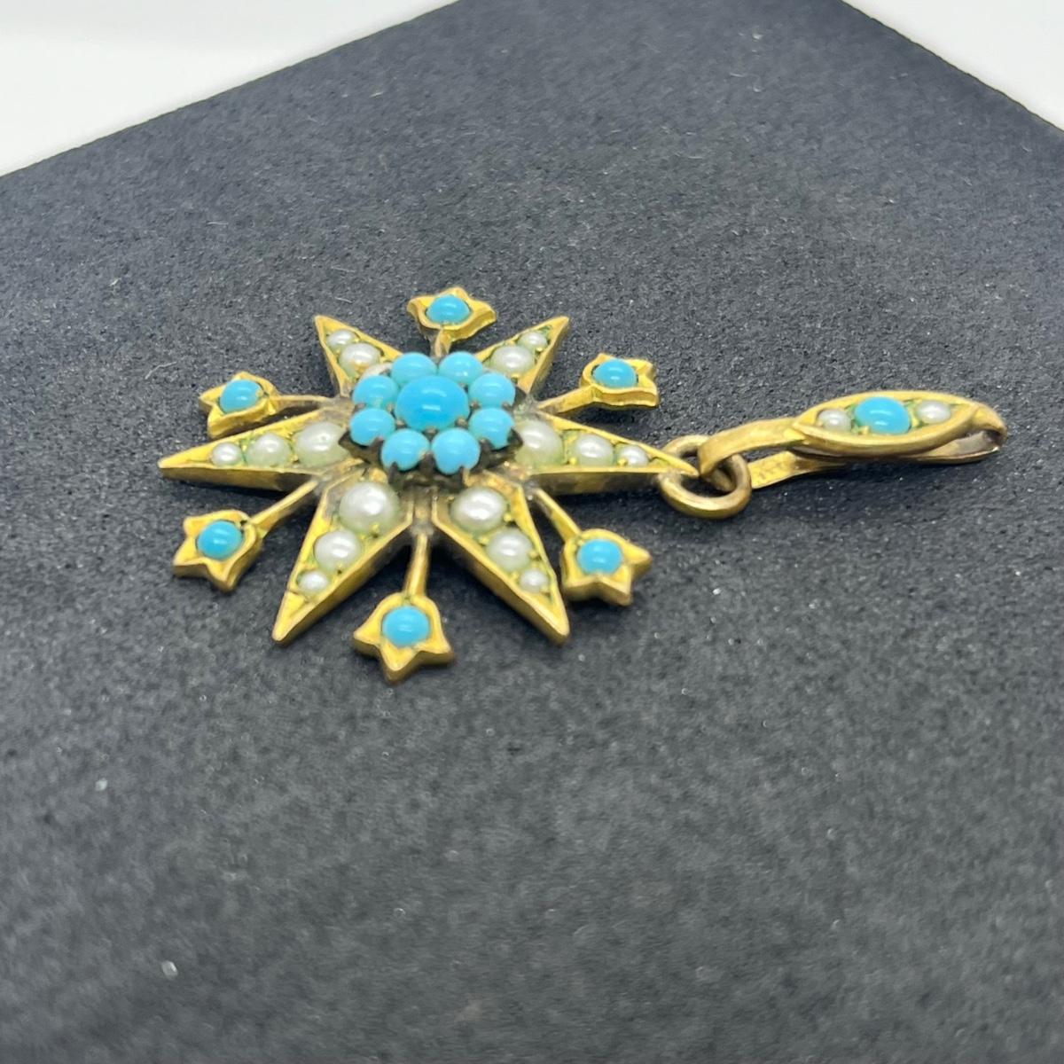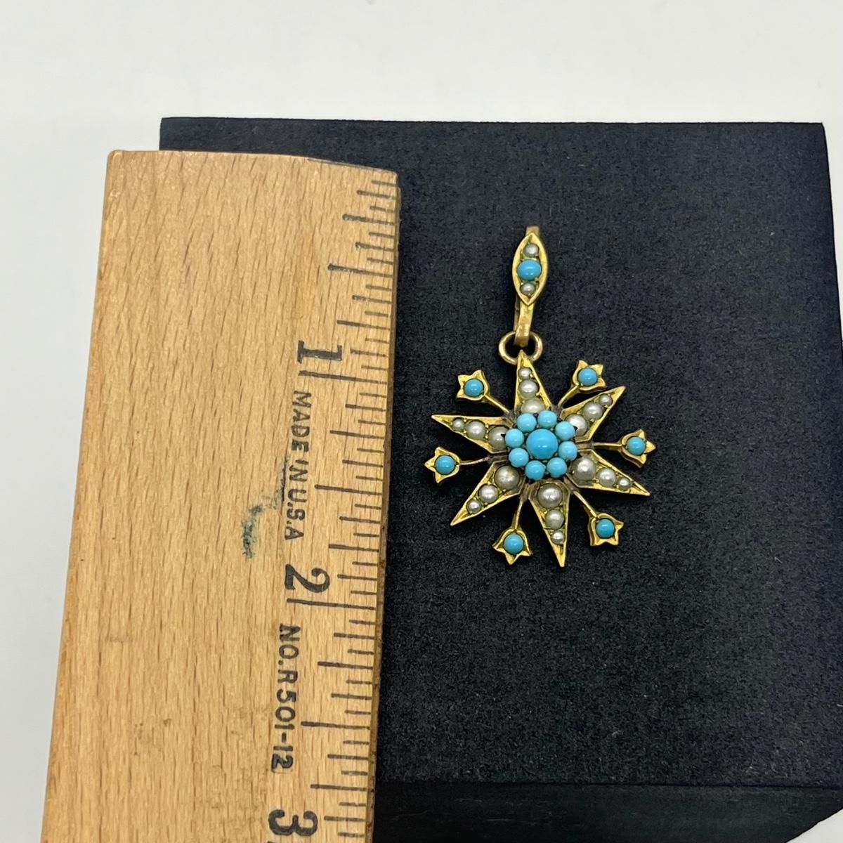 LOT 130J: Antique Turquoise and Seed Pearl Star Pendant