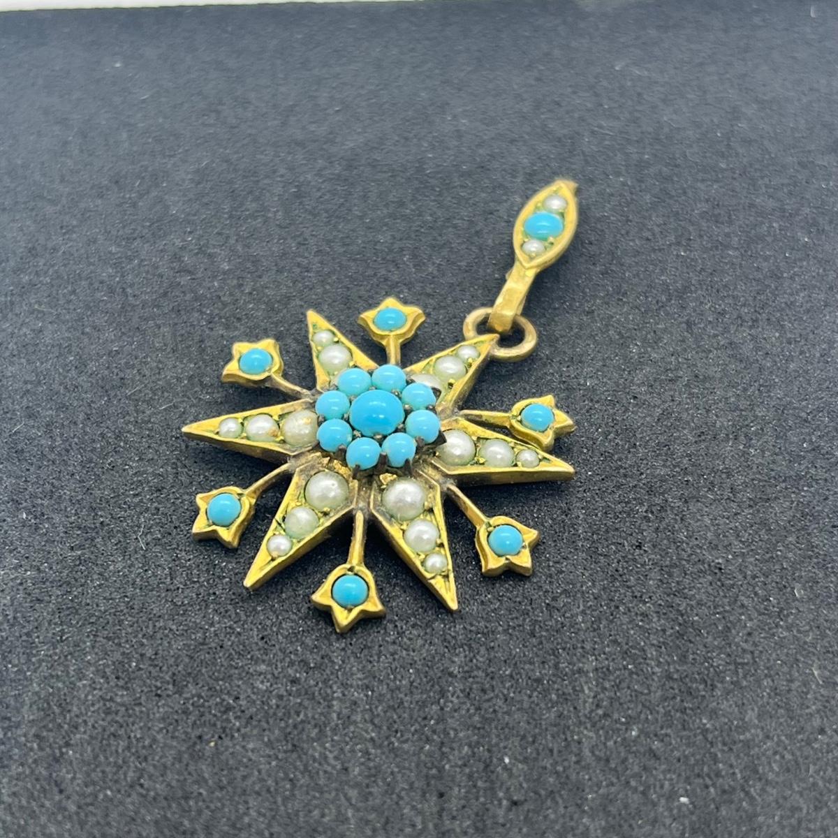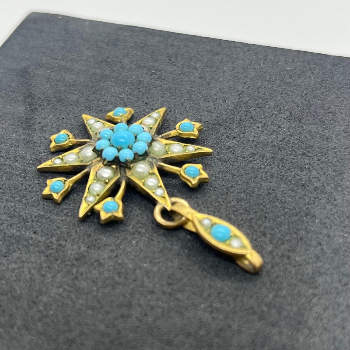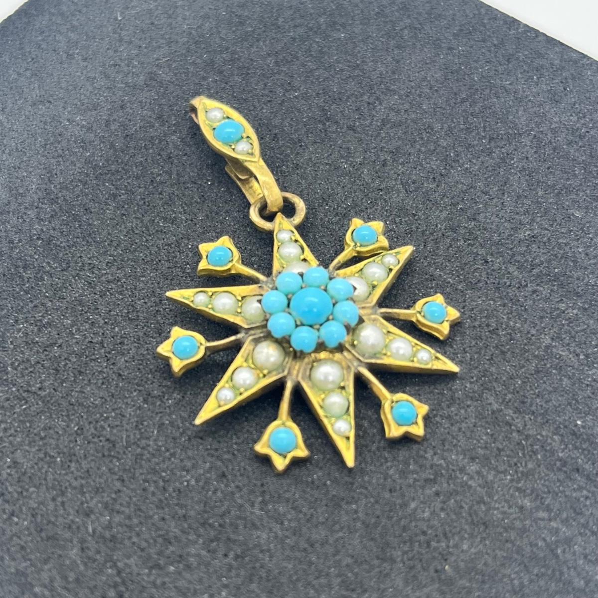 LOT 130J: Antique Turquoise and Seed Pearl Star Pendant