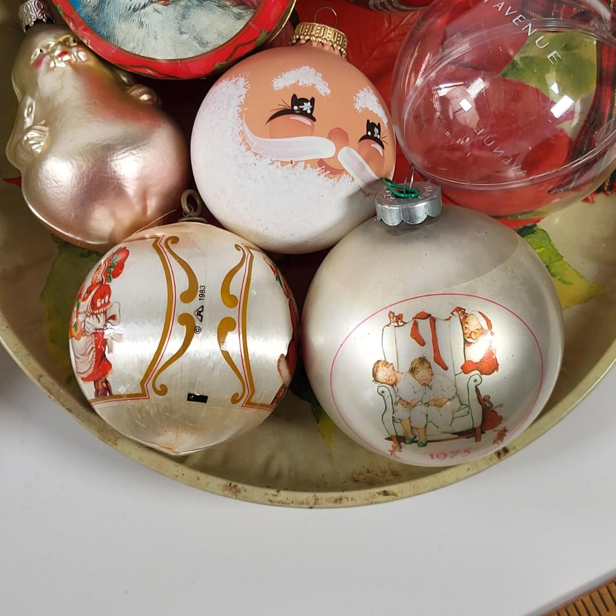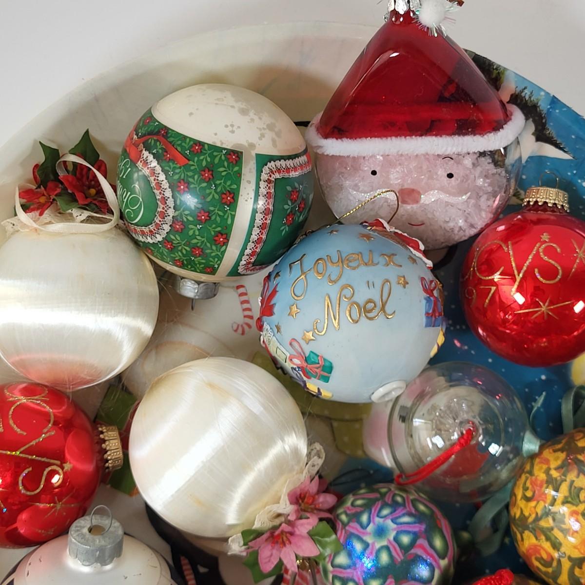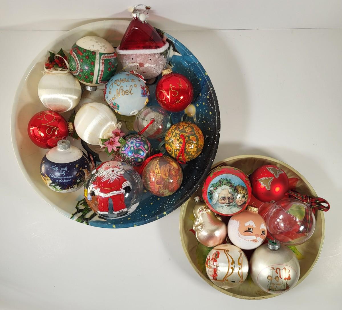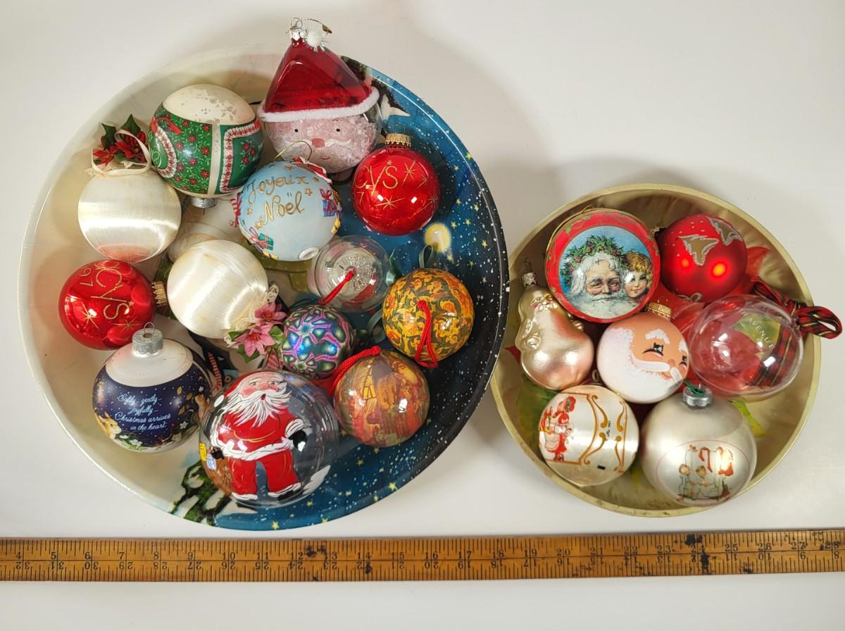 LOT 7G: Pair of Holiday Plates Full of Vintage Christmas Ball Ornaments