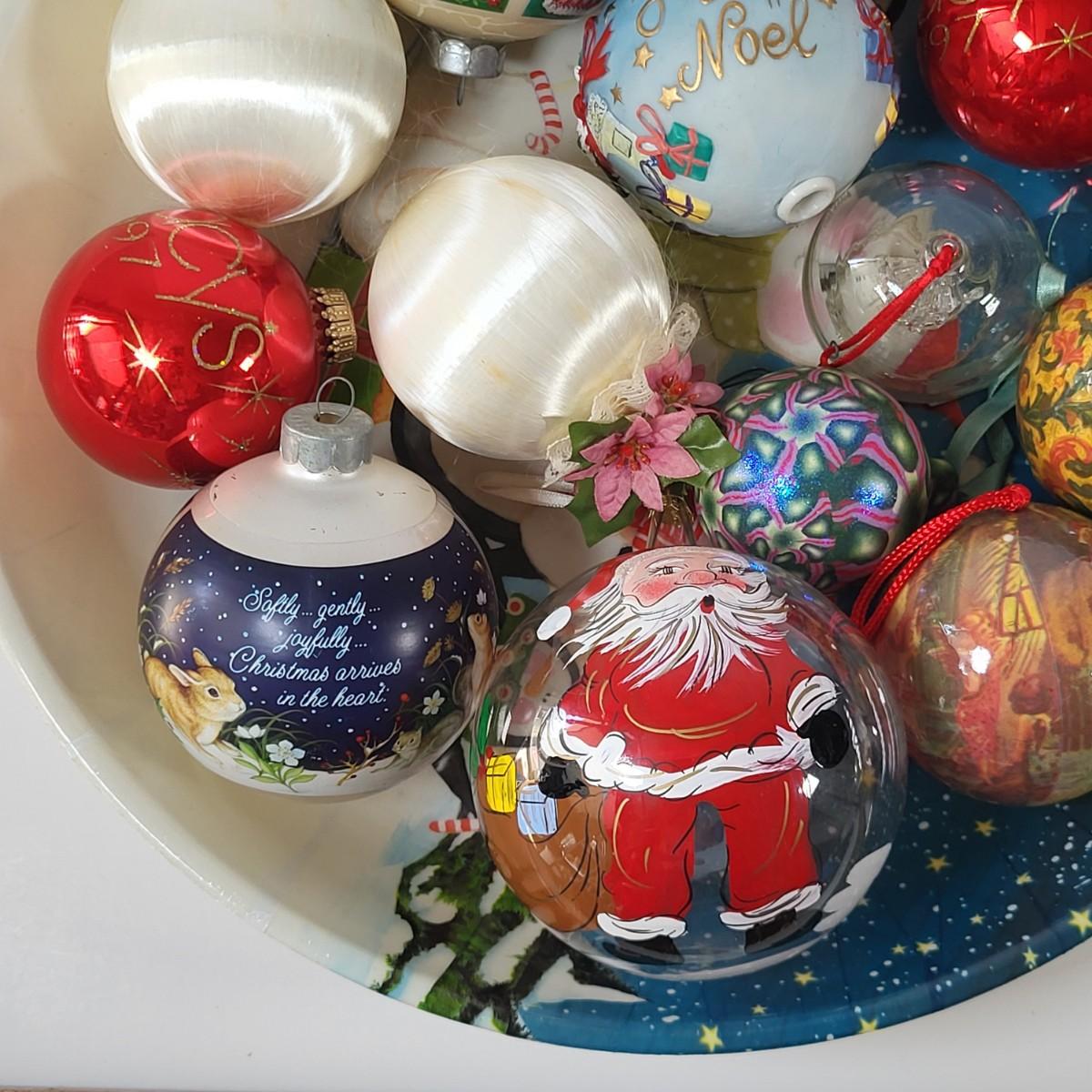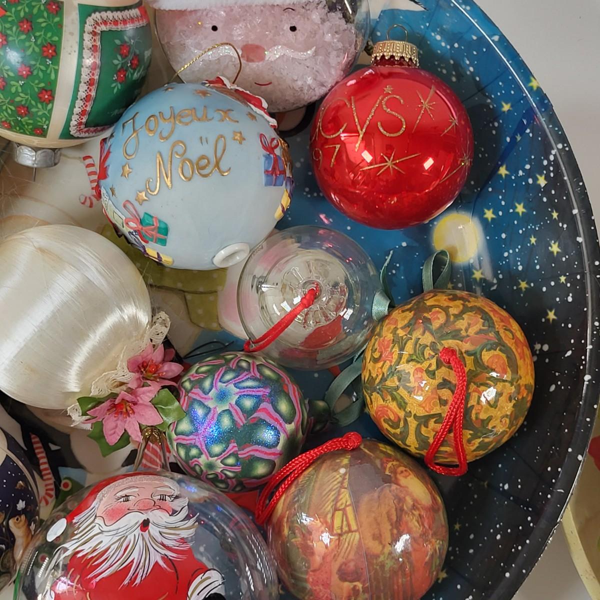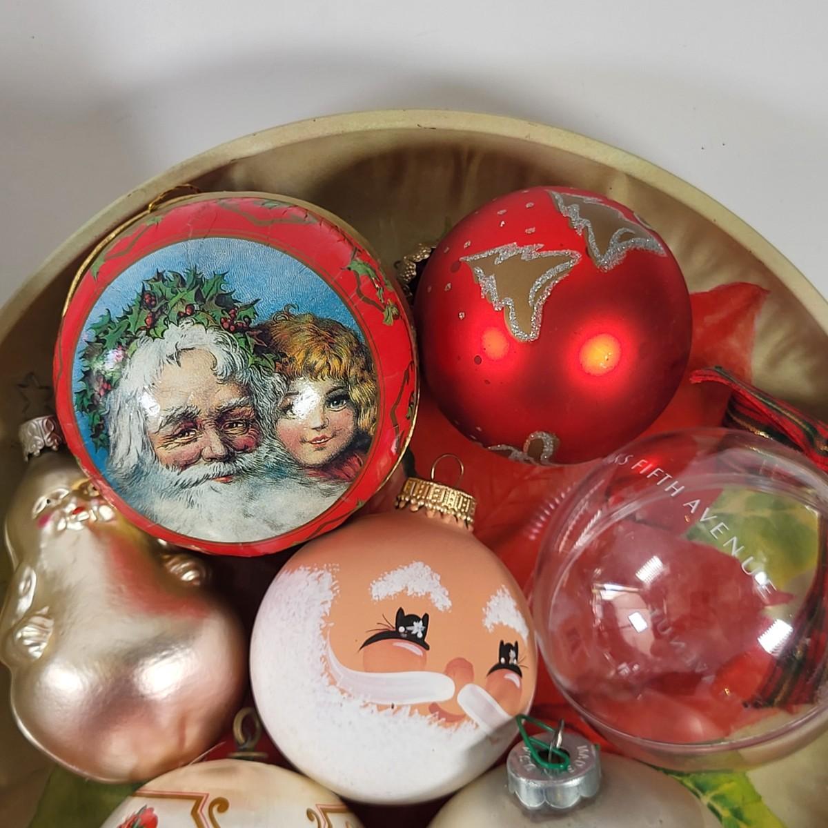 LOT 7G: Pair of Holiday Plates Full of Vintage Christmas Ball Ornaments