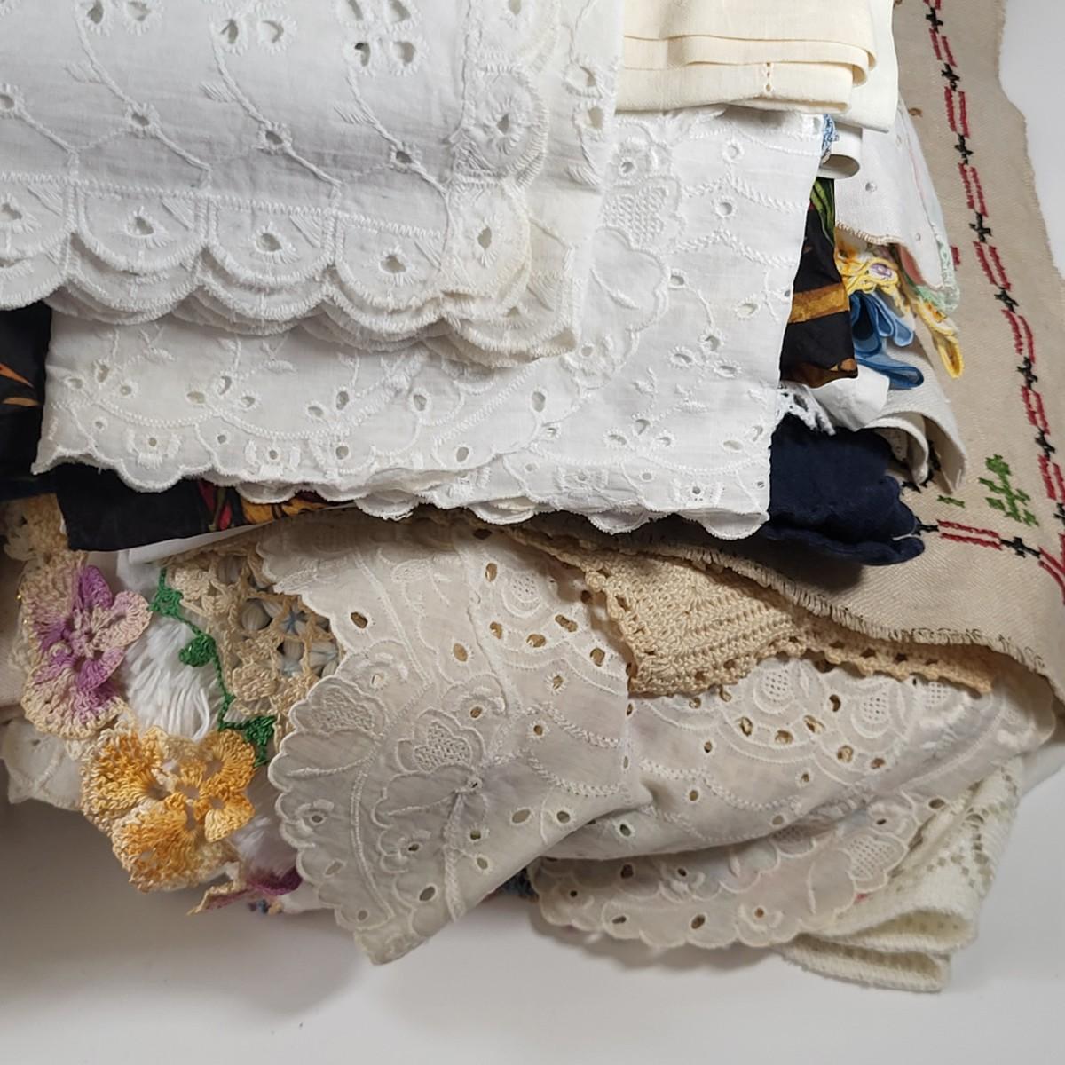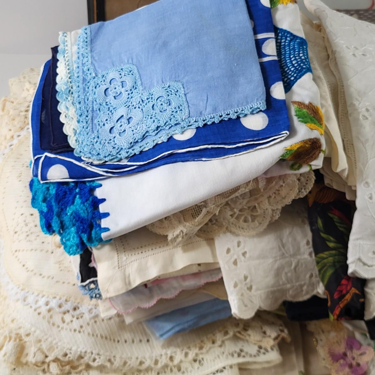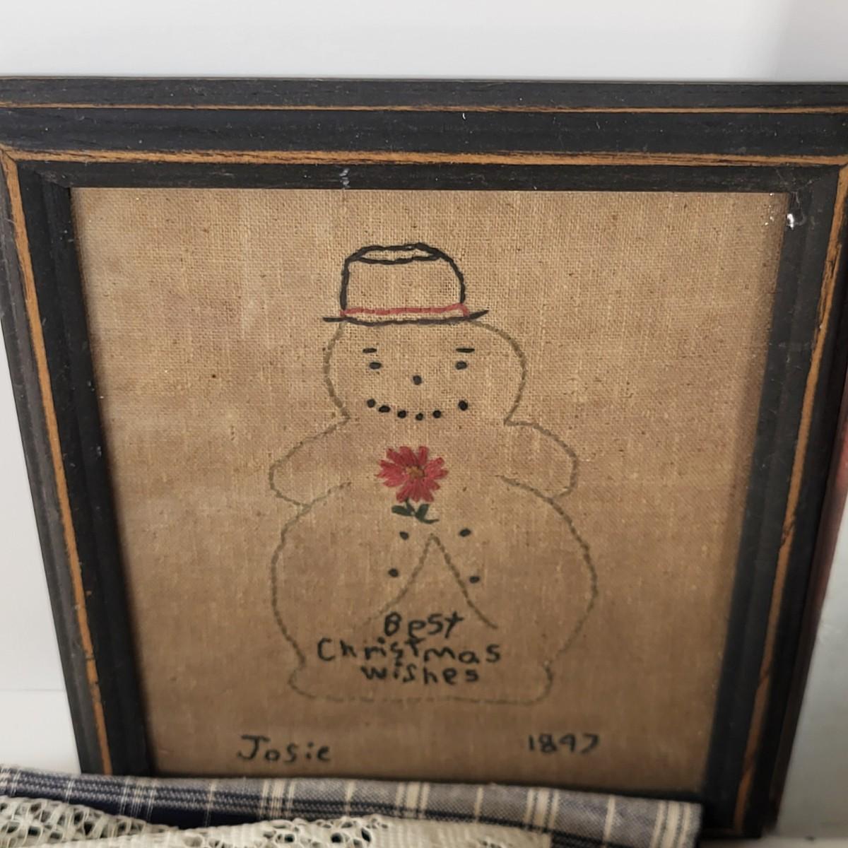 LOT 10G: Large Collection of Decorative Linen's with Art Kit and Vintage Snowman Framed Artwork