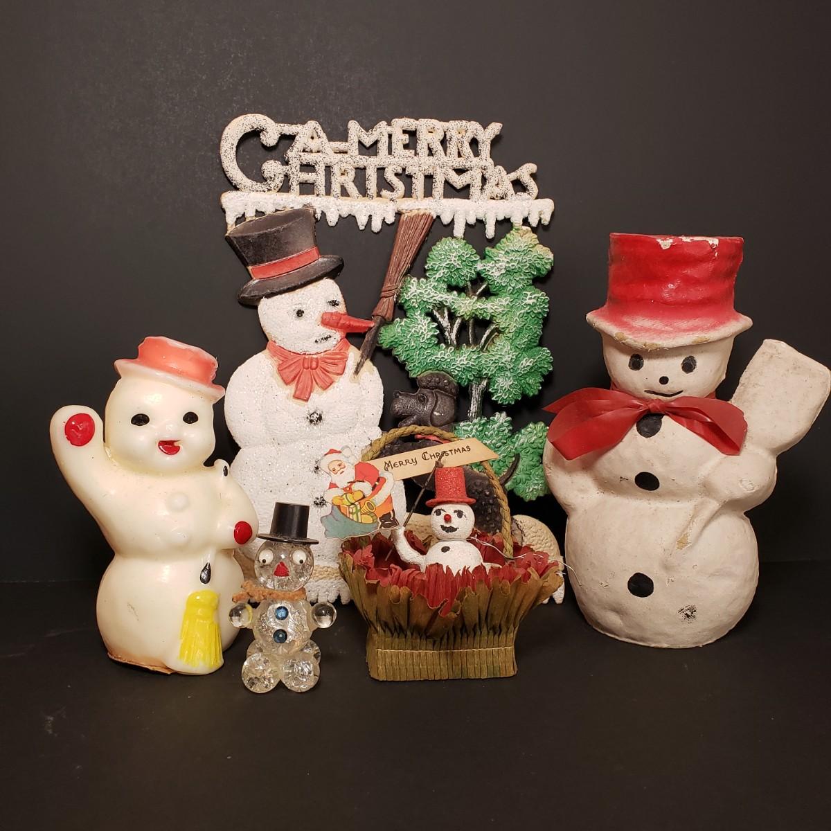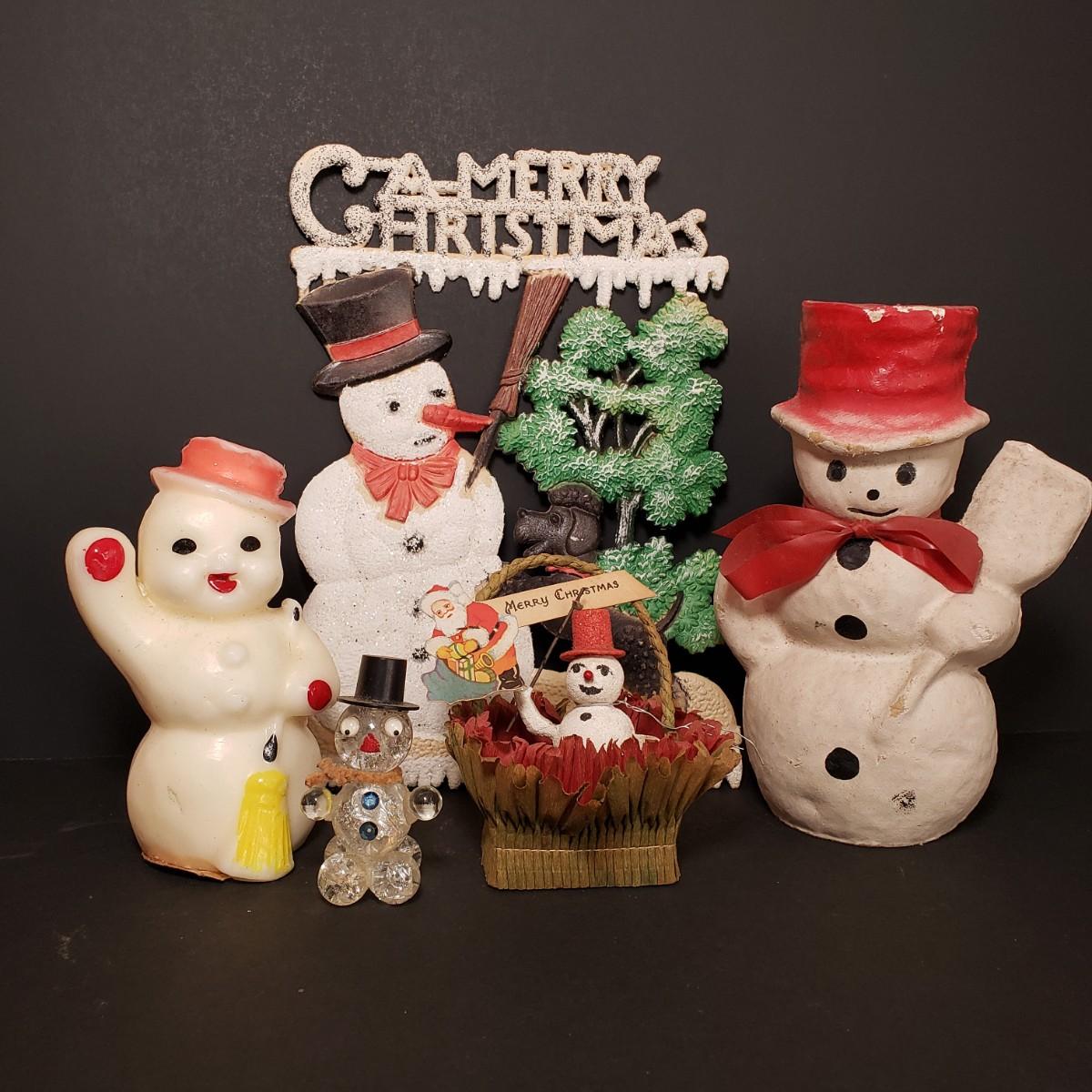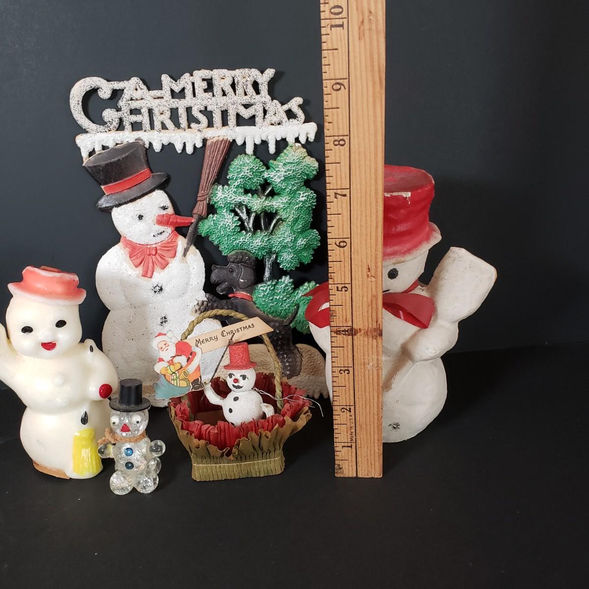 LOT 29L: Vintage Frosty/Christmas Collection; Paper Mache, Die Cut Paper Cut Out, Gurley Candle & More