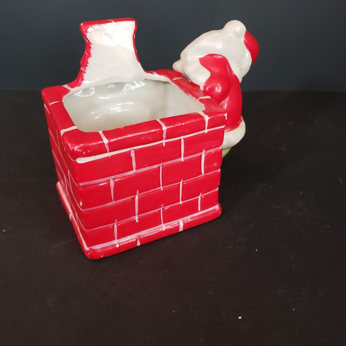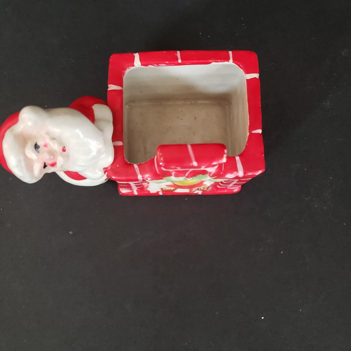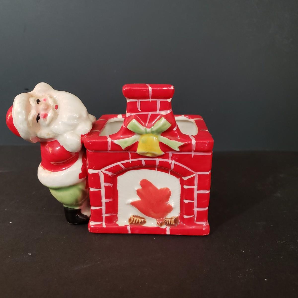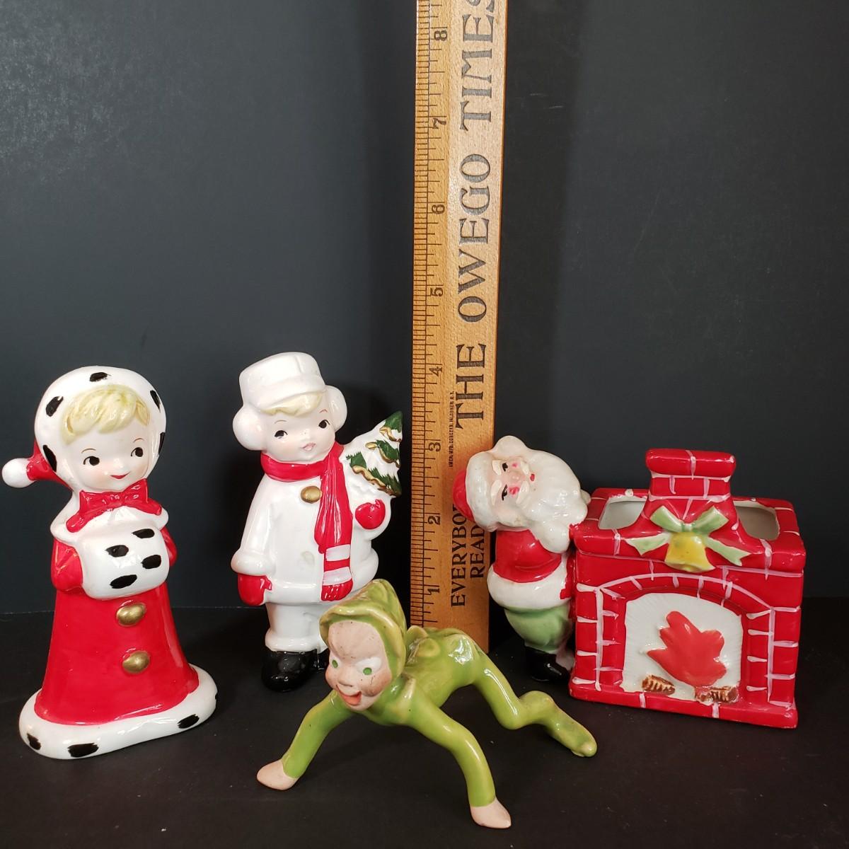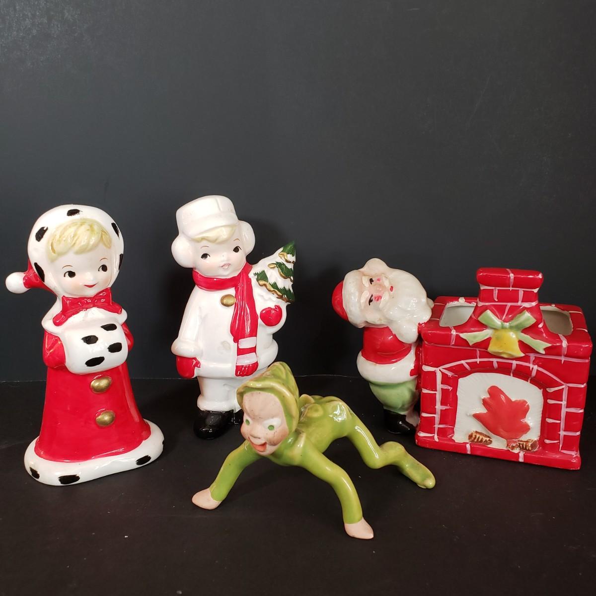 LOT 30L: Vintage Ceramic Carolers, Santa in Chimney Planter & Elf/Pixie Figurine Signed