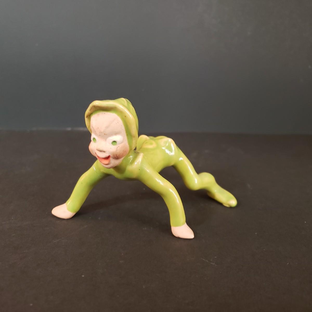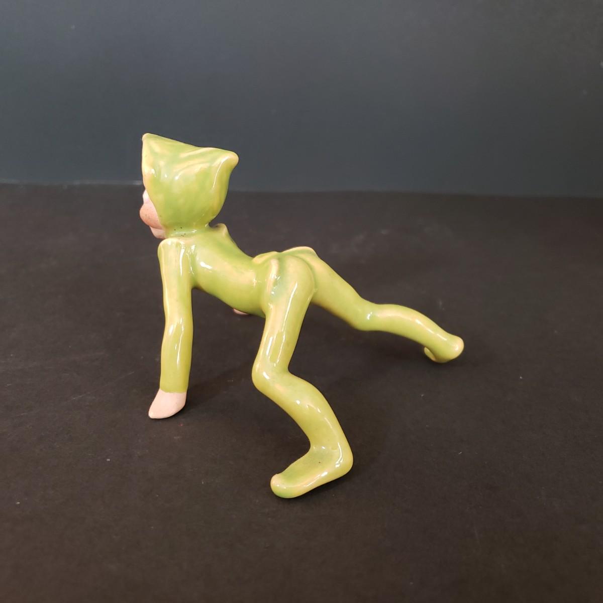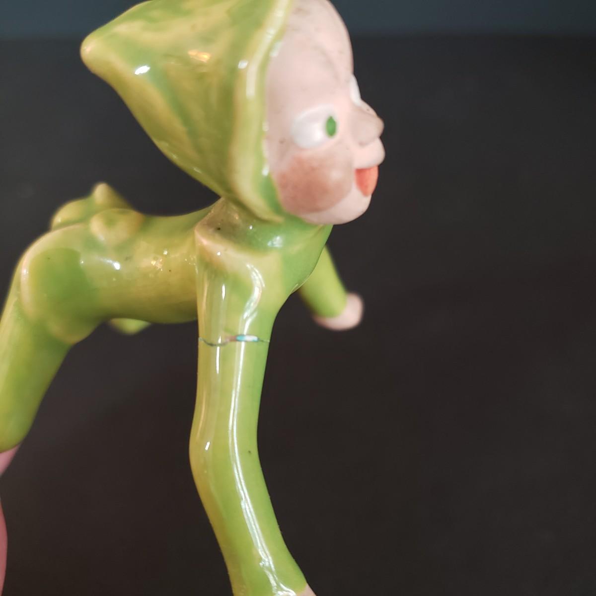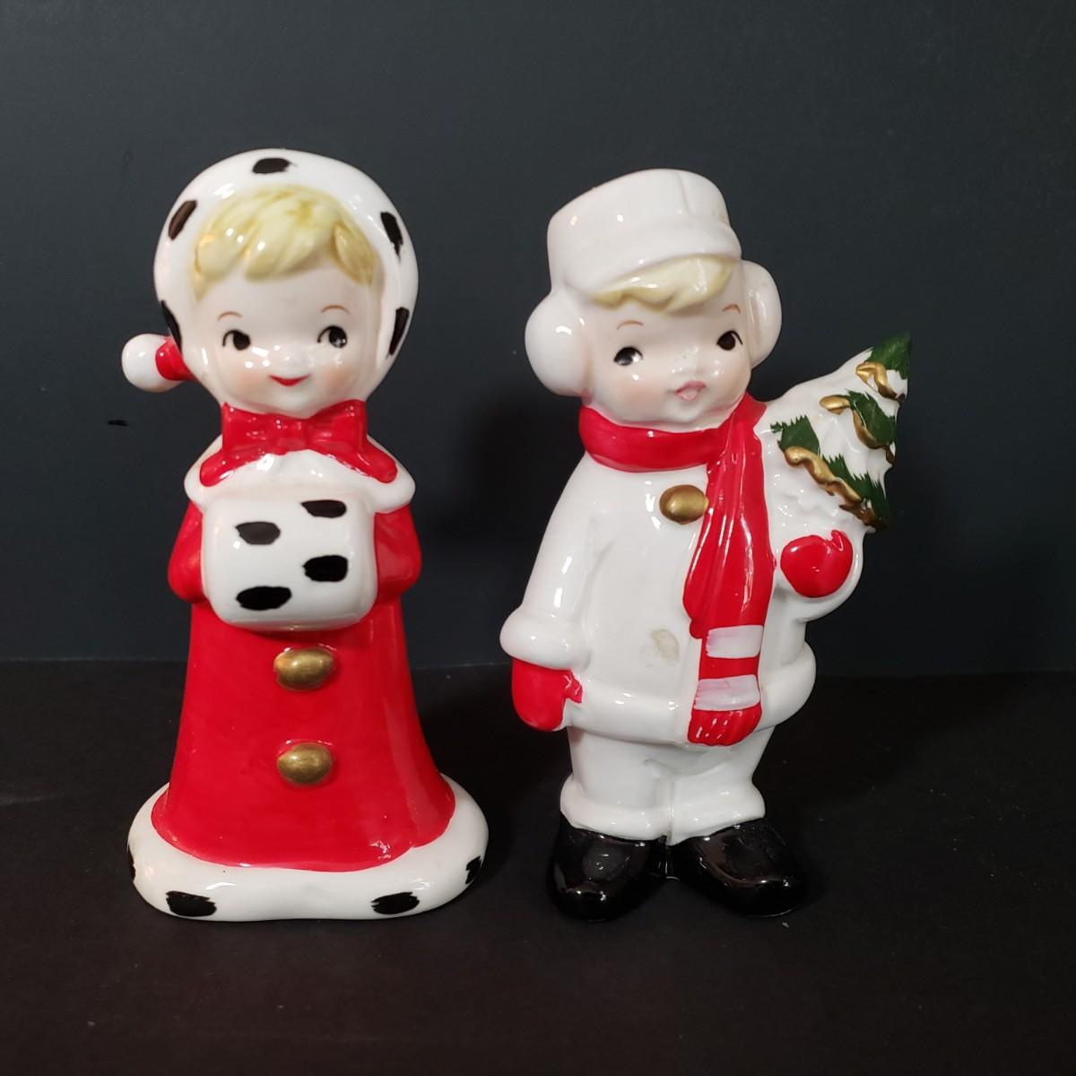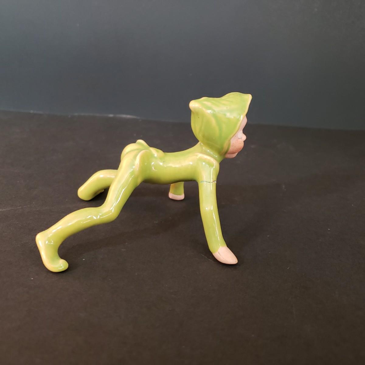 LOT 30L: Vintage Ceramic Carolers, Santa in Chimney Planter & Elf/Pixie Figurine Signed