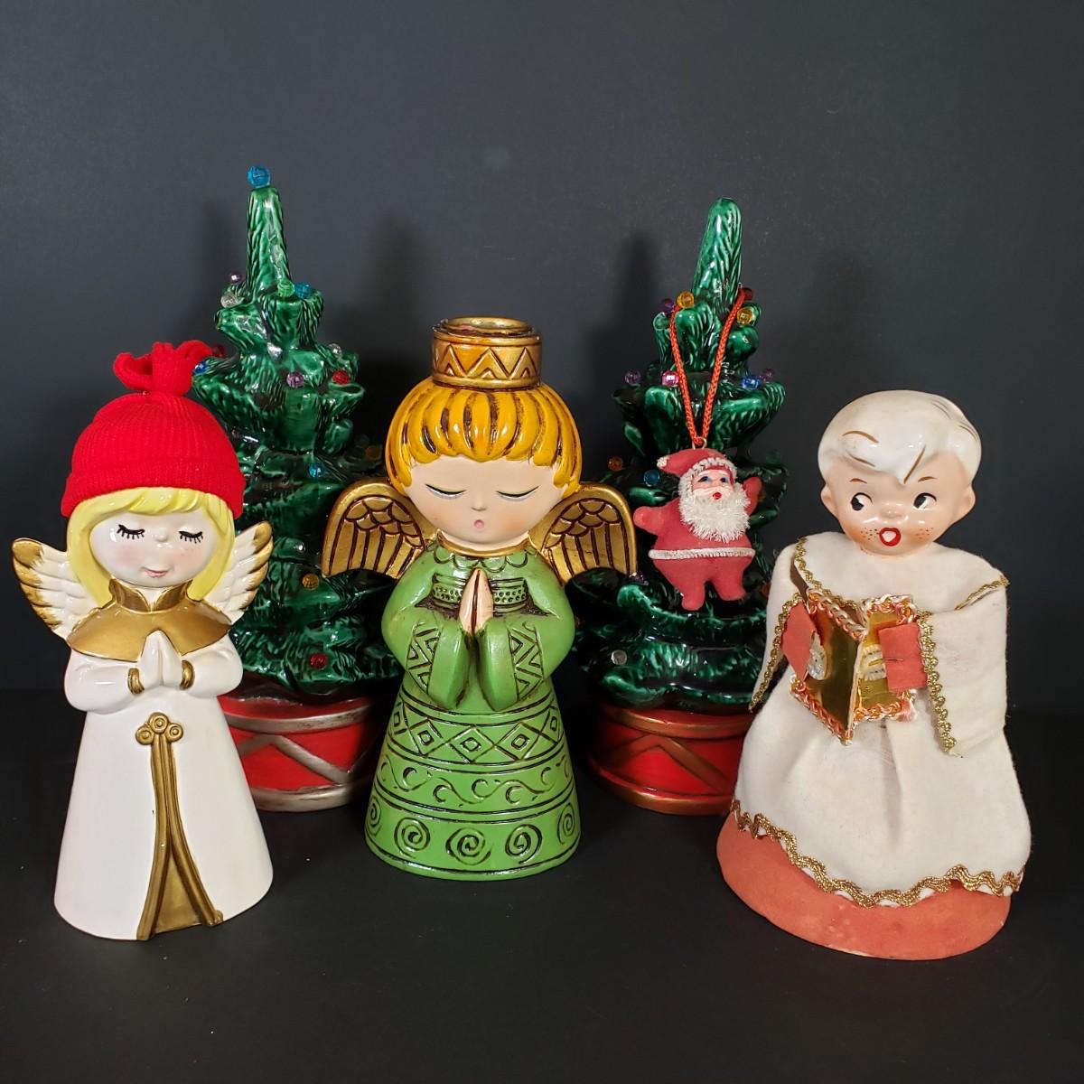 LOT 33L: Holt Howard Choir Boy, Vintage Ceramic Christmas Trees & More