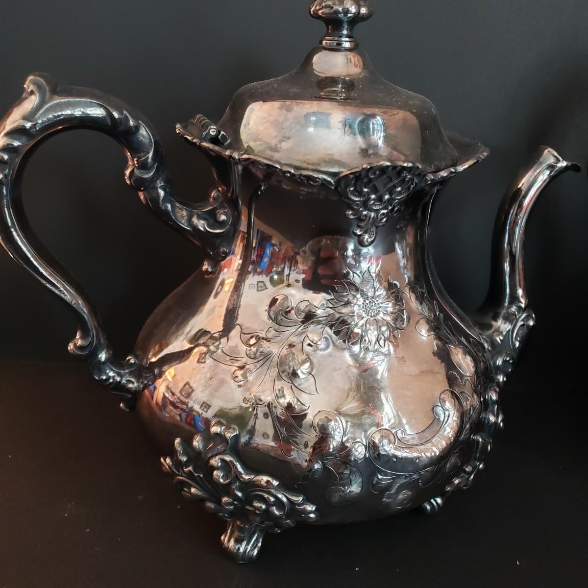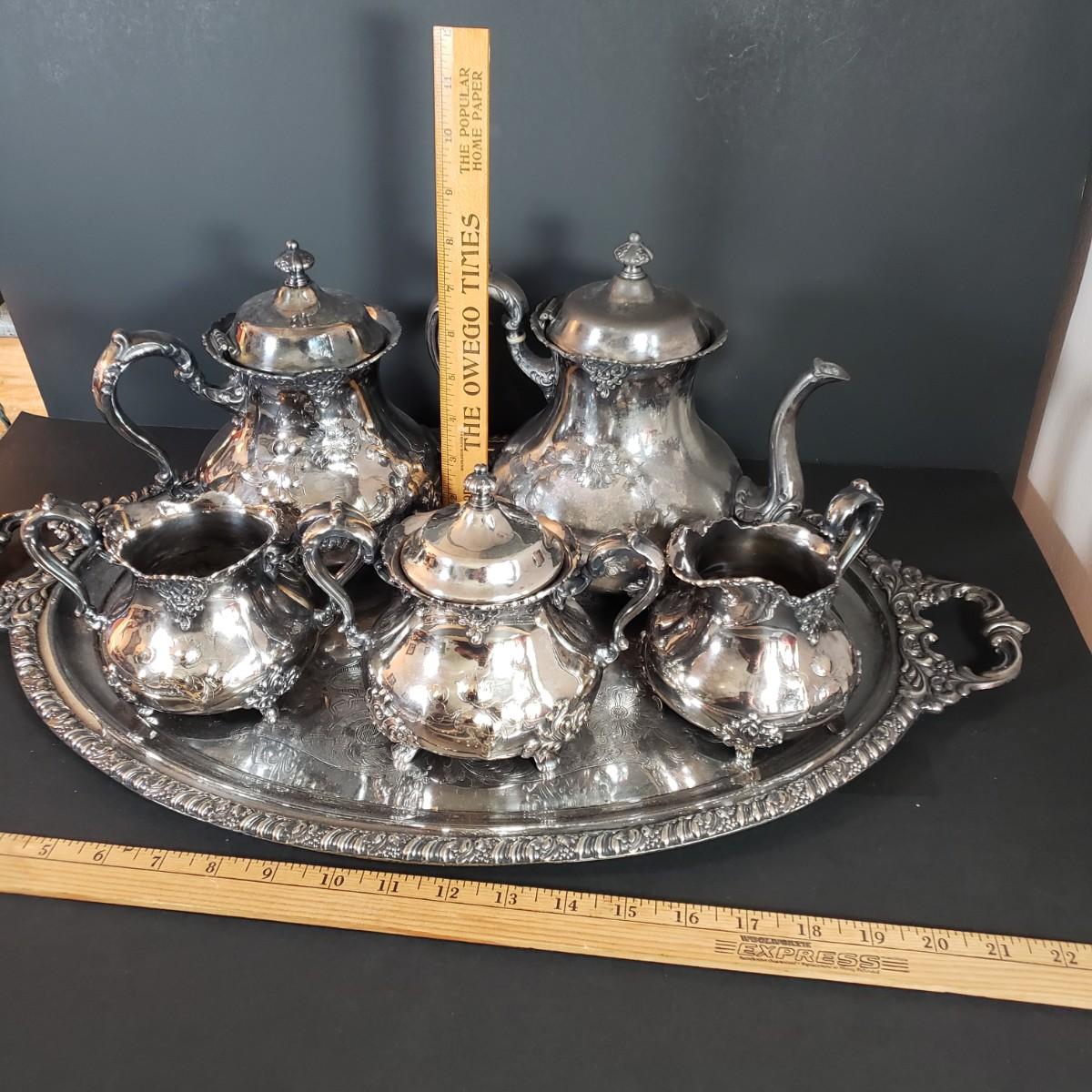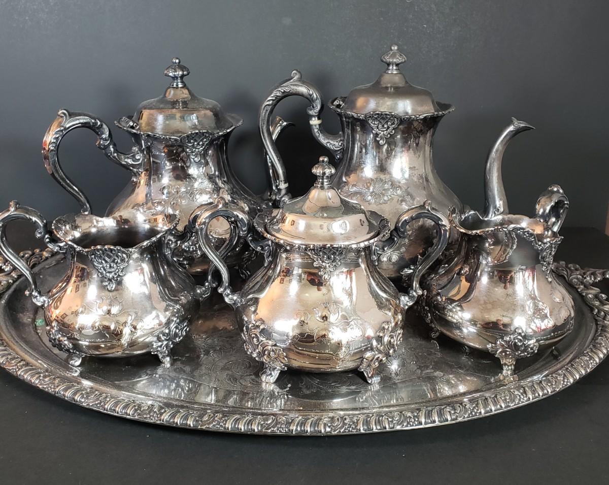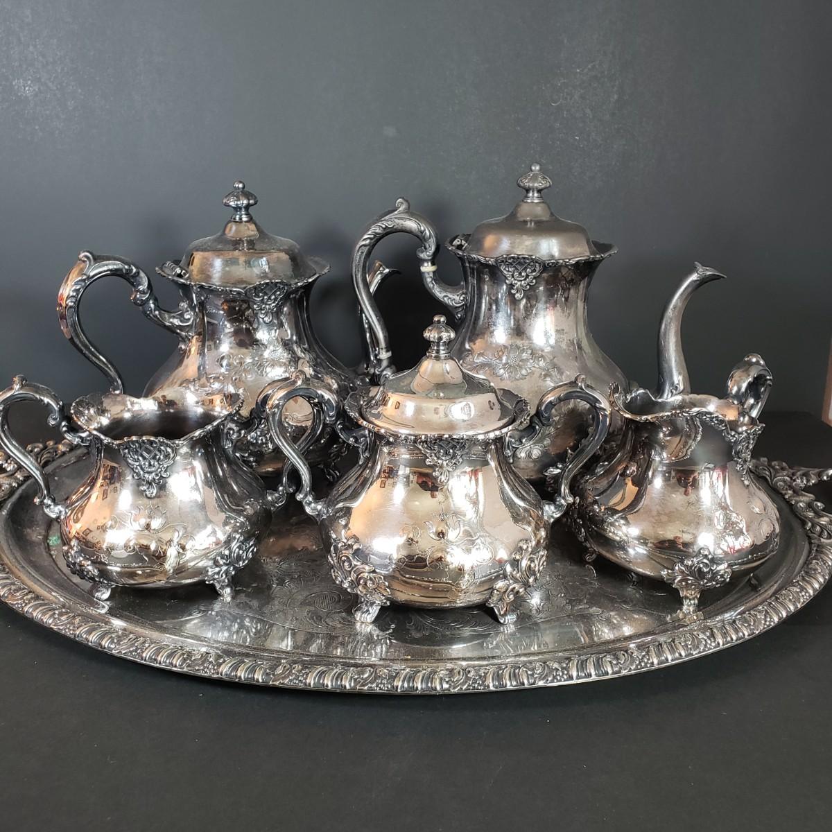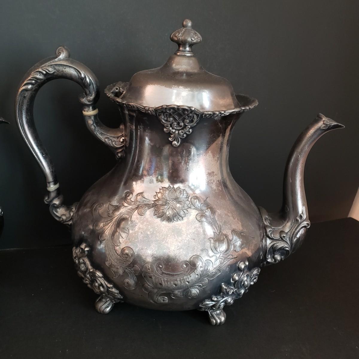 LOT 34L: Vintage Poole Silver Plate Coffee & Tea Serving Set