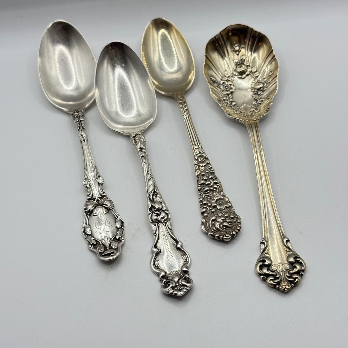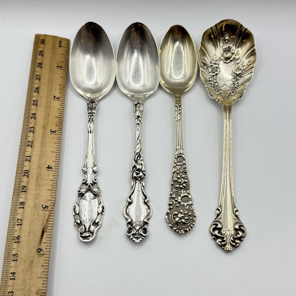 LOT 47J: Four Ornate Sterling Silver Spoons (119.79g)