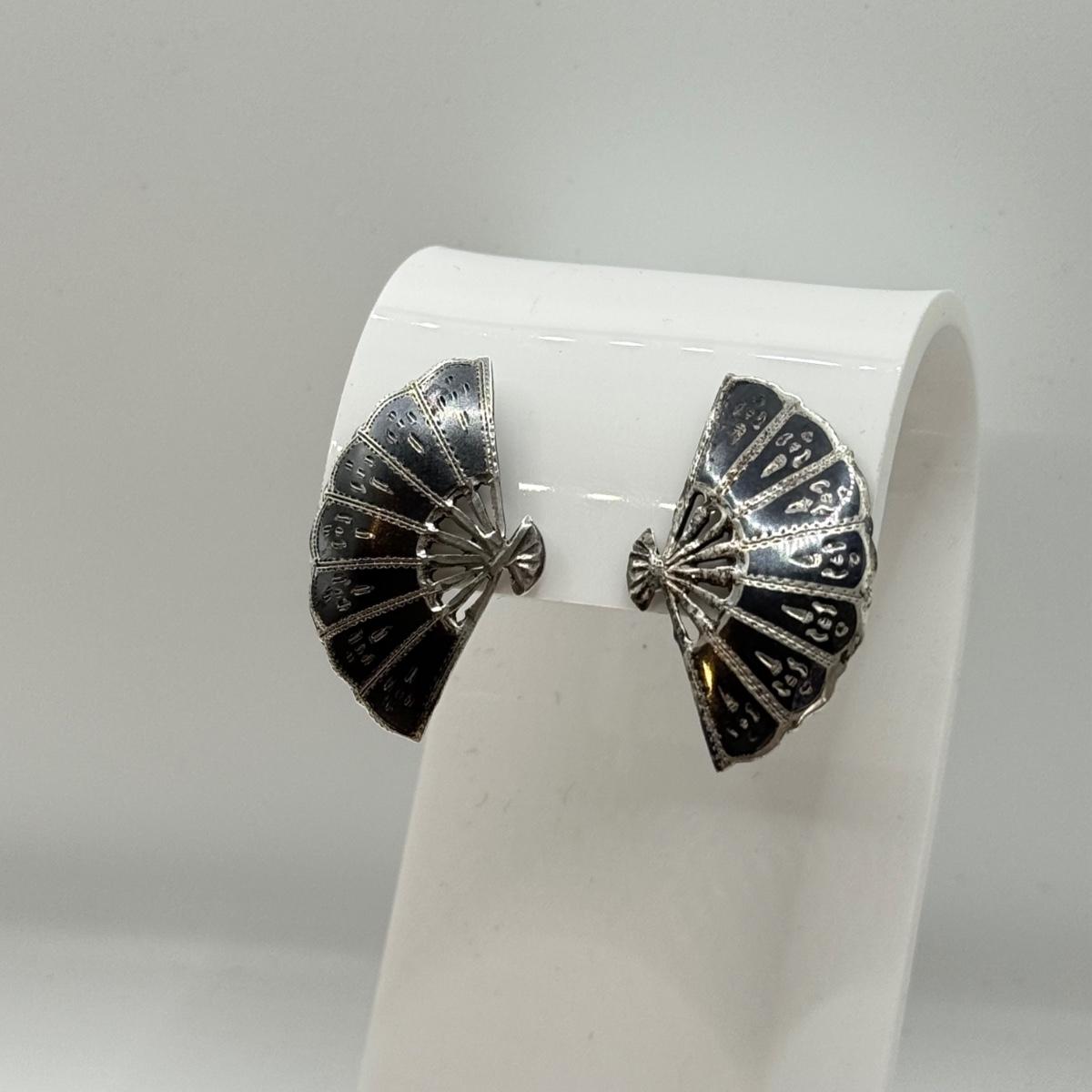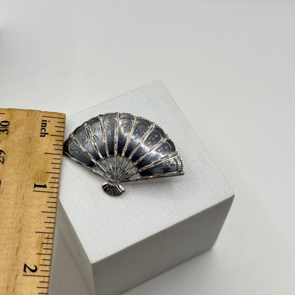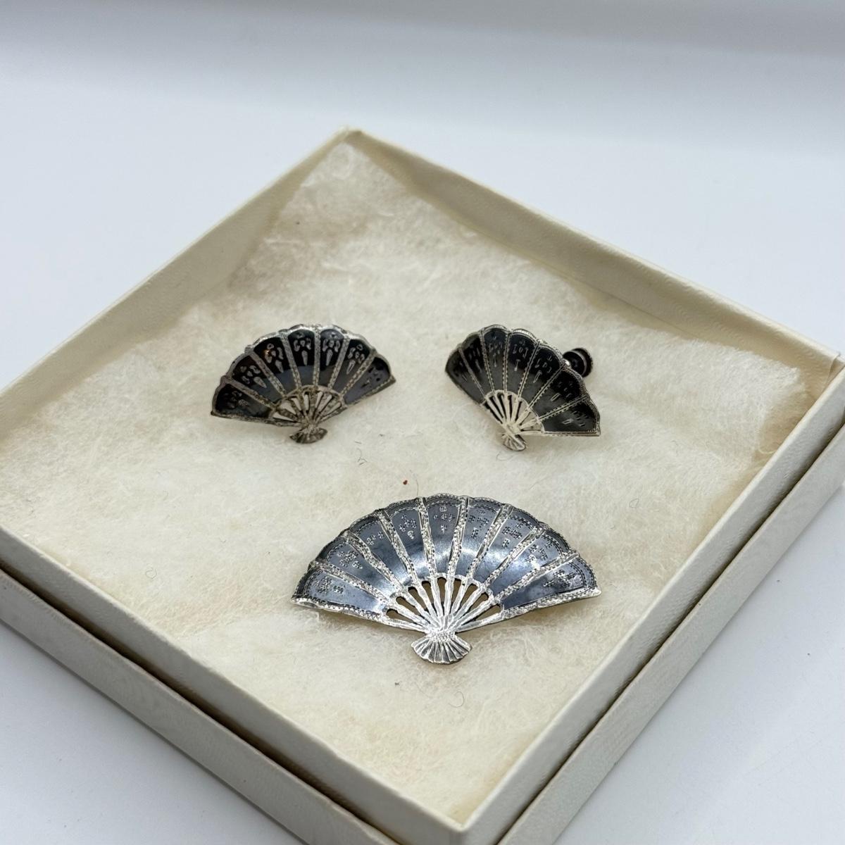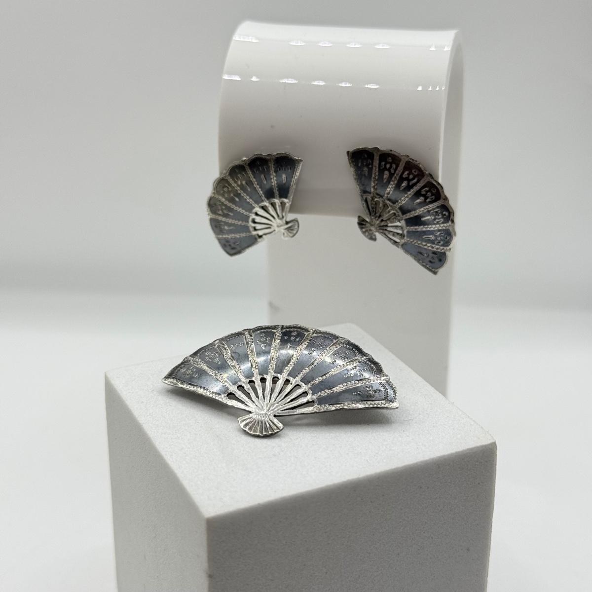 LOT 50J: Vintage Sterling Silver Fan Pin & Screwback Earrings Set (11.64g)