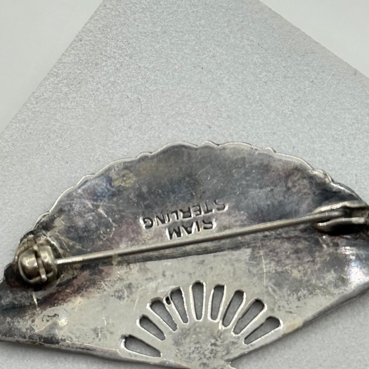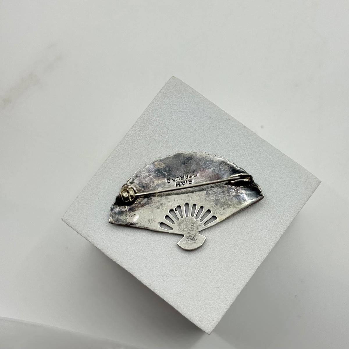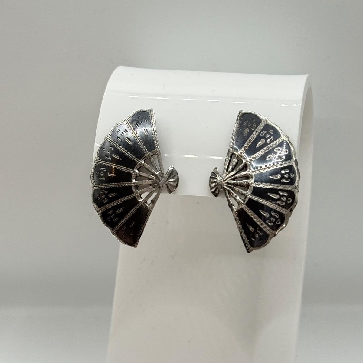LOT 50J: Vintage Sterling Silver Fan Pin & Screwback Earrings Set (11.64g)