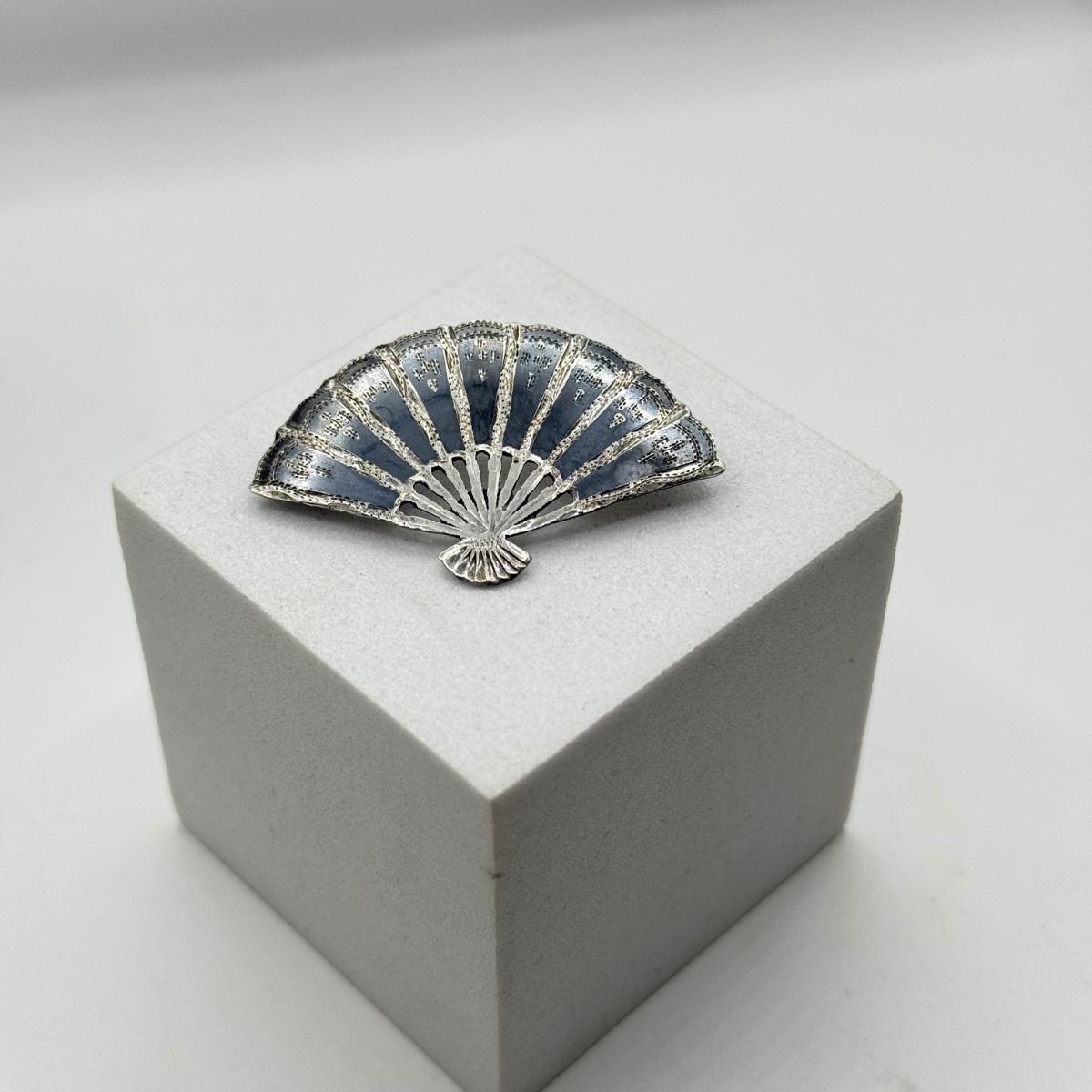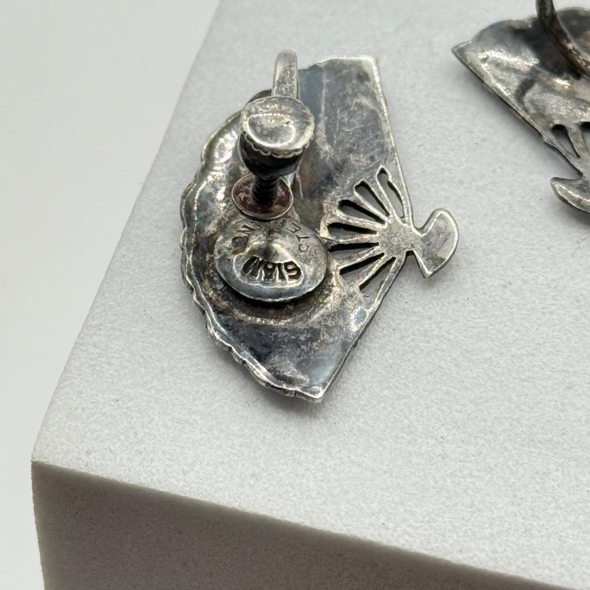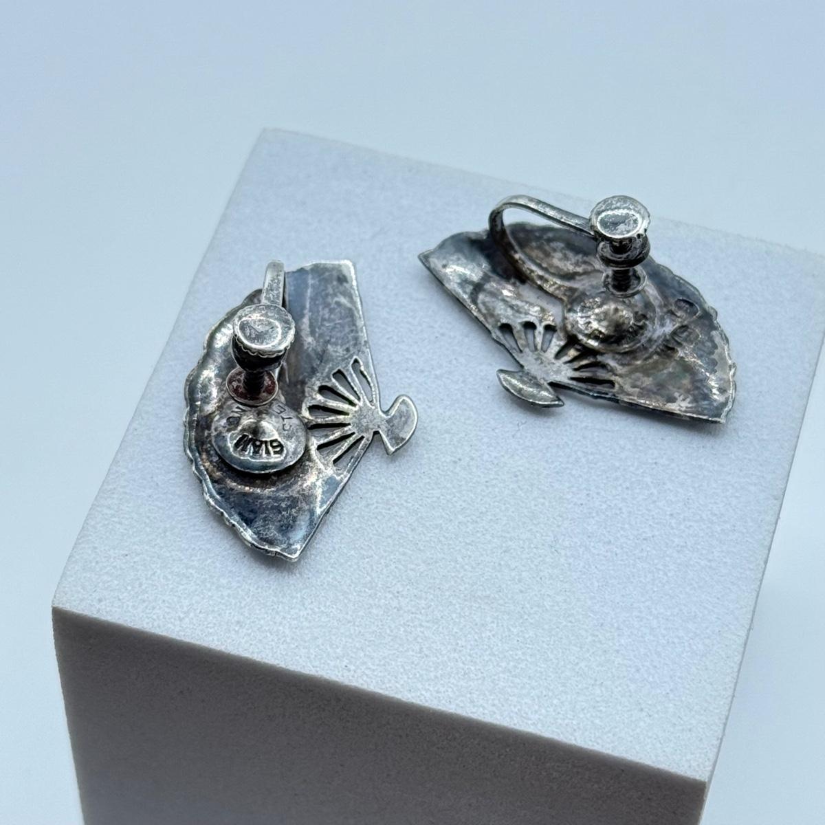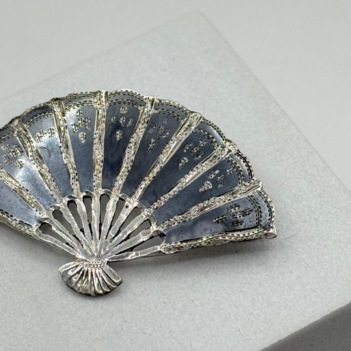 LOT 50J: Vintage Sterling Silver Fan Pin & Screwback Earrings Set (11.64g)