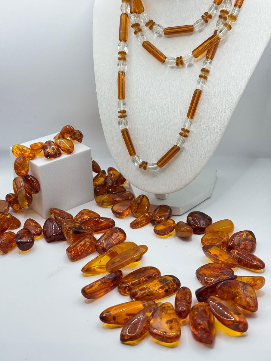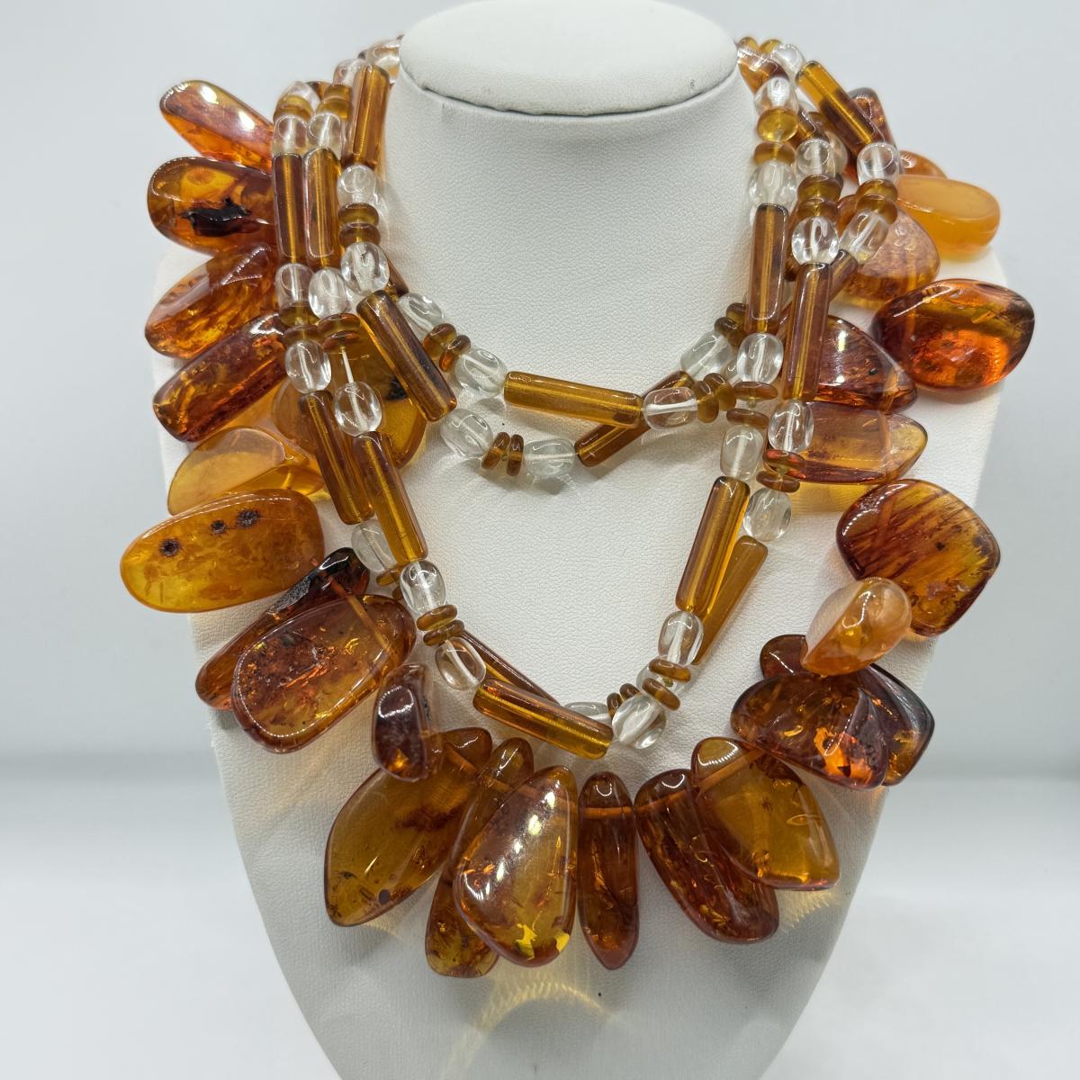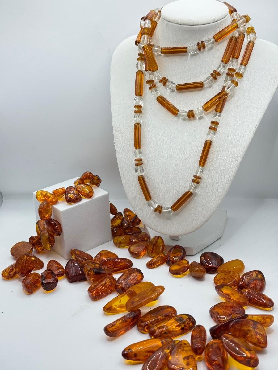LOT 51J: Amber Beaded Necklaces - 48” & 28”