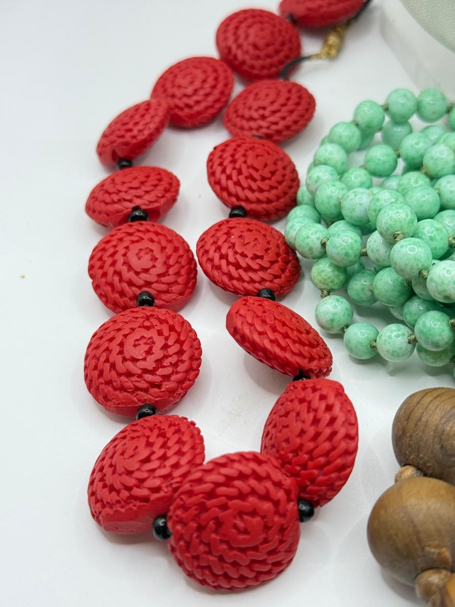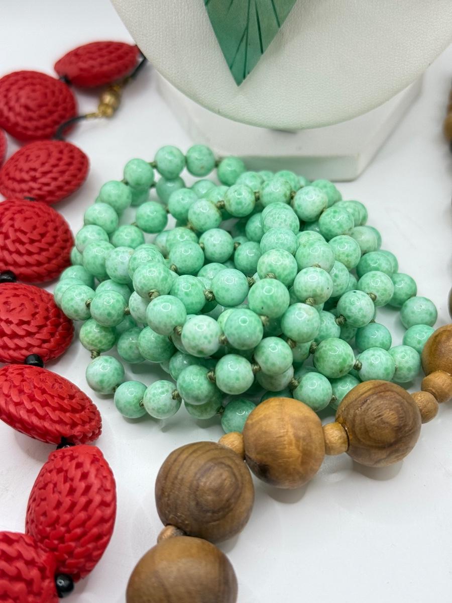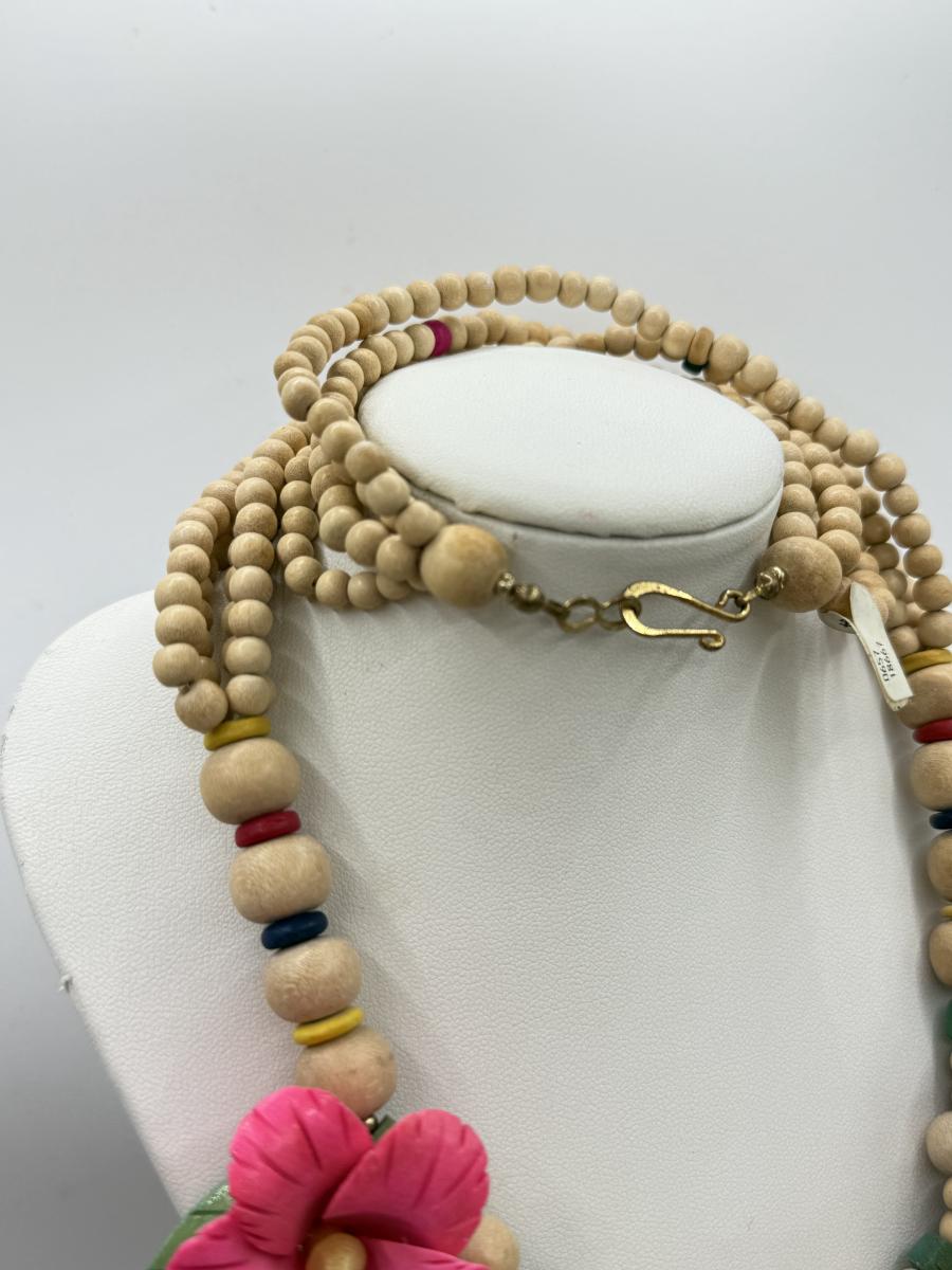 LOT 52J: Tropical Wooden Flower Necklace w/ Beaded Necklaces