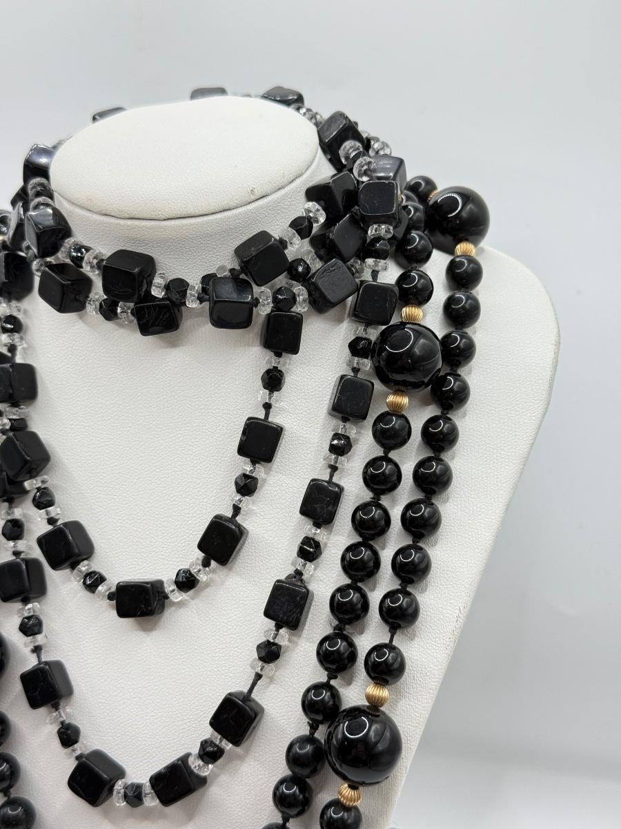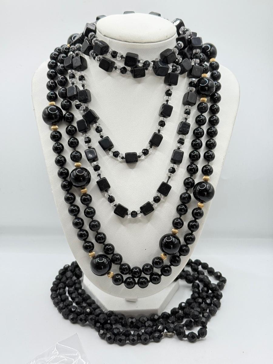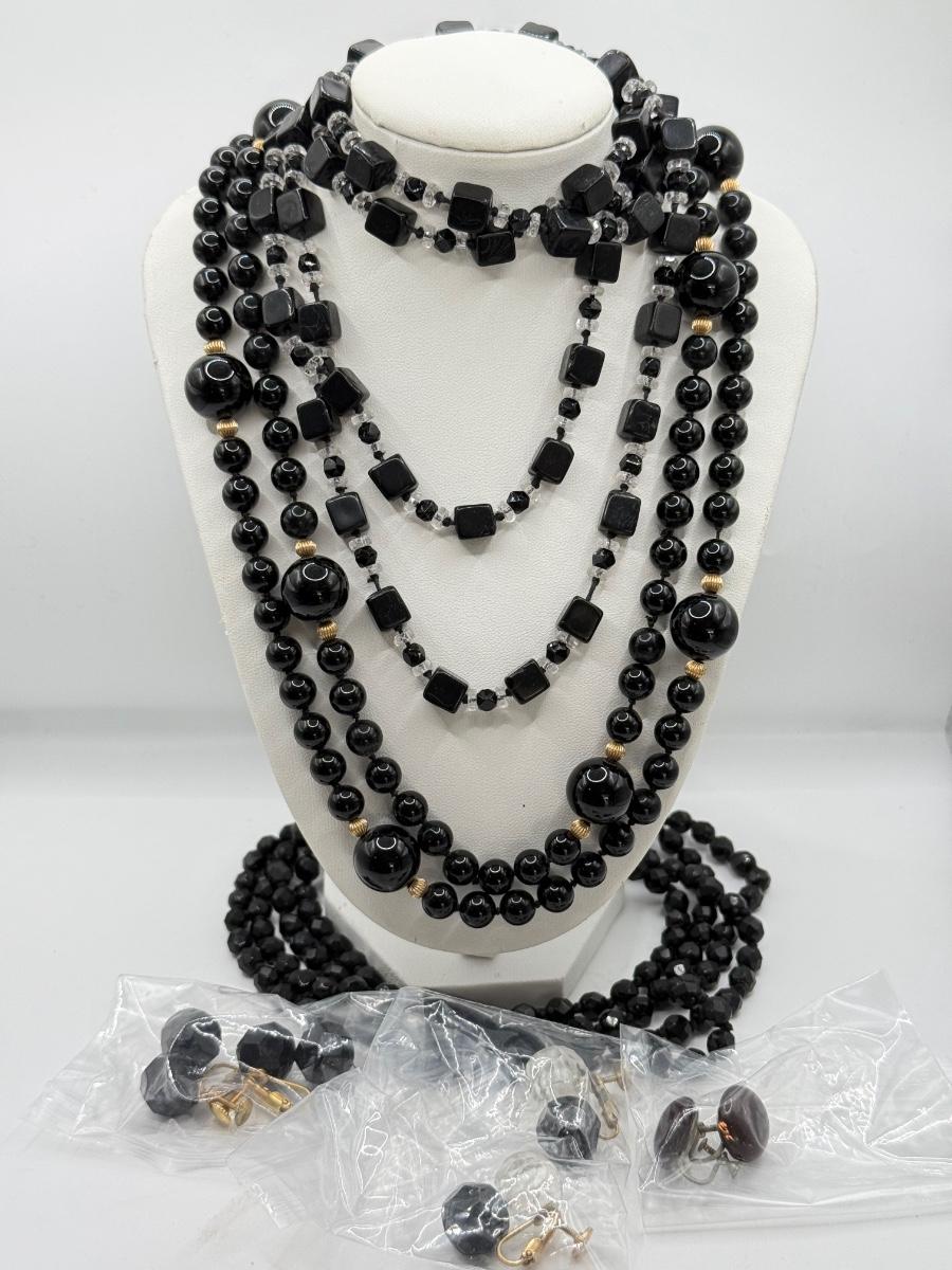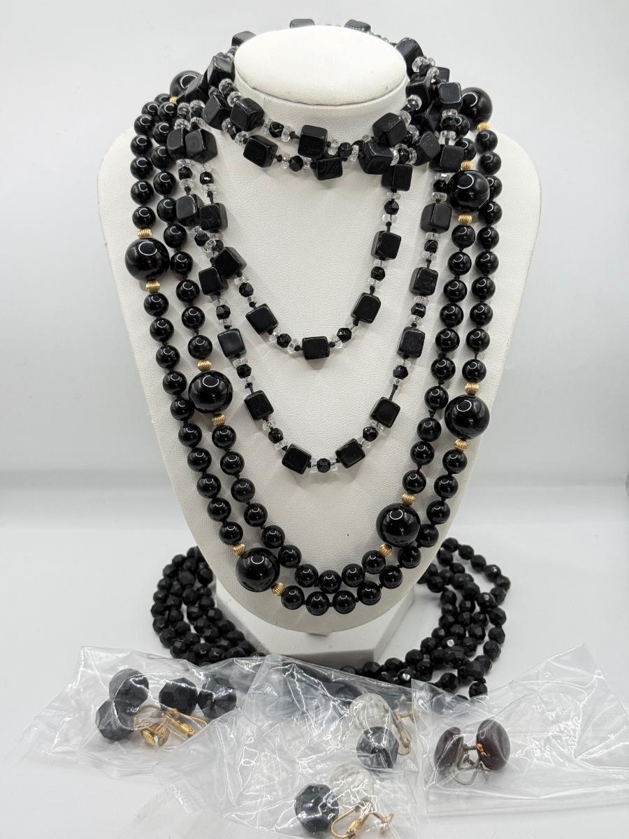 LOT 53J: Black Beaded Necklaces w/ Screw Back Earrings