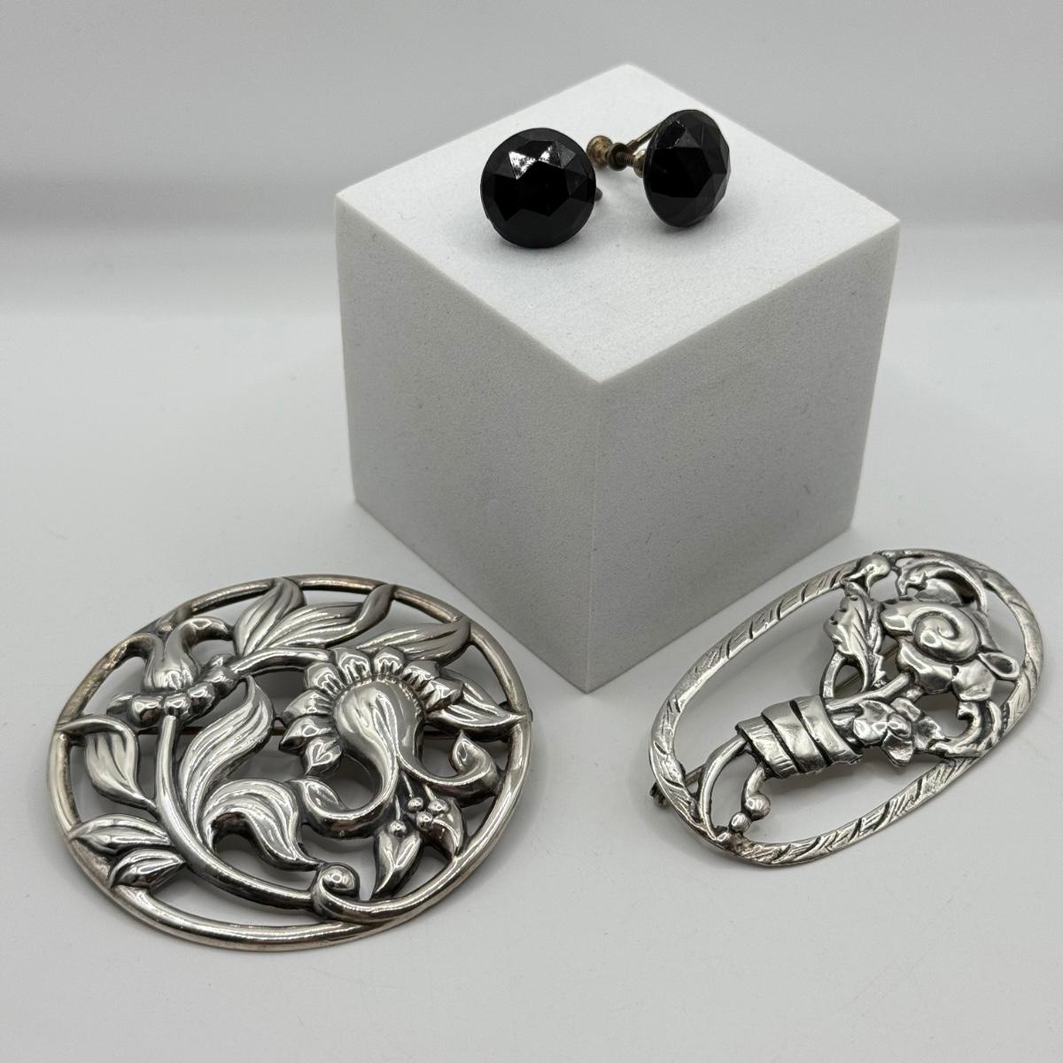 LOT 54J: Sterling Silver Pins/Brooches & Screw Back Earrings (27.75g - pins only)