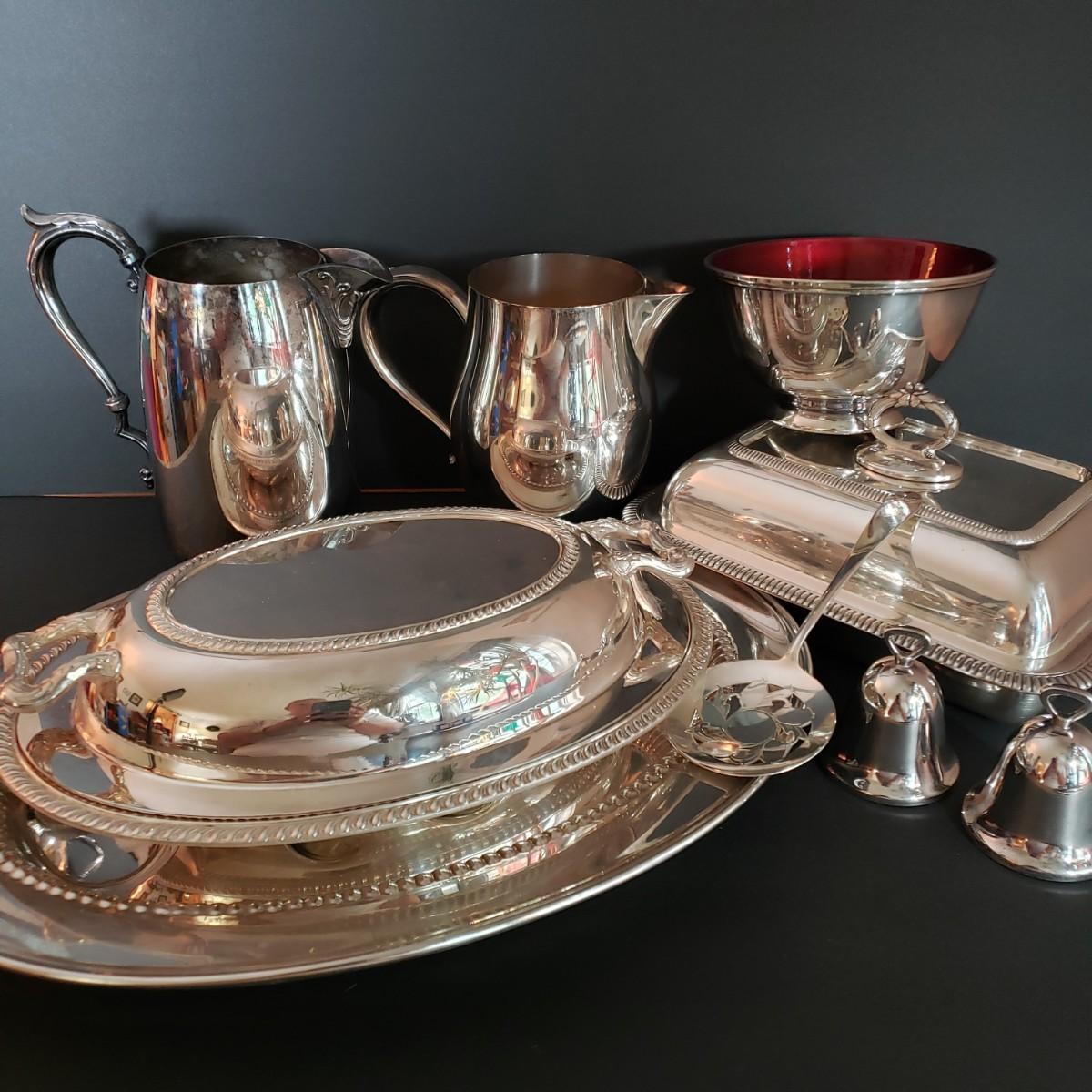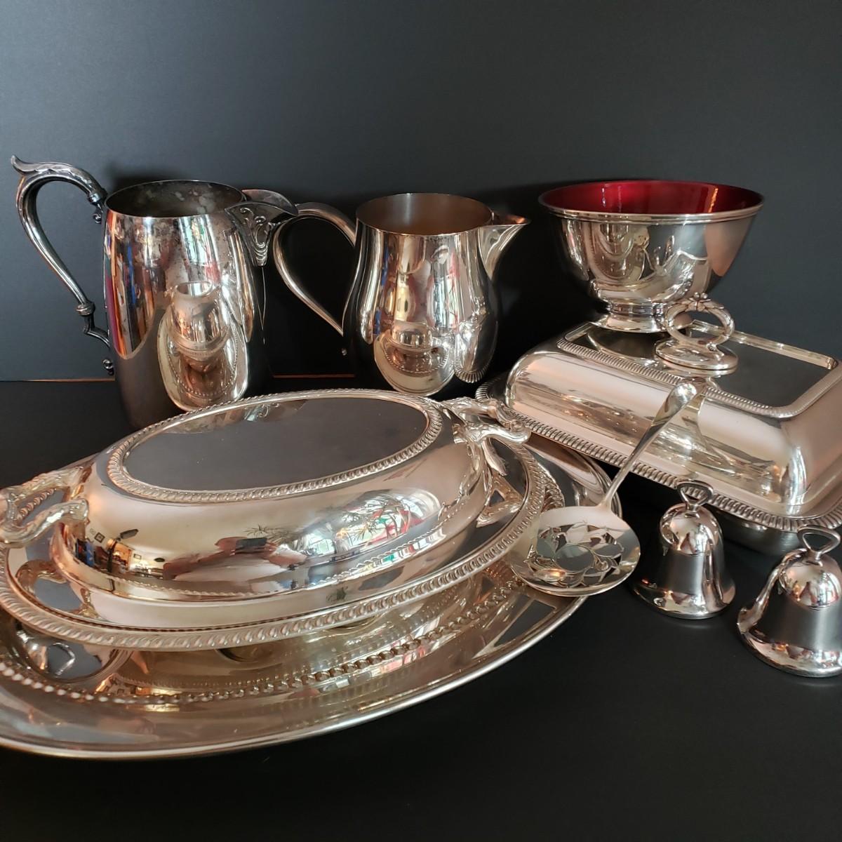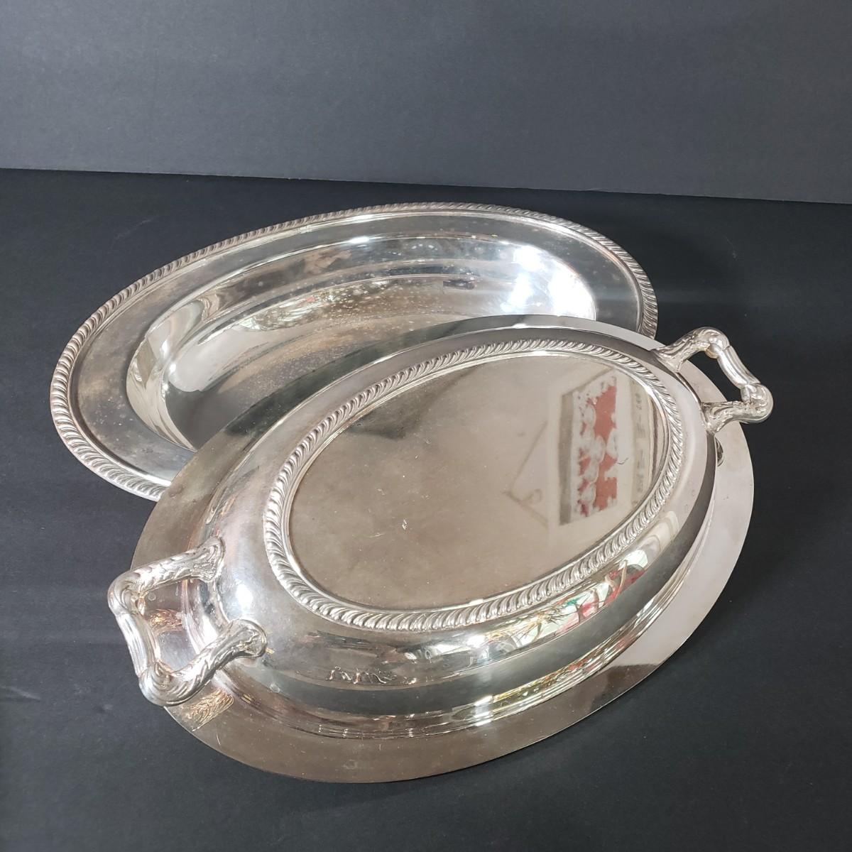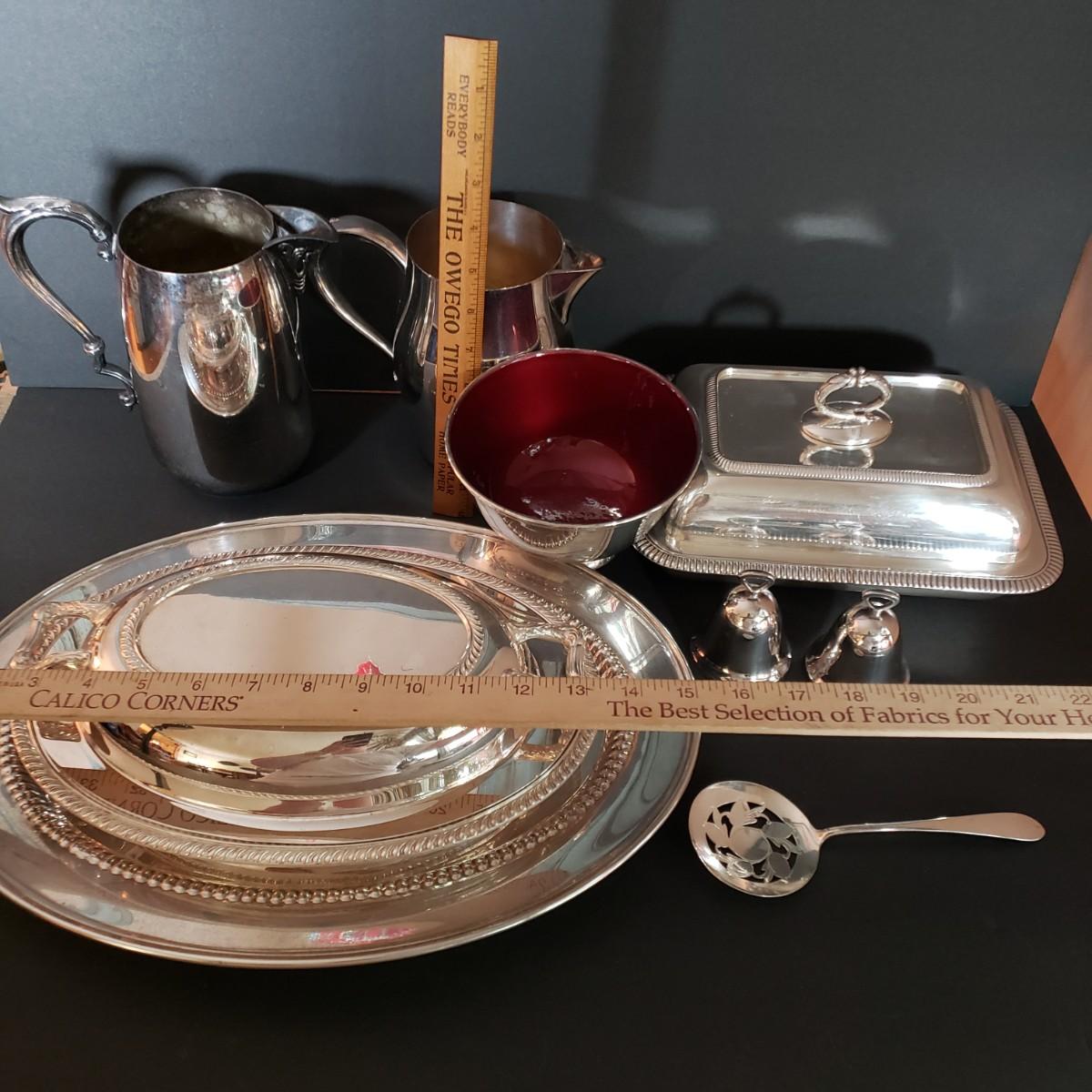 LOT 63L: Towle Red Enamel Bowl, Sheridan, Gorham & Other Silver Plate Serveware