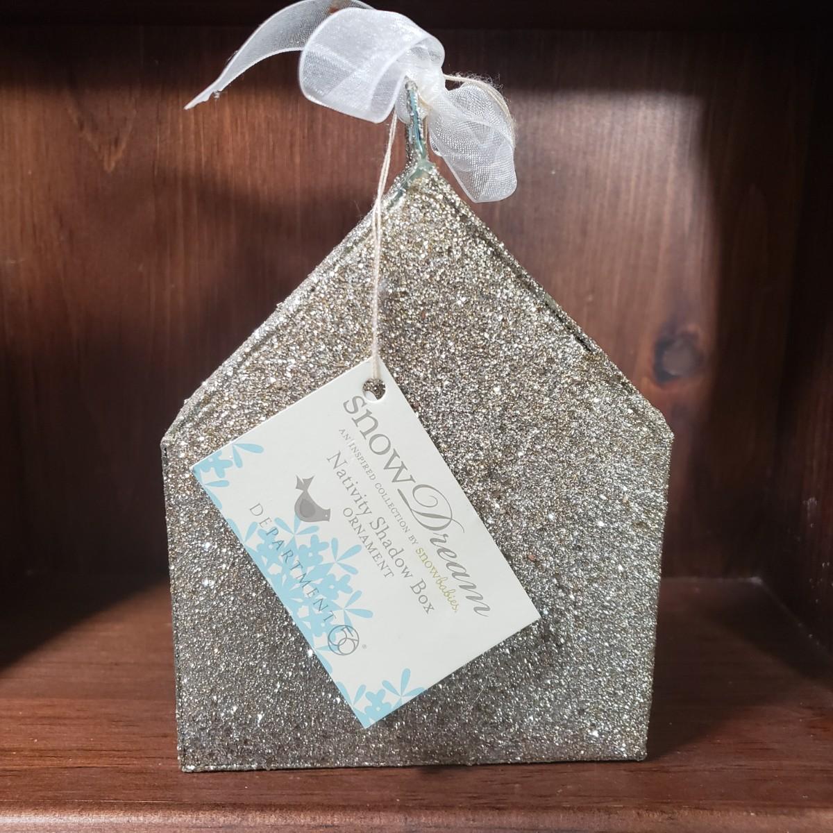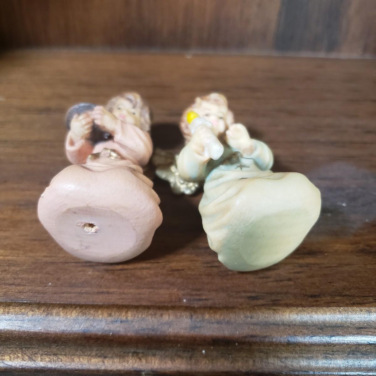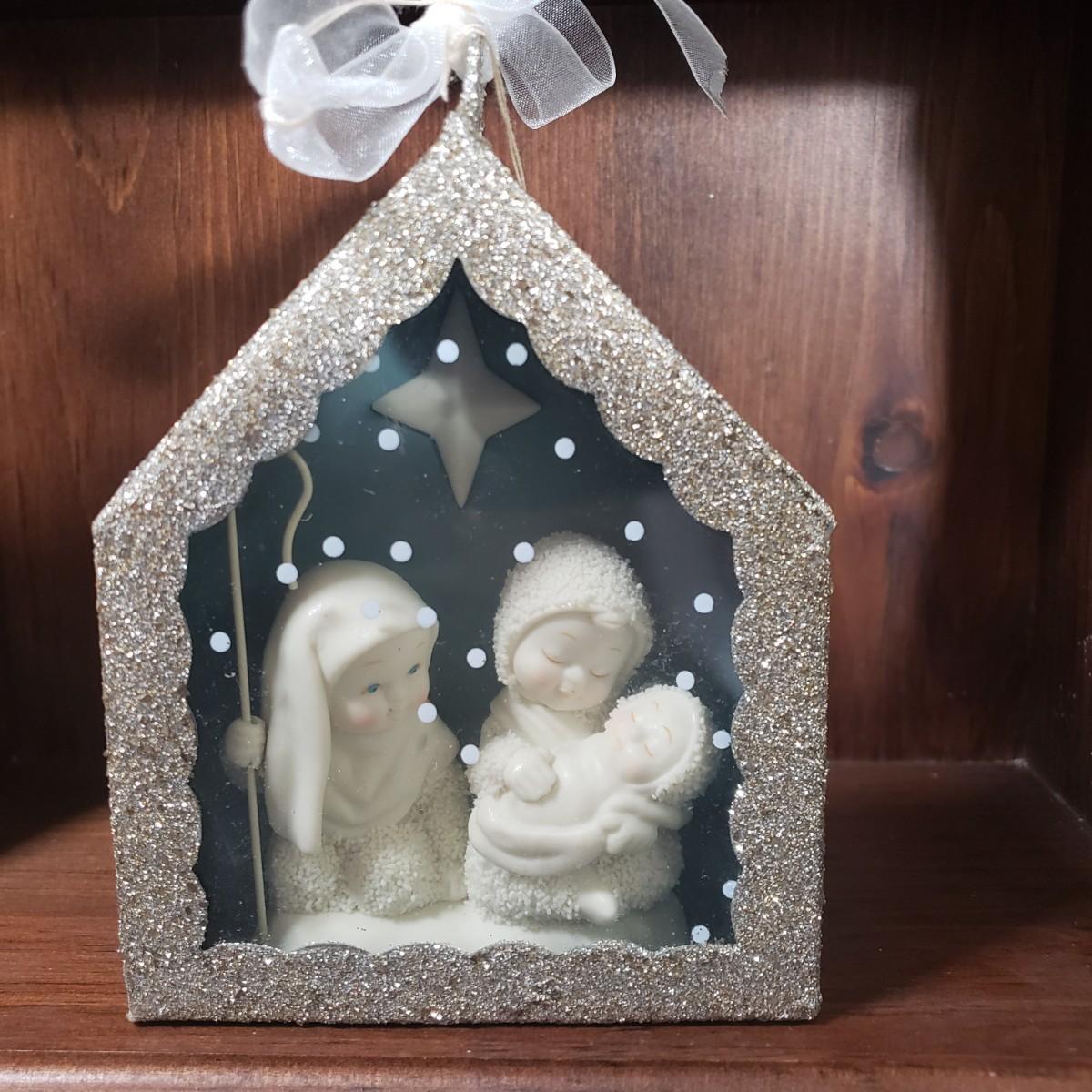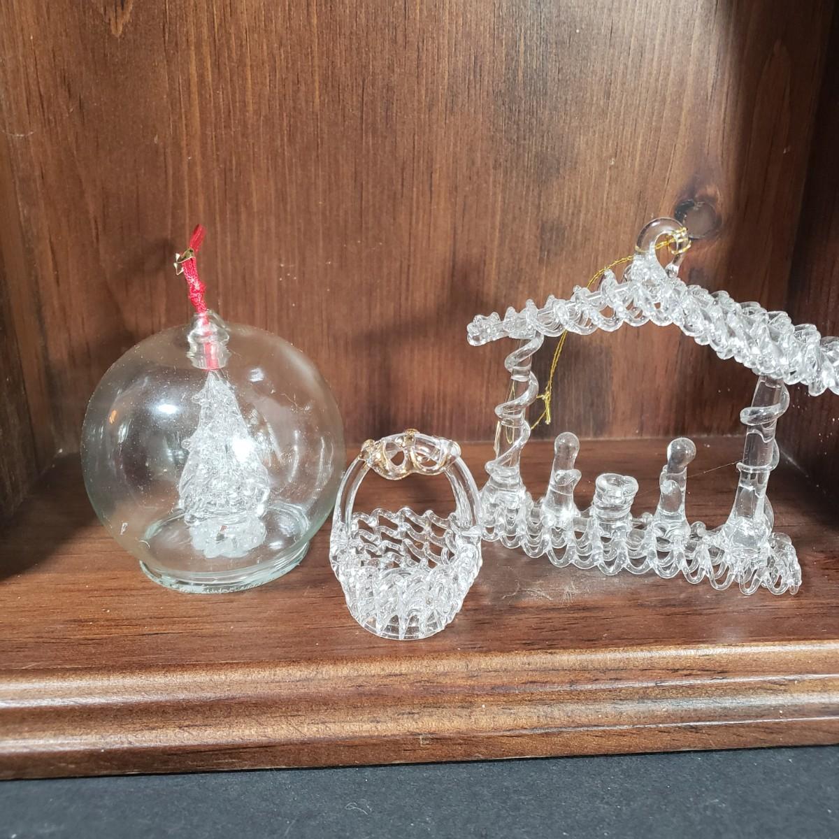 LOT 70D: Wooden Trinket Shelf with Dept 56 Nativity, Swedish Candle Holders, Angels & More