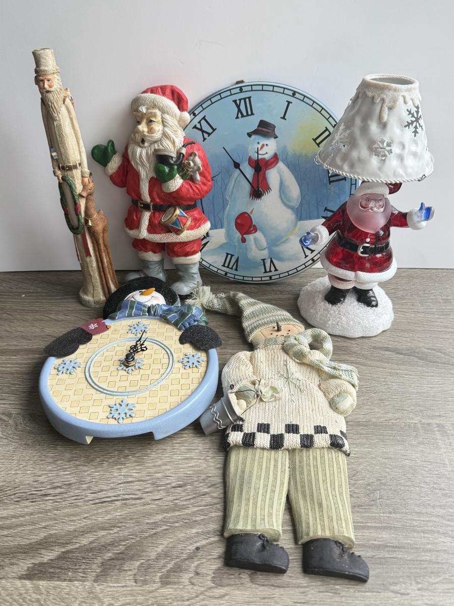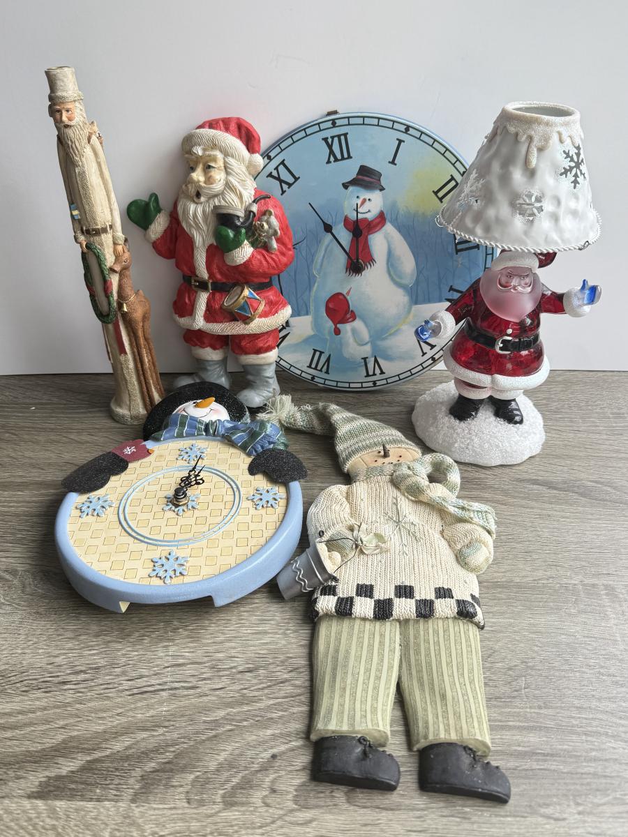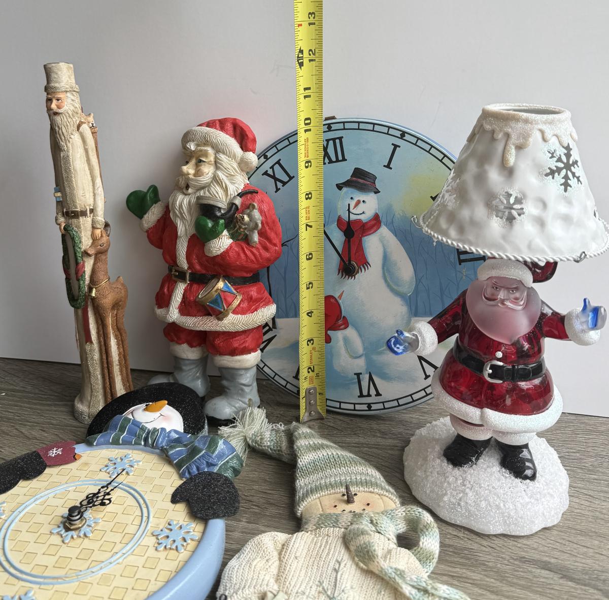 LOT 88G: Plastic Santa Lamp, Snowman Clocks & More Christmas Decor