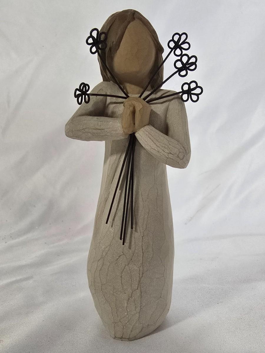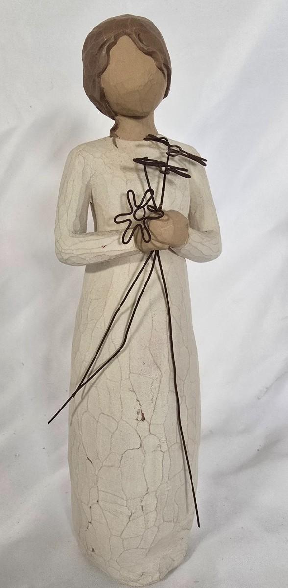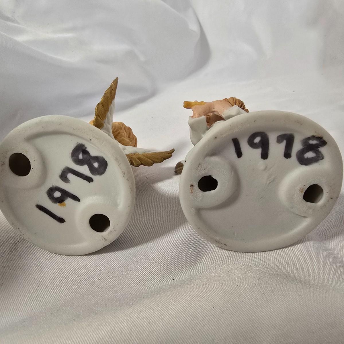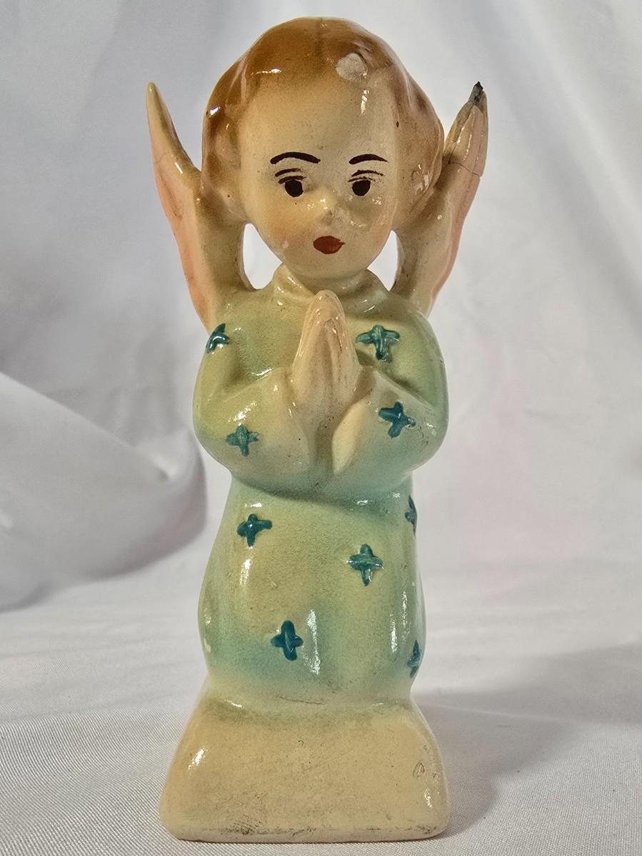 LOT 117G: Willow Tree Figurines, 70's Era Ceramic Angels, Glass Bell, and New In Box Angel Ornaments