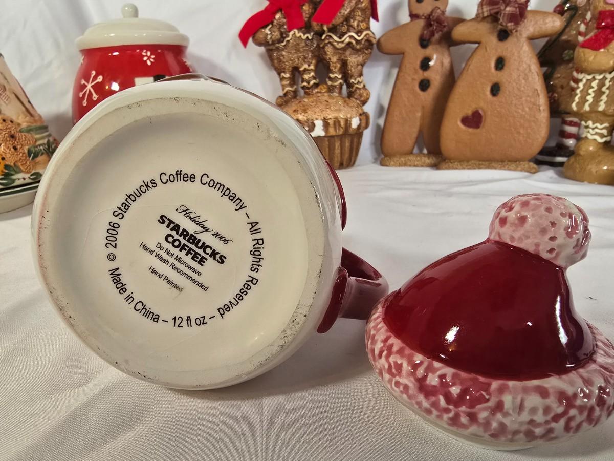 LOT 118G: Yankee Candle Accessories, Starbucks Mug, Hallmark Cookie Jar, and Gingerbread Men