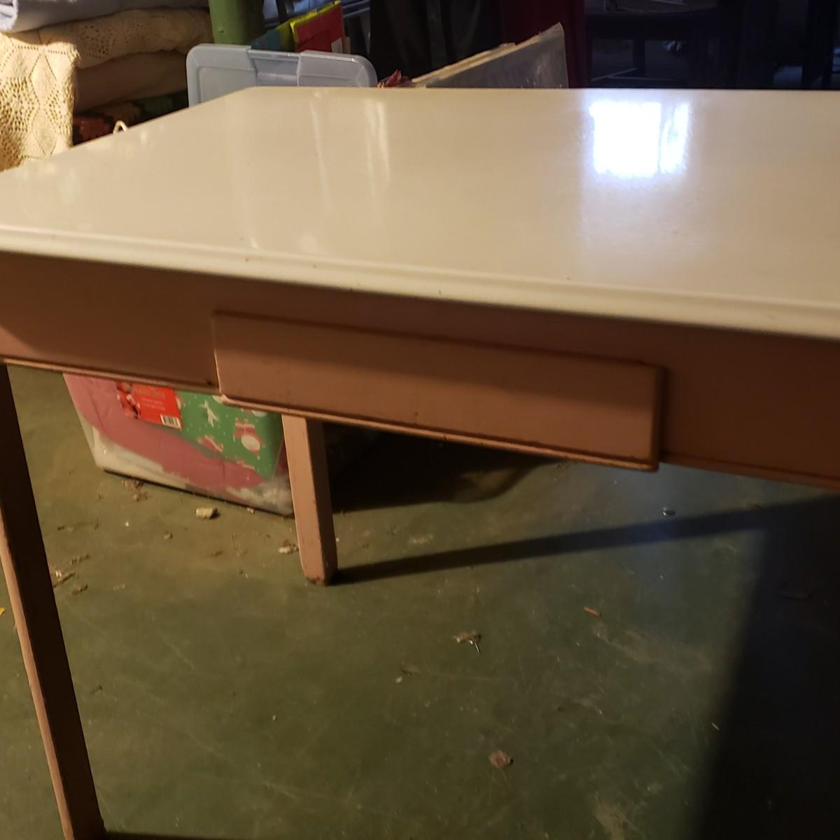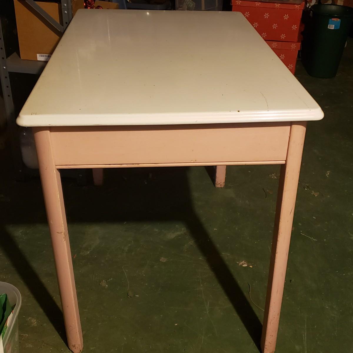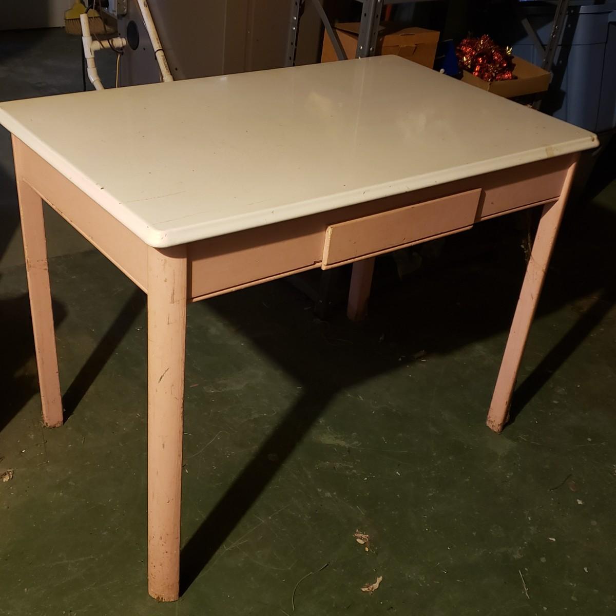 LOT 145B: Vintage Pink & White Enamel Top Kitchen Table