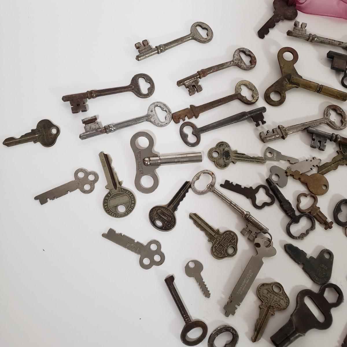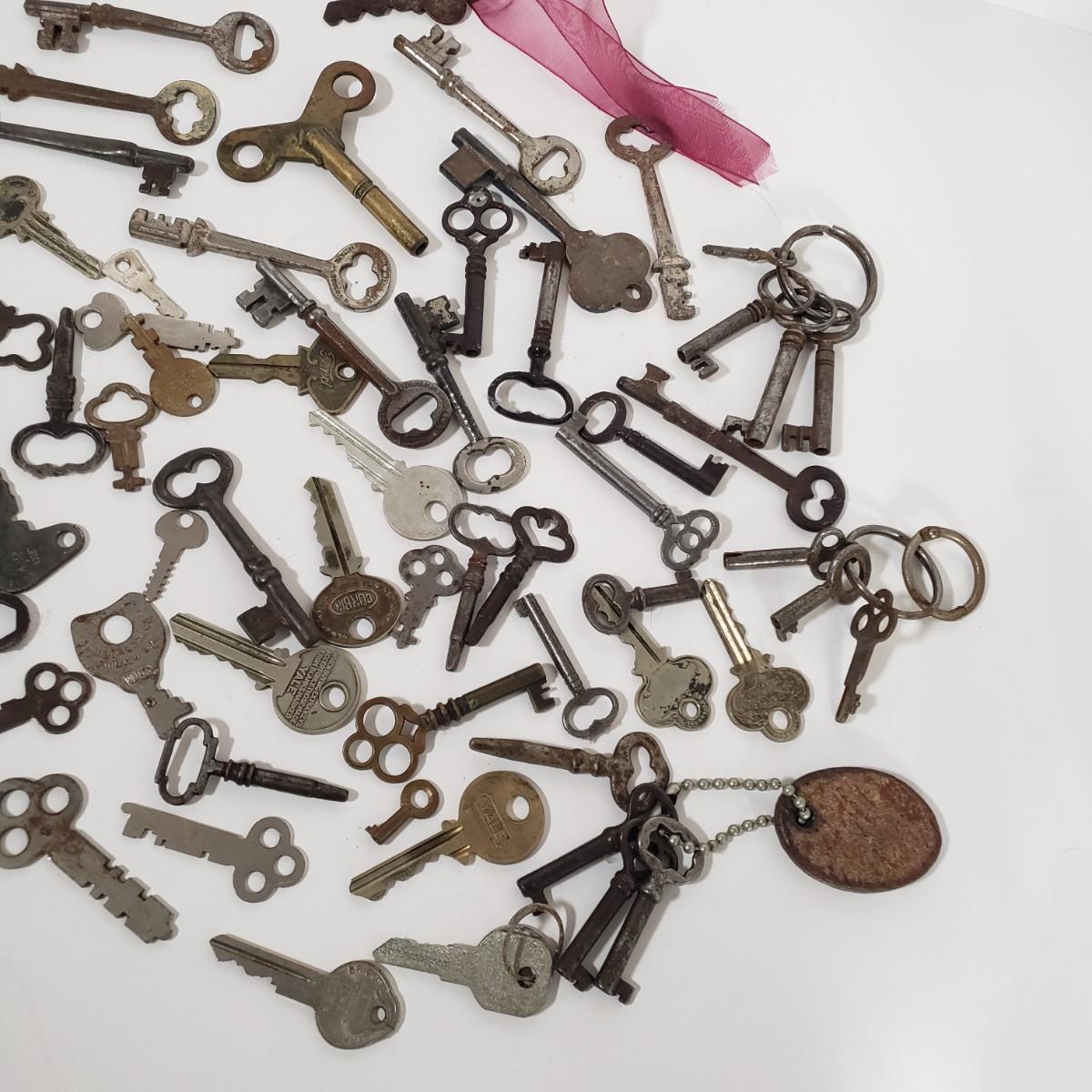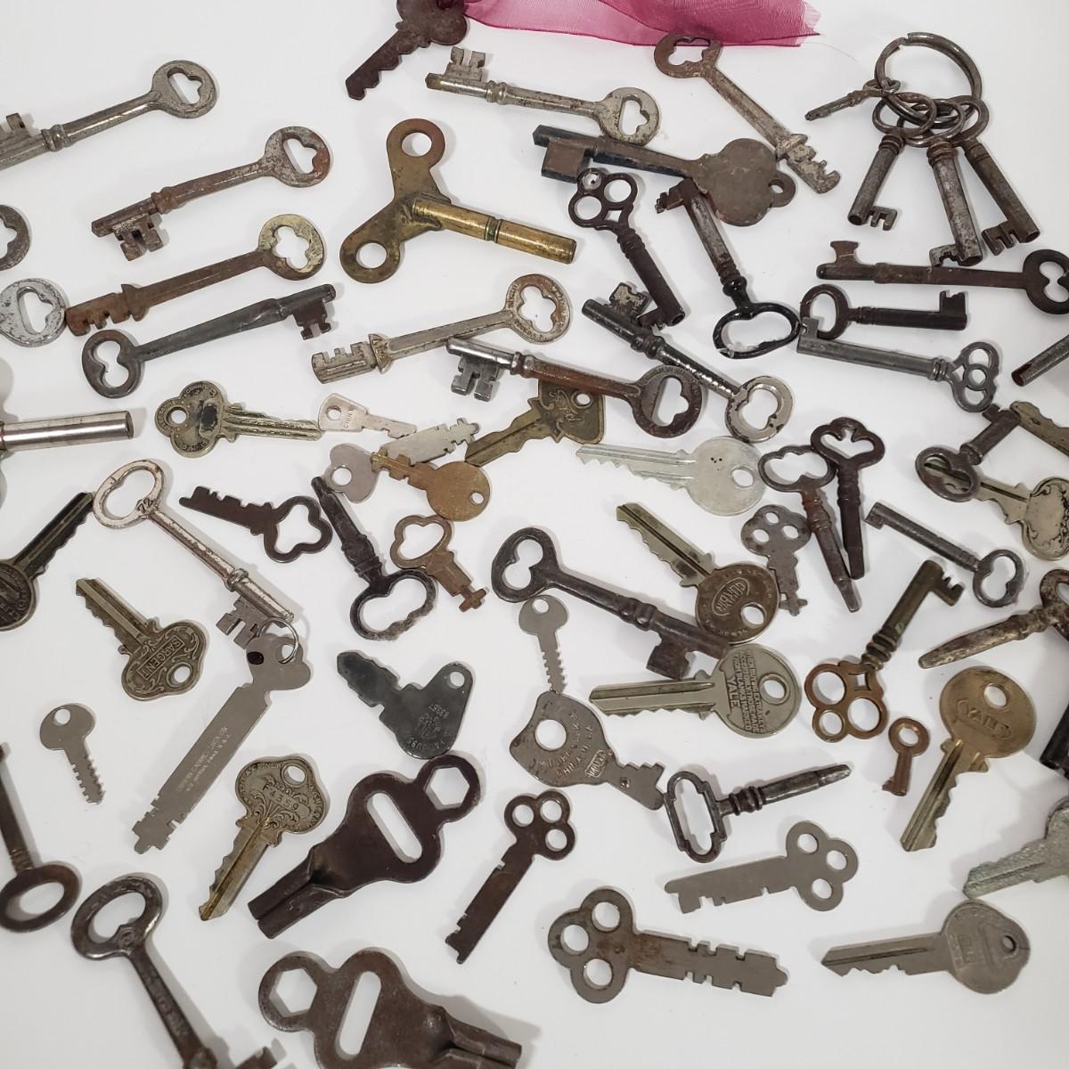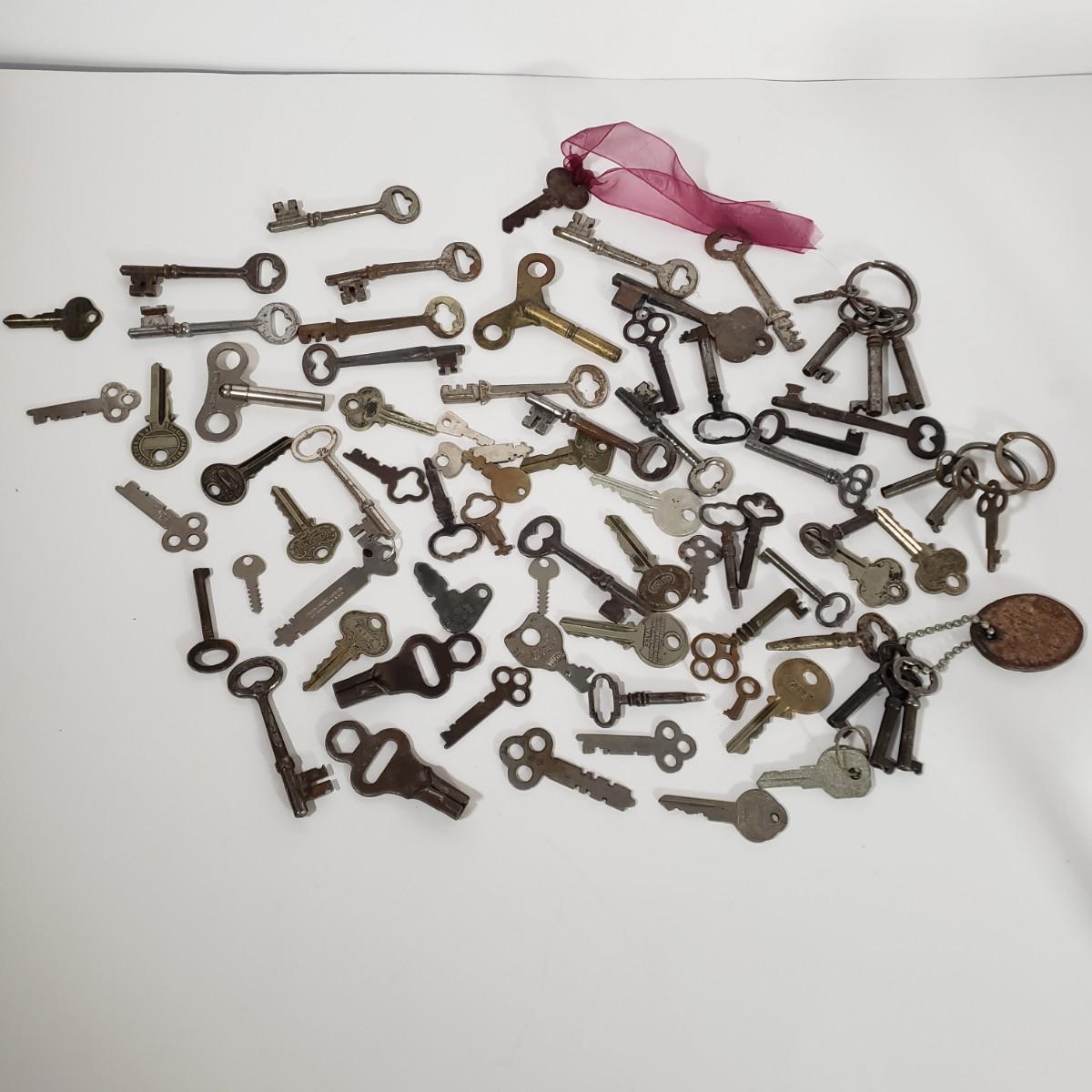 LOT 148L: Vintage Lance Cracker Glass Jar Filled with Keys-Skeleton, Rollerskate, Clock Keys & More