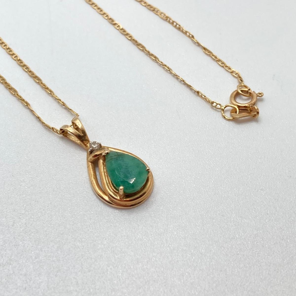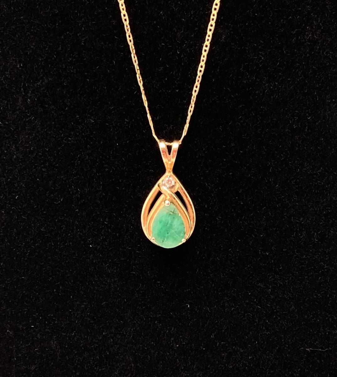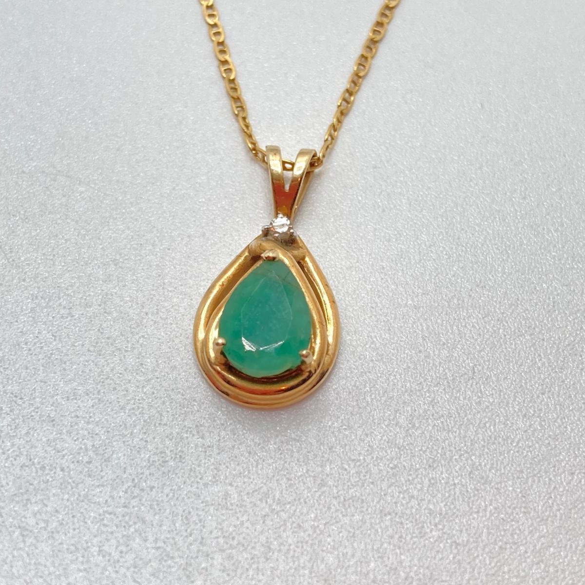 LOT 38: Gold Pendant Necklace with Green Gemstone - 14KT, 2.1 gtw, 17"