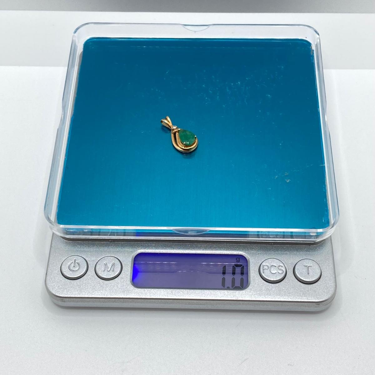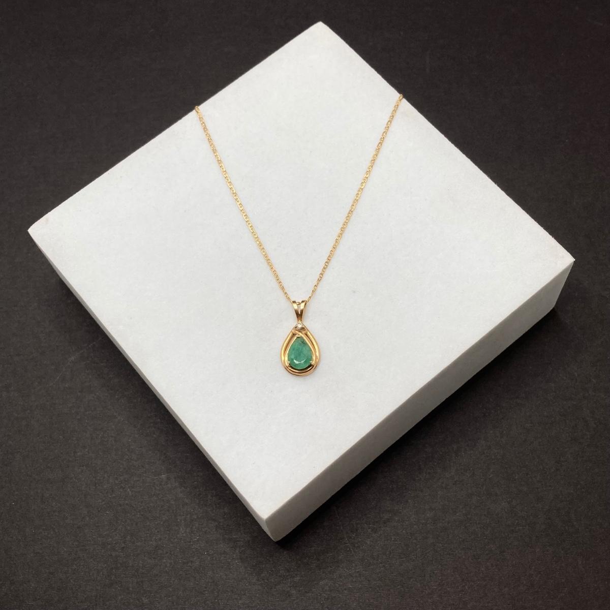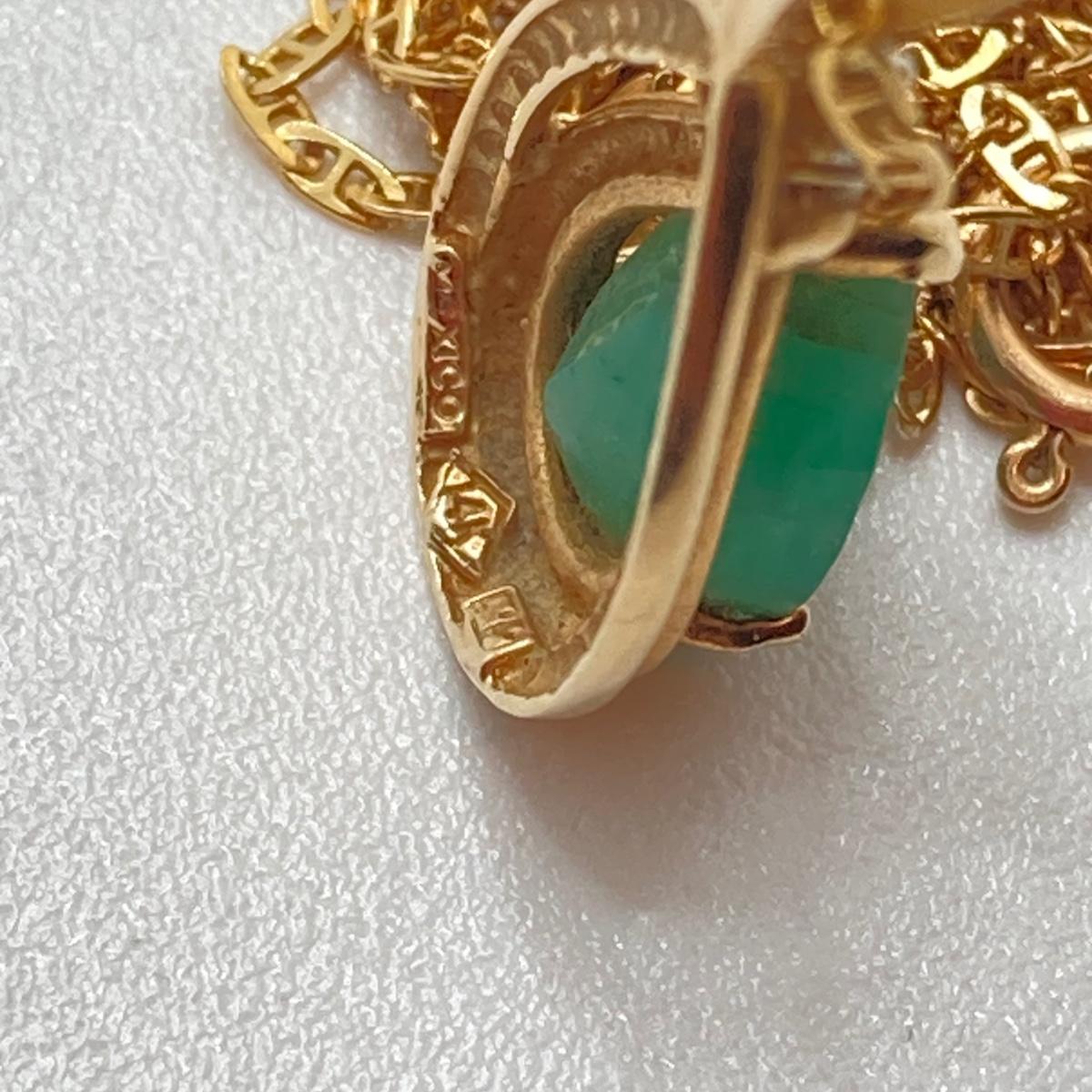 LOT 38: Gold Pendant Necklace with Green Gemstone - 14KT, 2.1 gtw, 17"