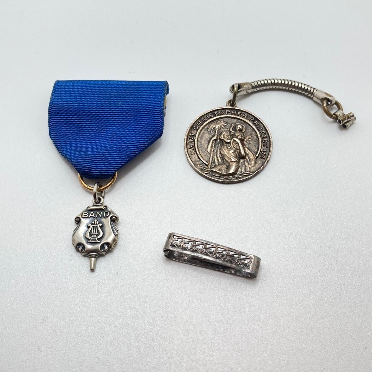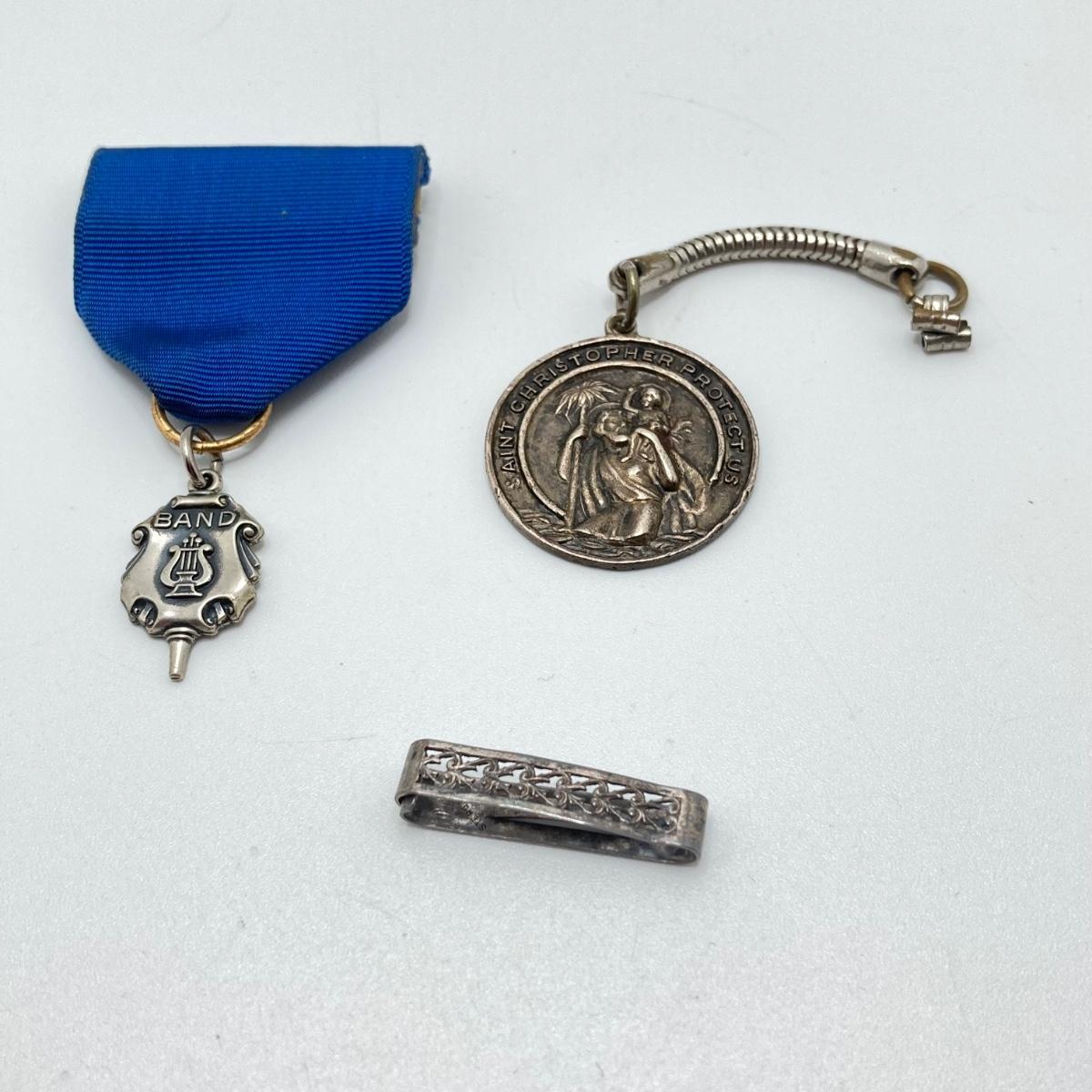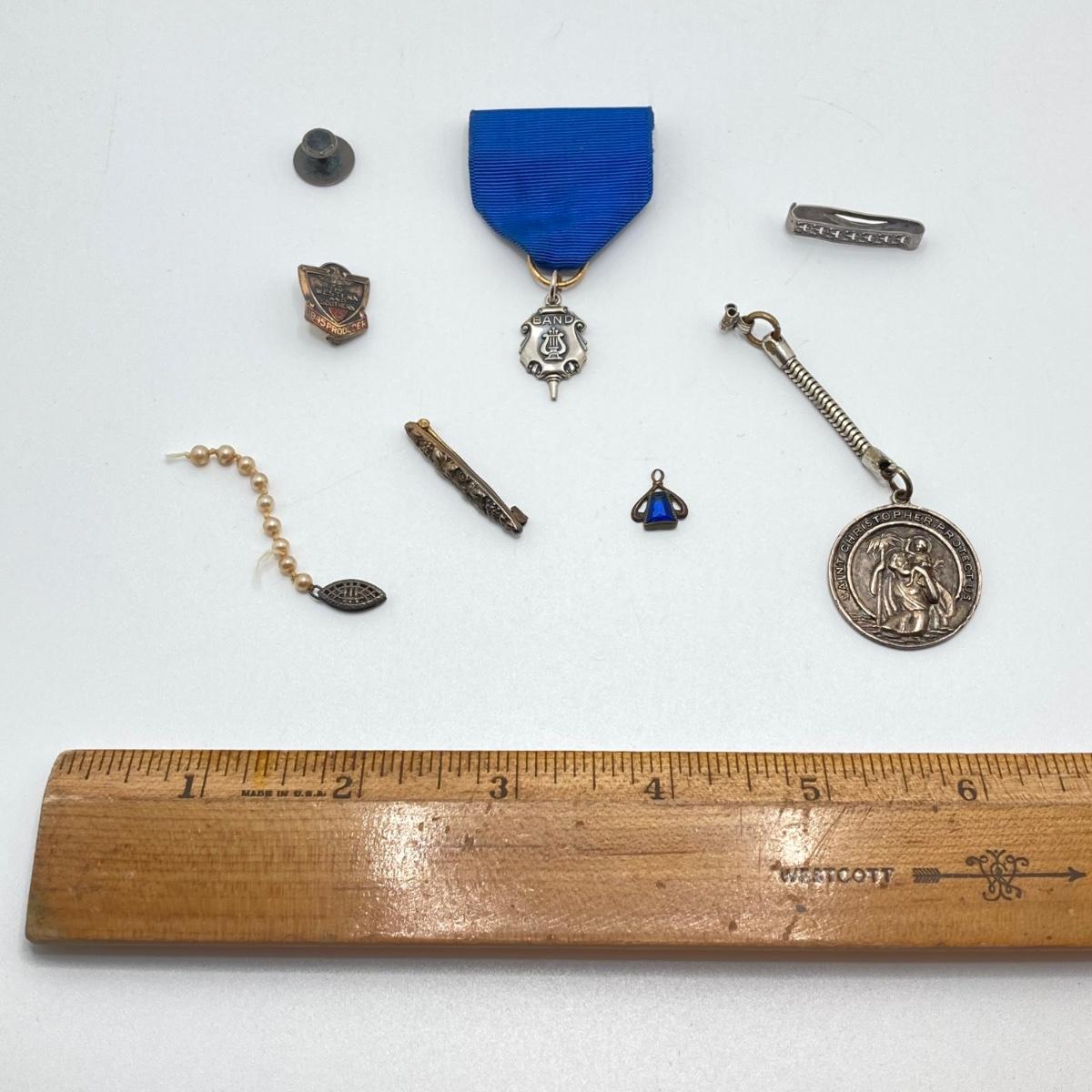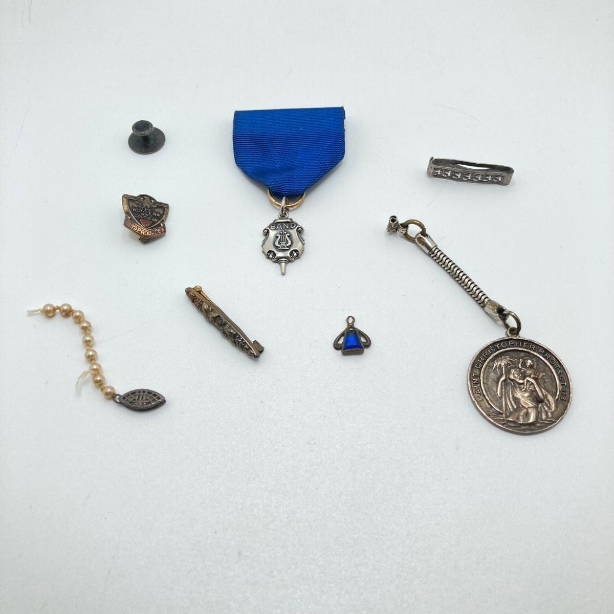 LOT 48: Vintage Sterling Pendant, Pins, Studs, Medal and More