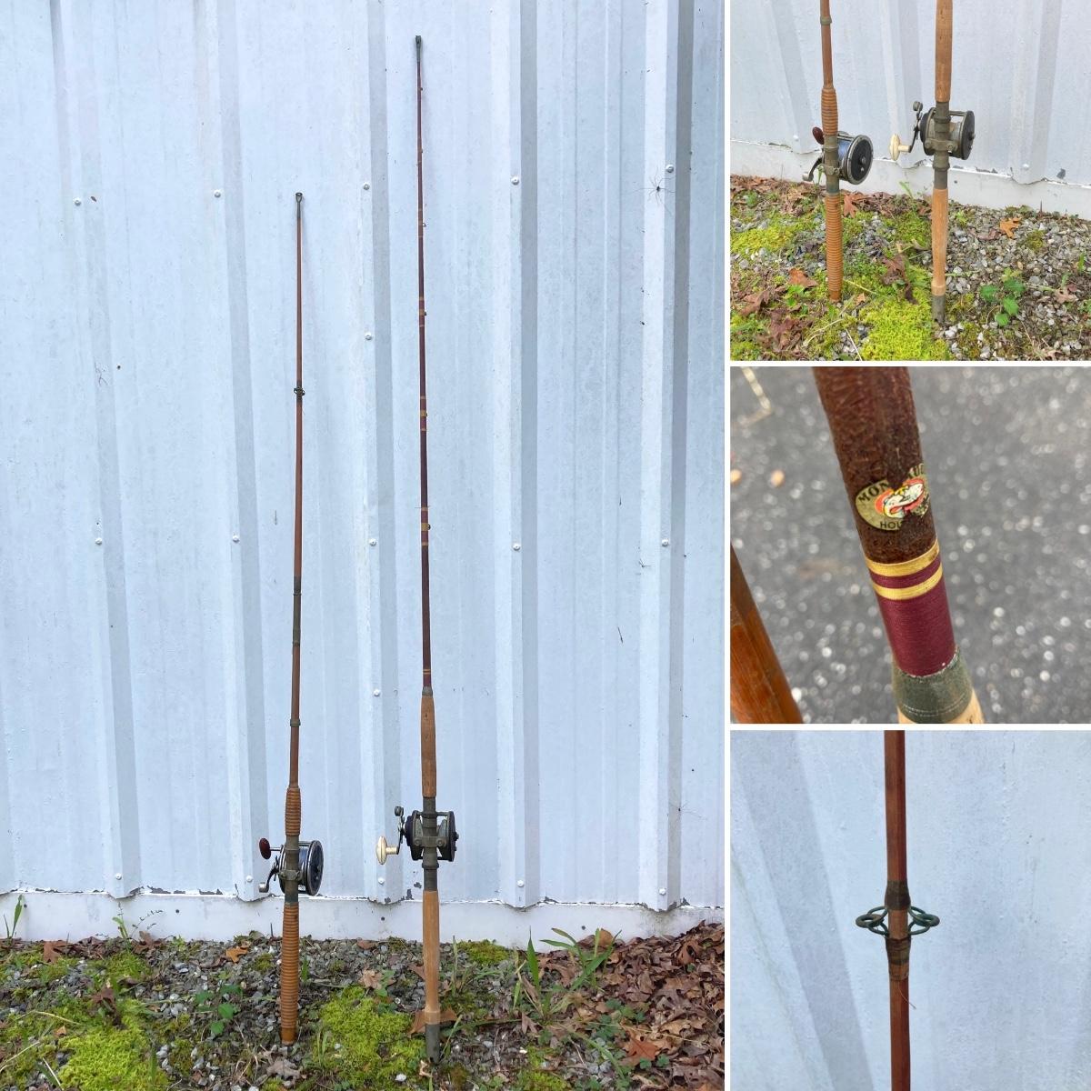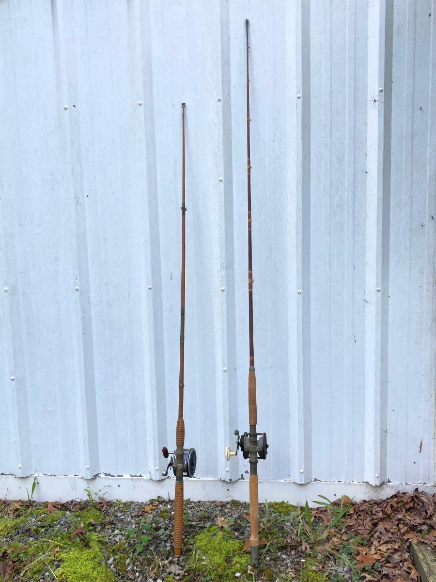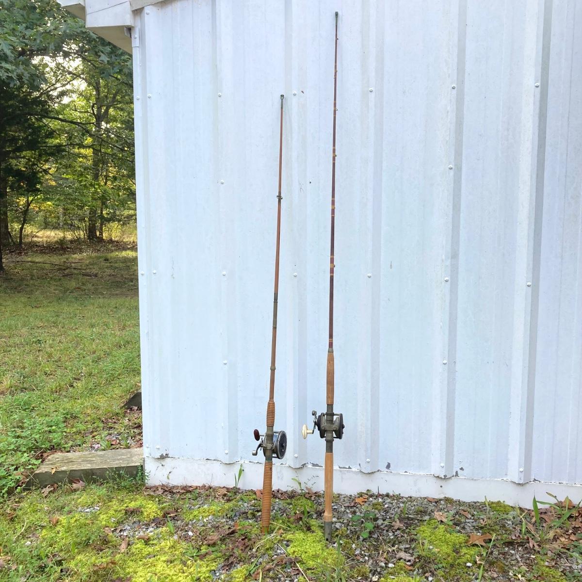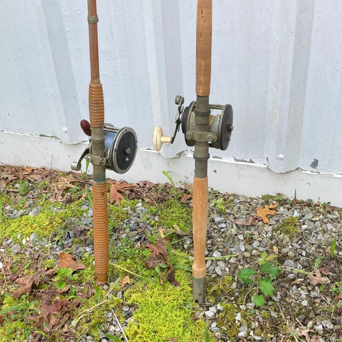 LOT 55: Vintage Wooden Fishing Rods with Reels - Montague and More