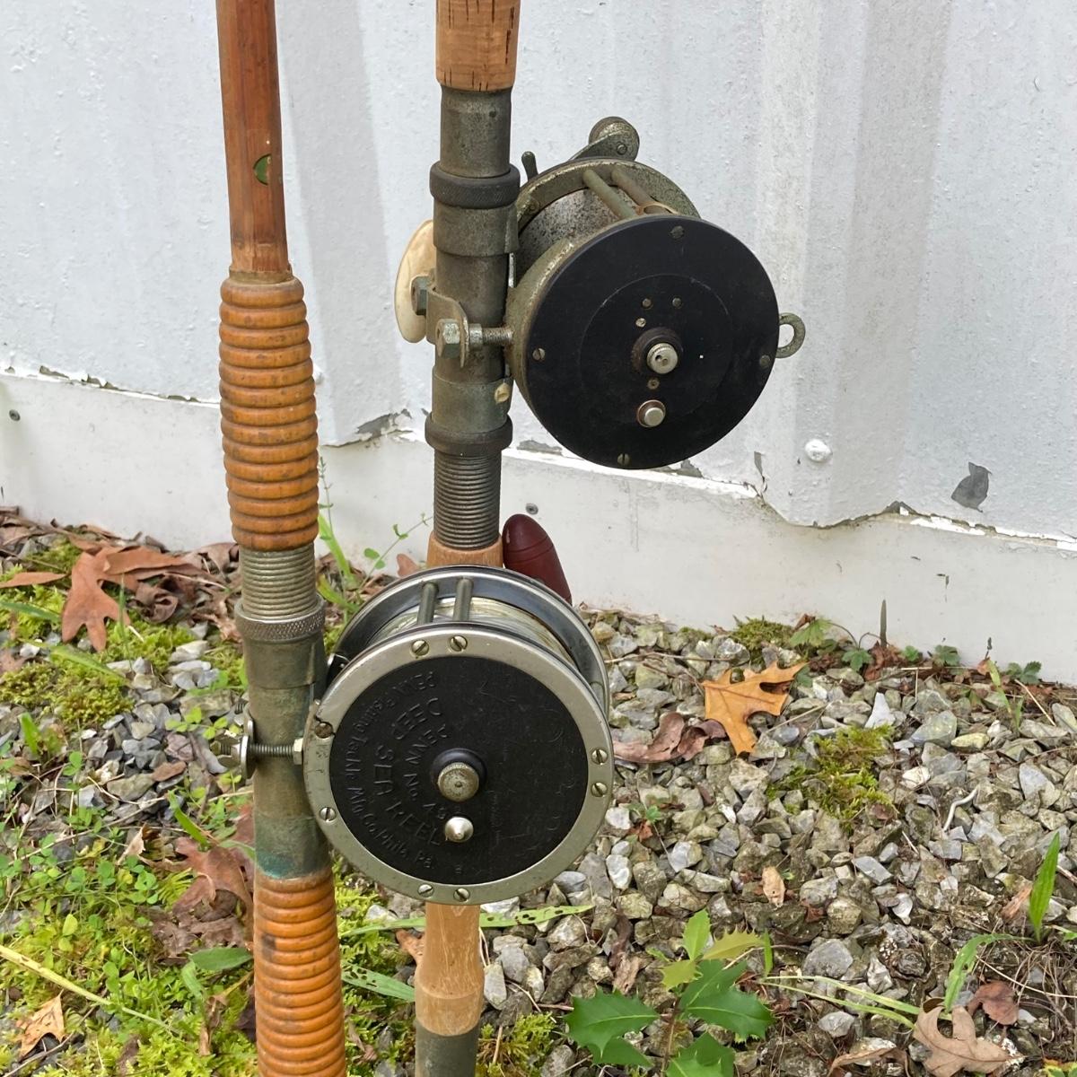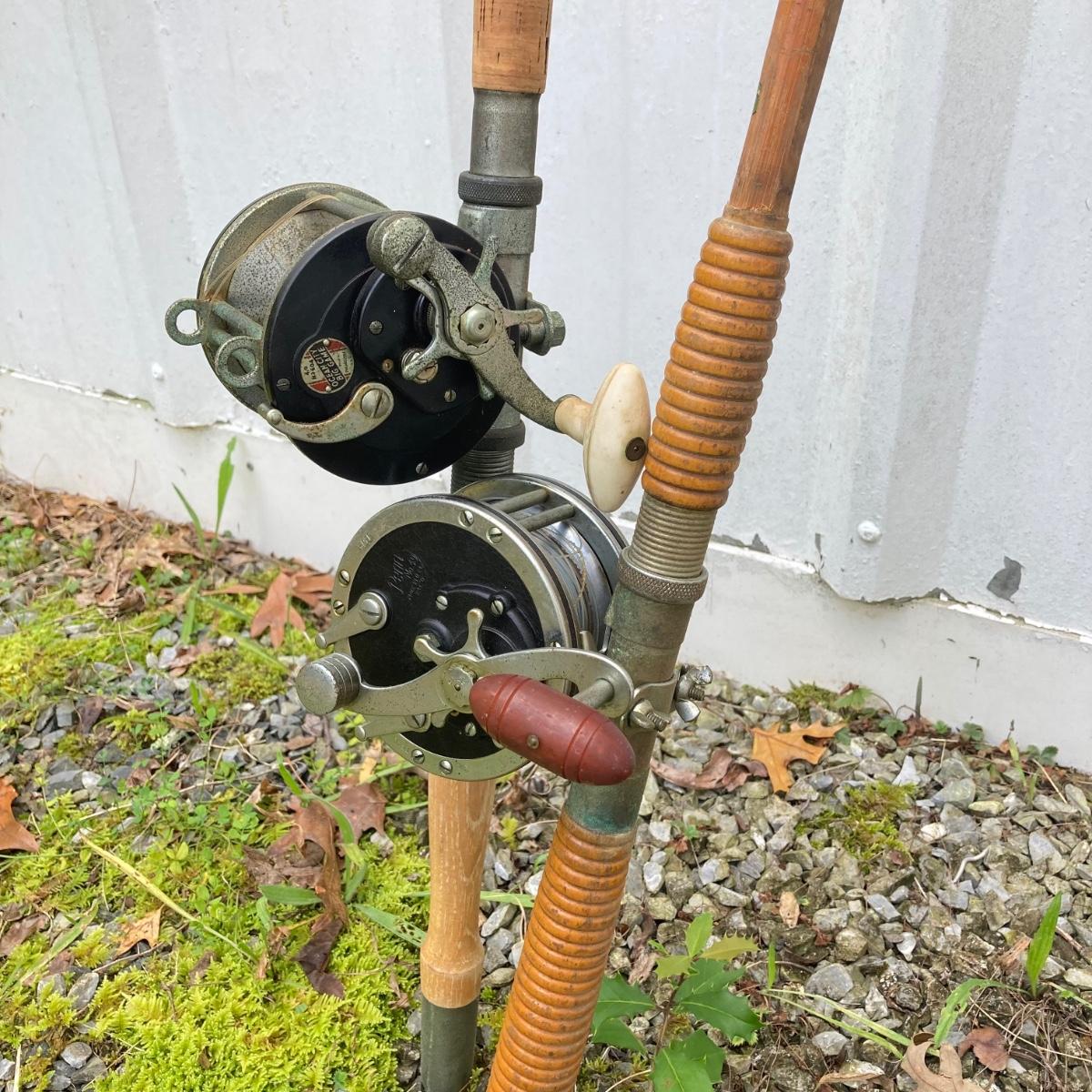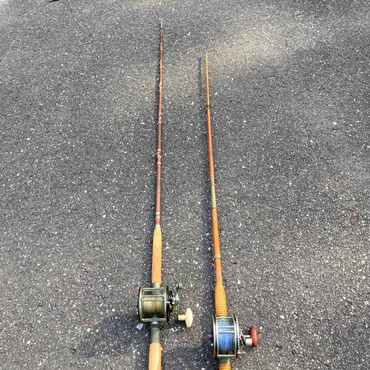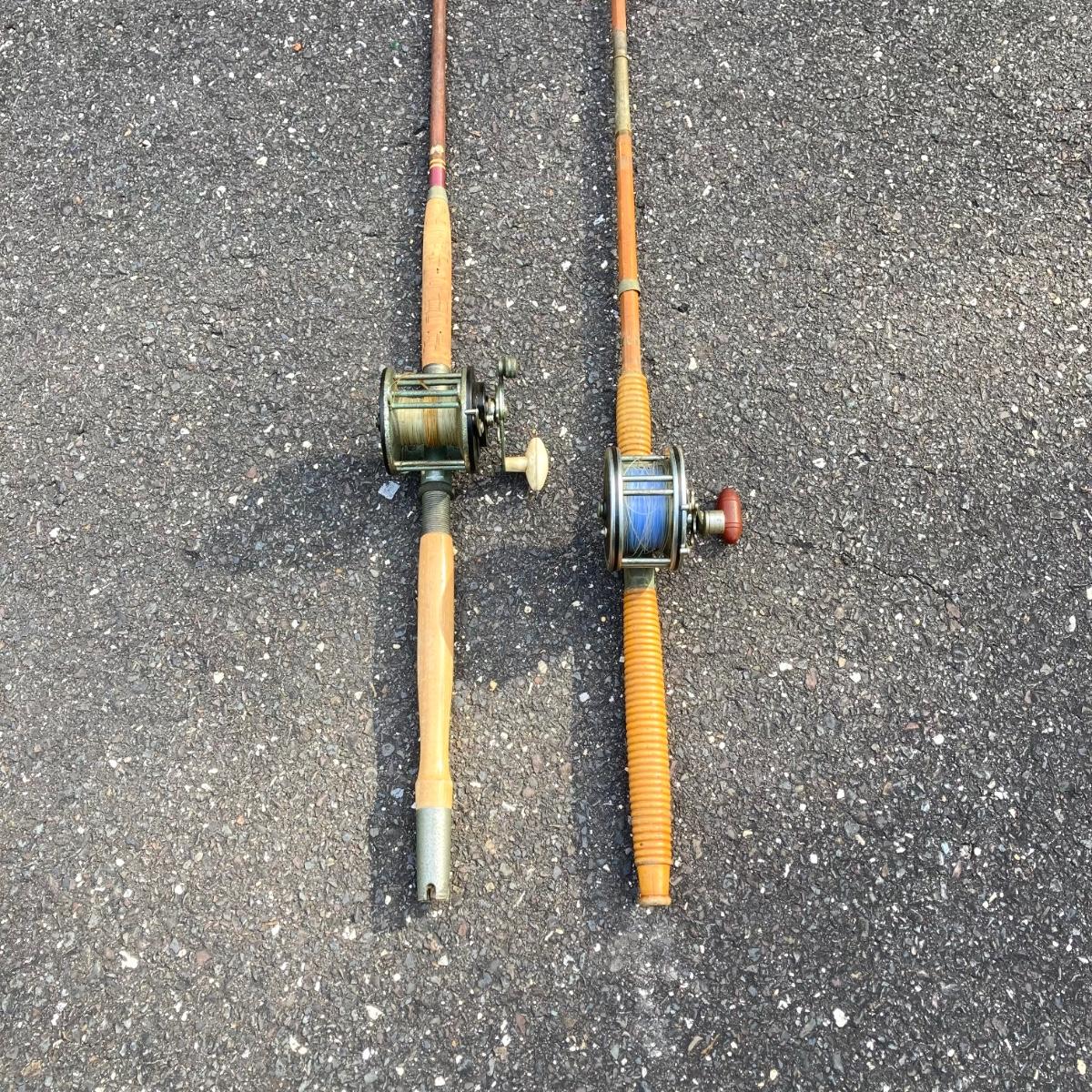 LOT 55: Vintage Wooden Fishing Rods with Reels - Montague and More