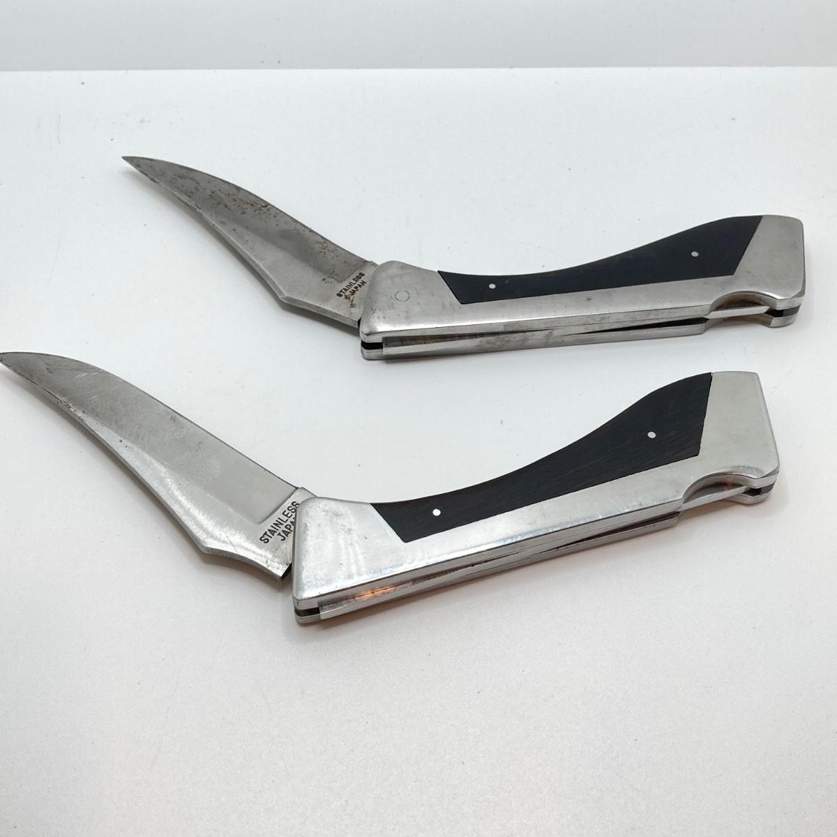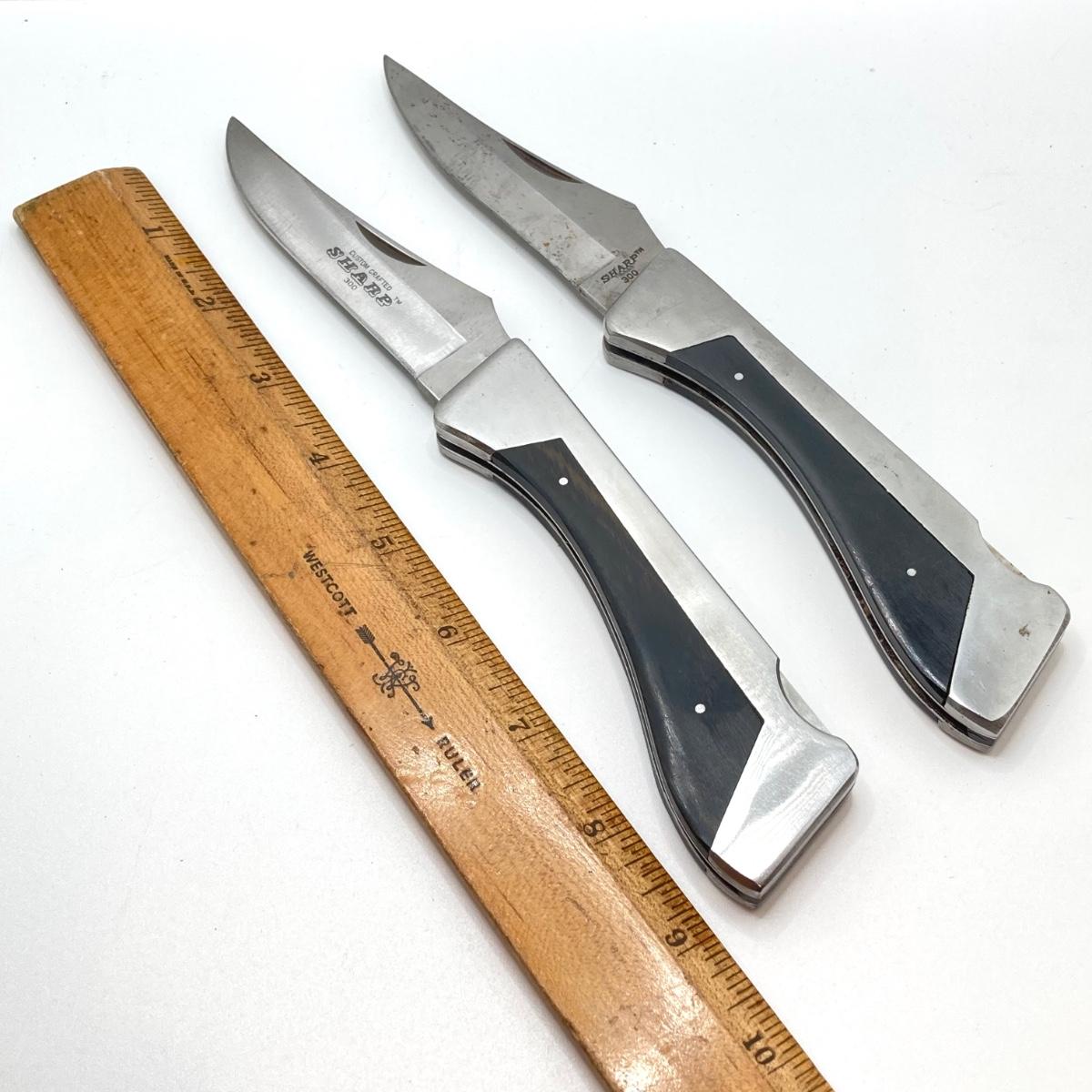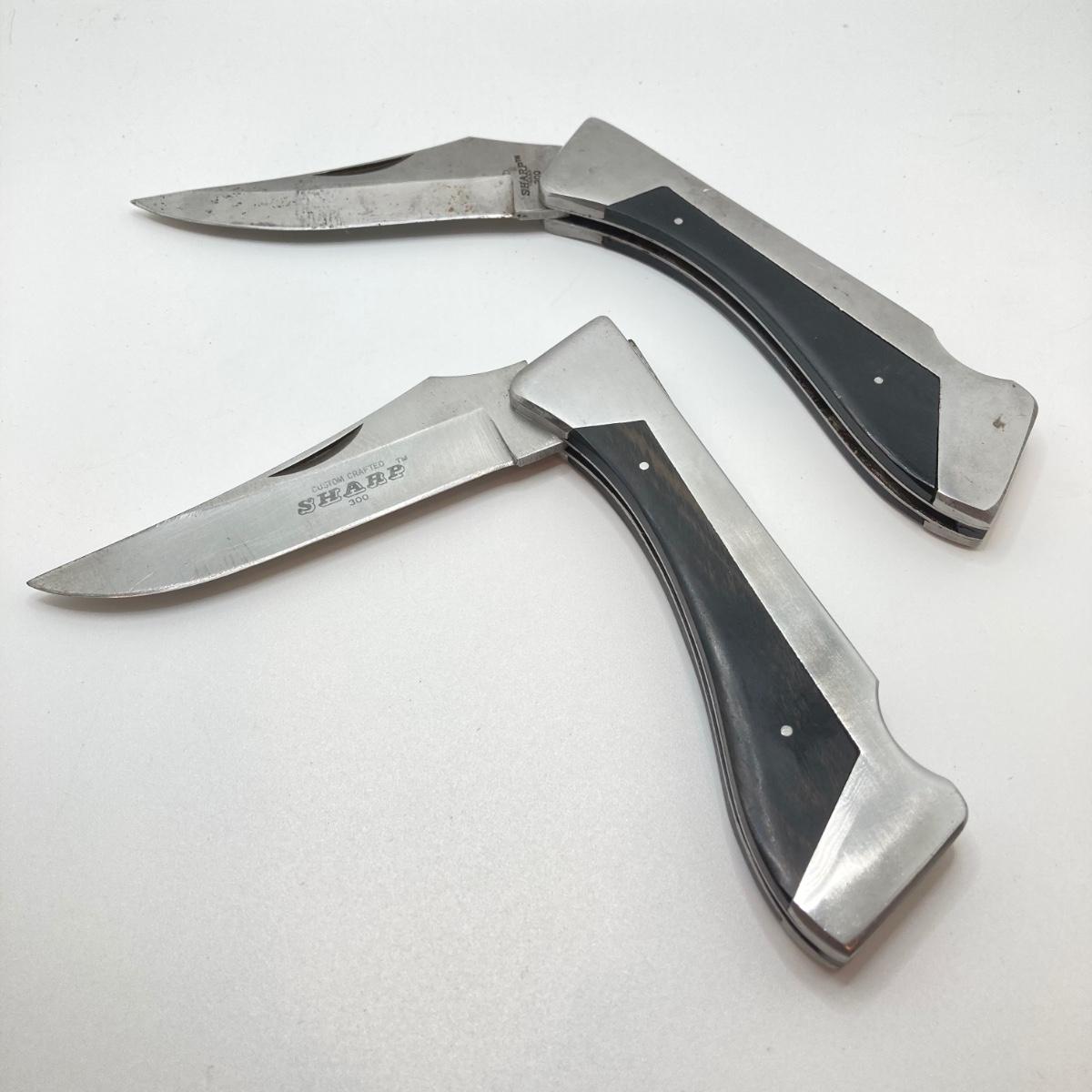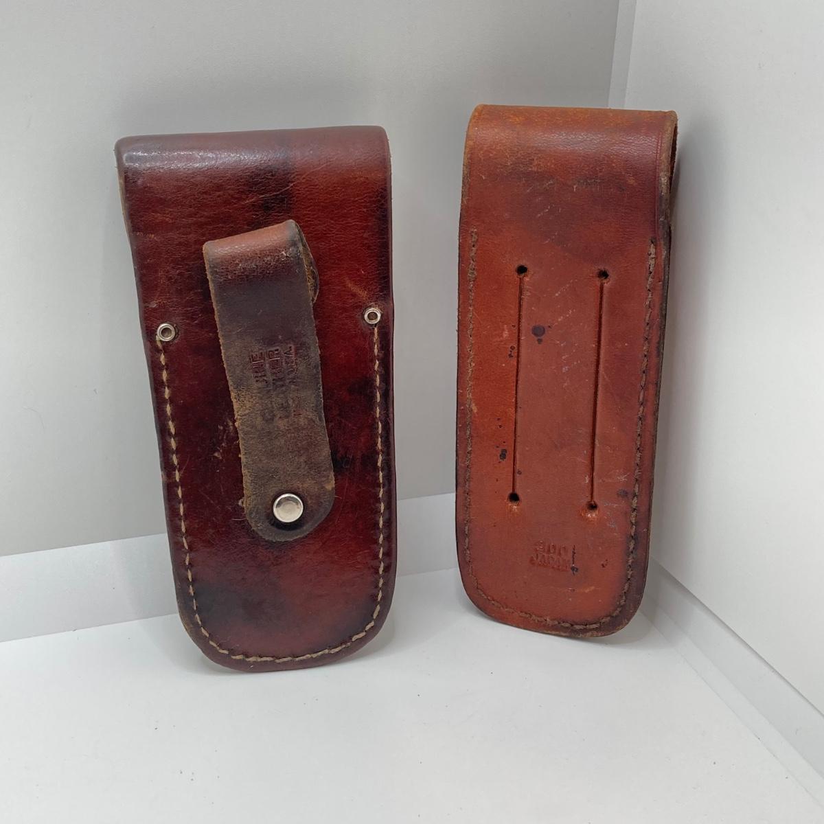 LOT 73: Pair of Sharp 300 Folding Knives with Leather Sheaths
