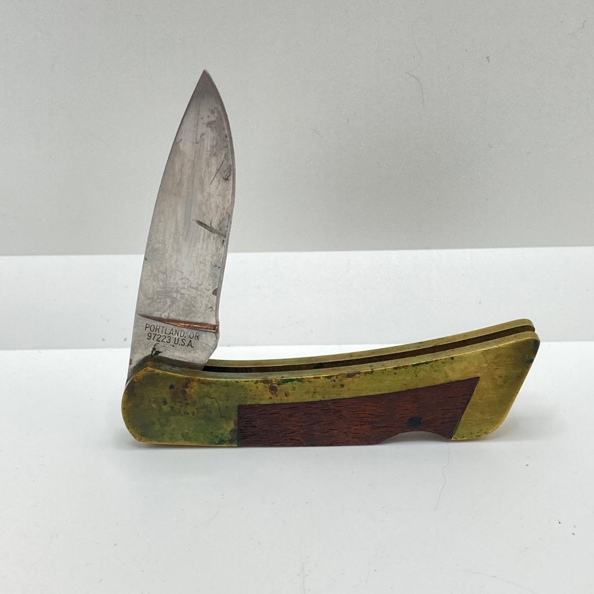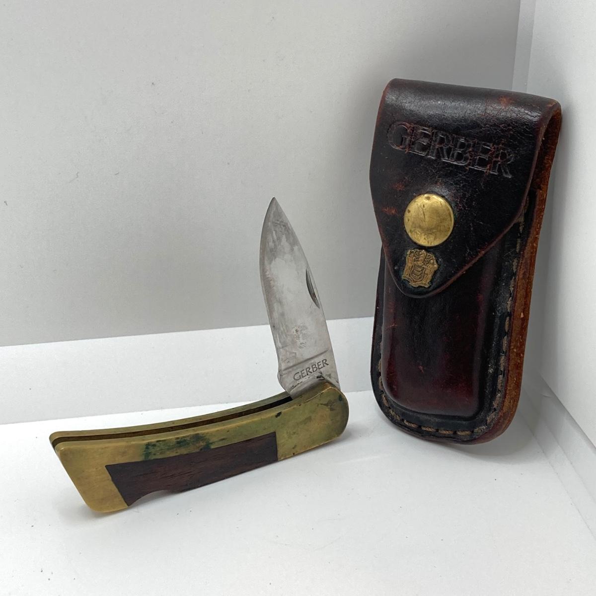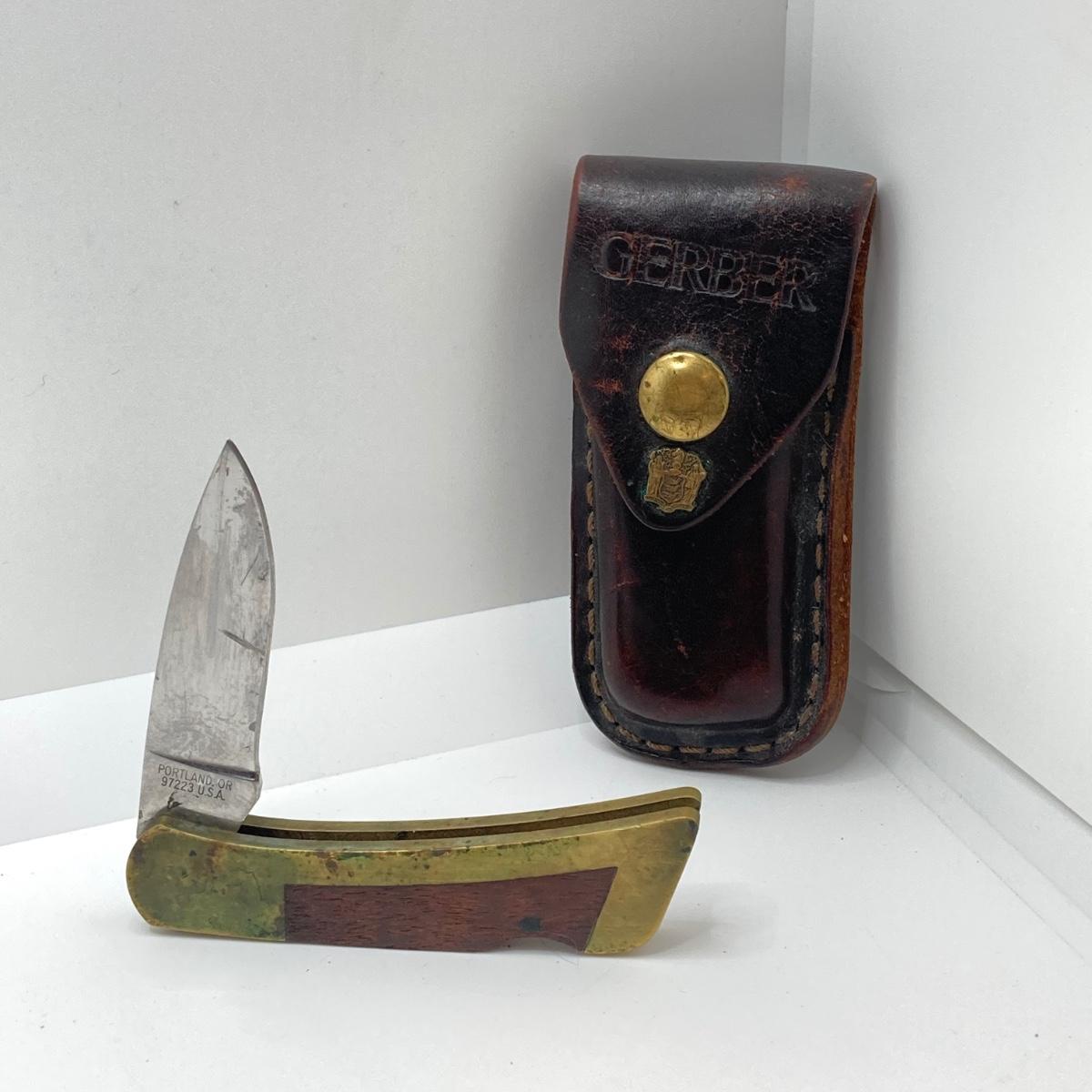 LOT 74: Vintage Gerber Portland, OR 97223 USA Folding Knife with Leather Sheath