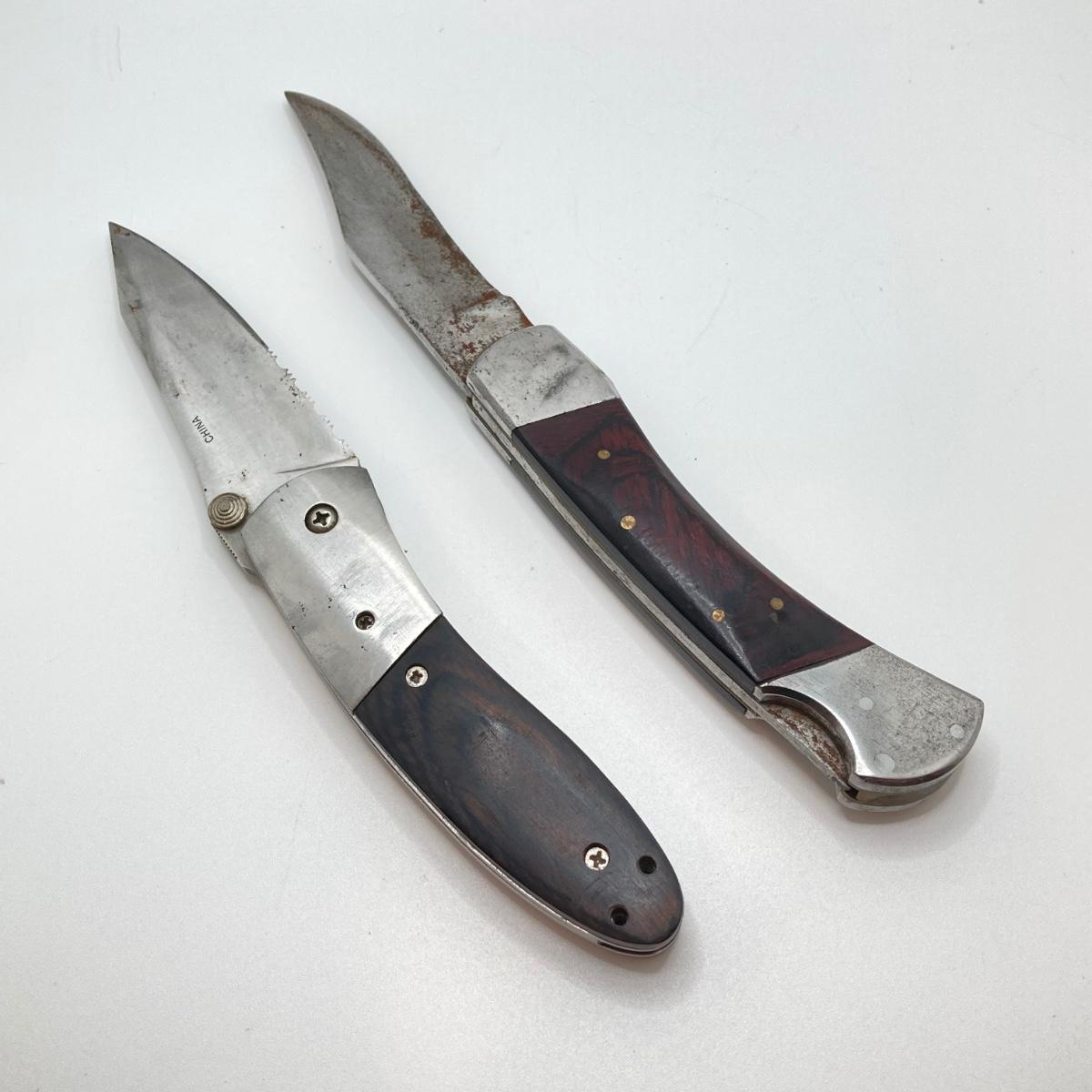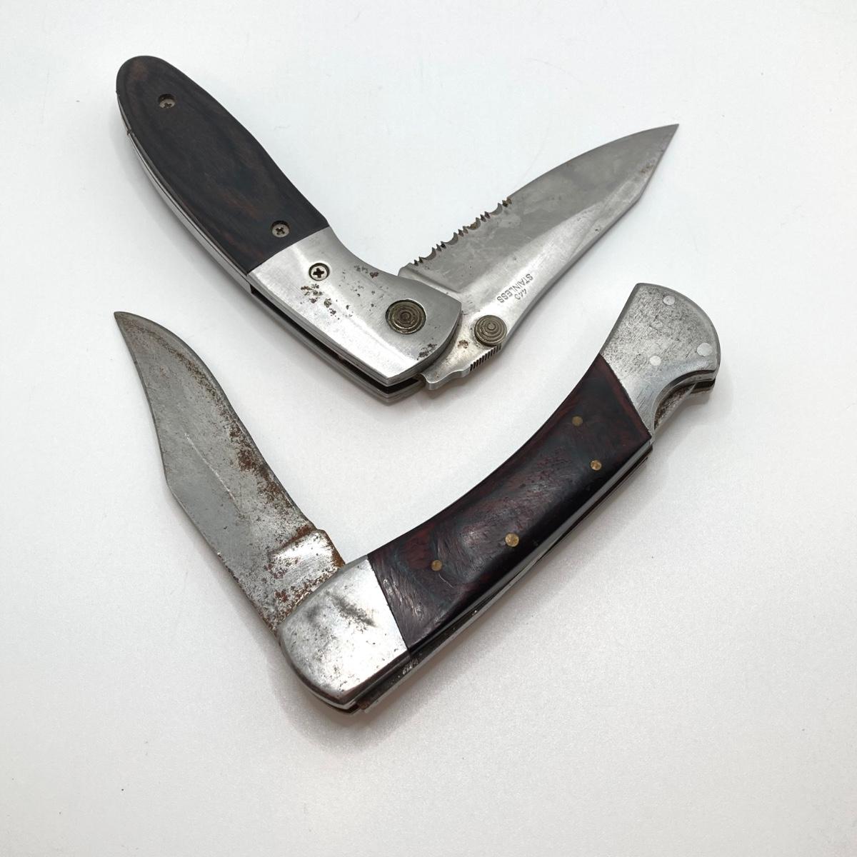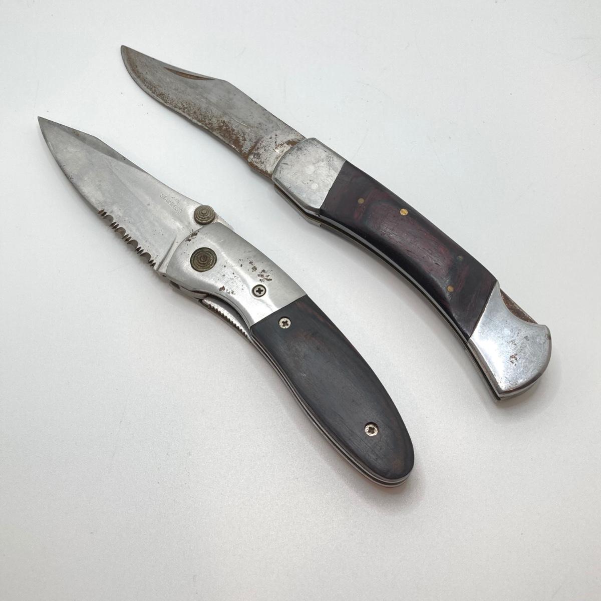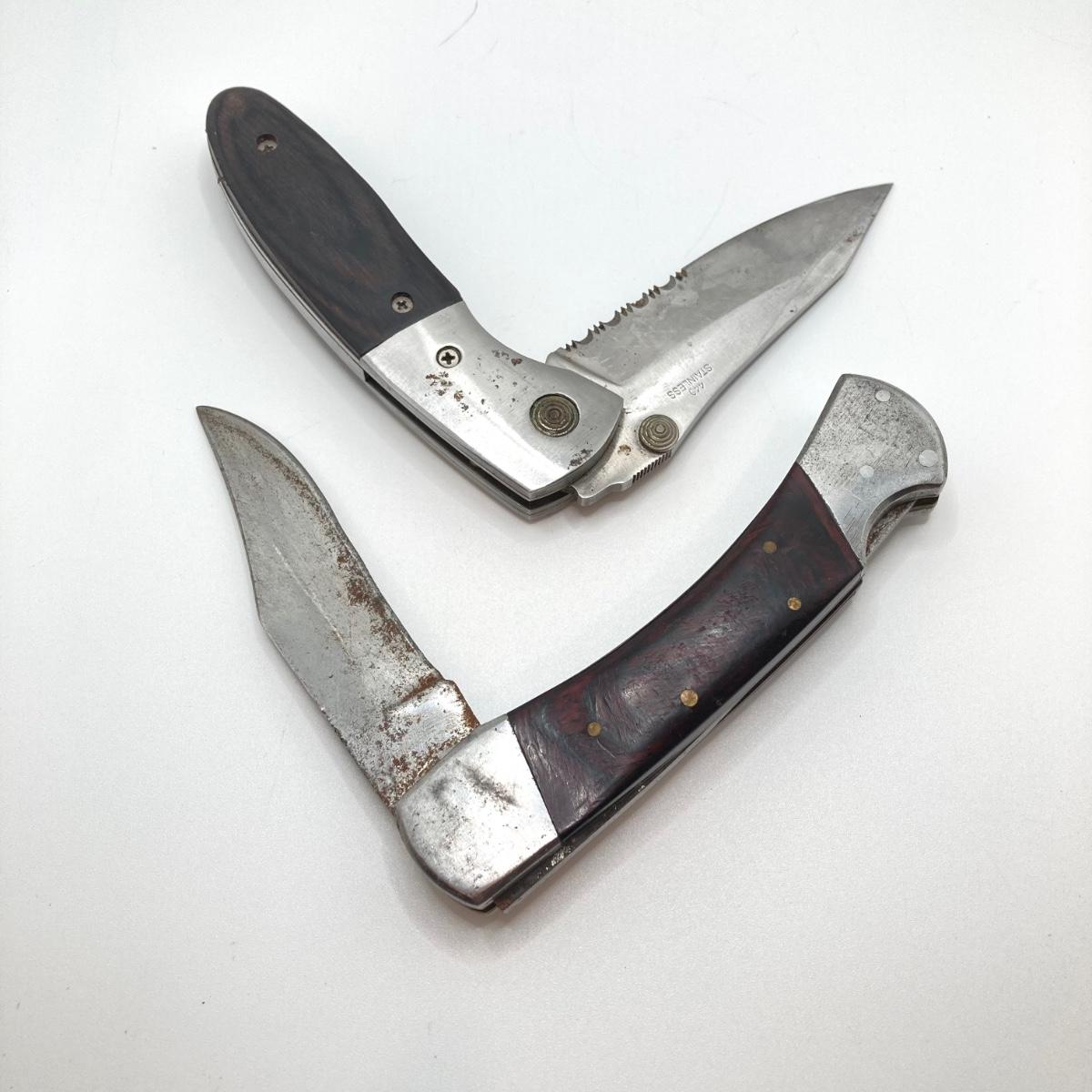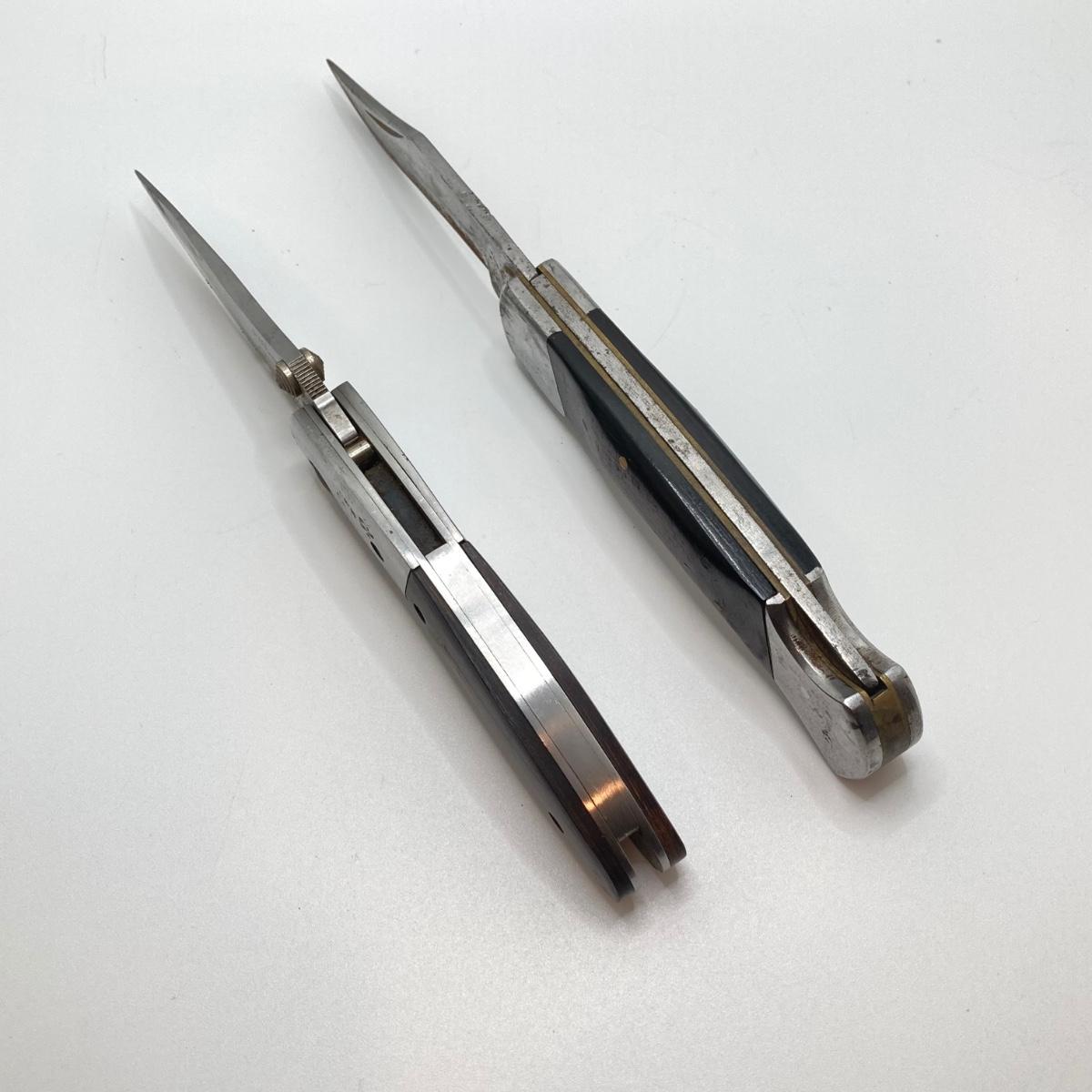 LOT 76: Pair of Folding Knives with Leather Sheaths