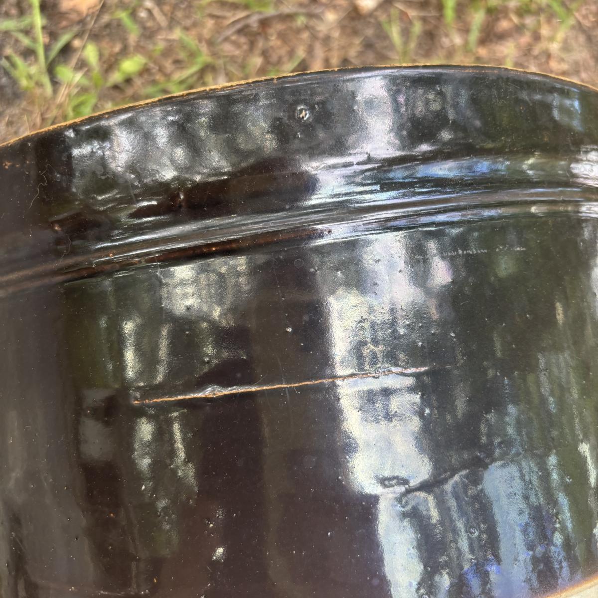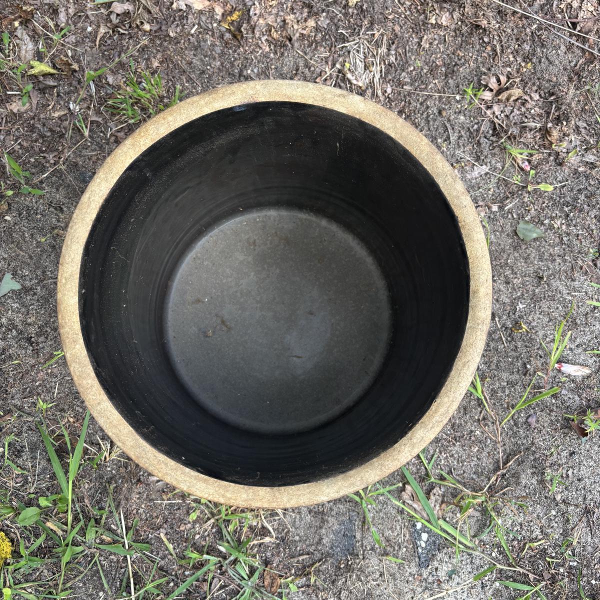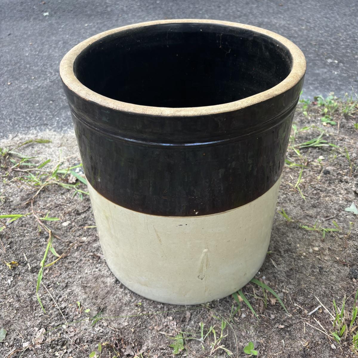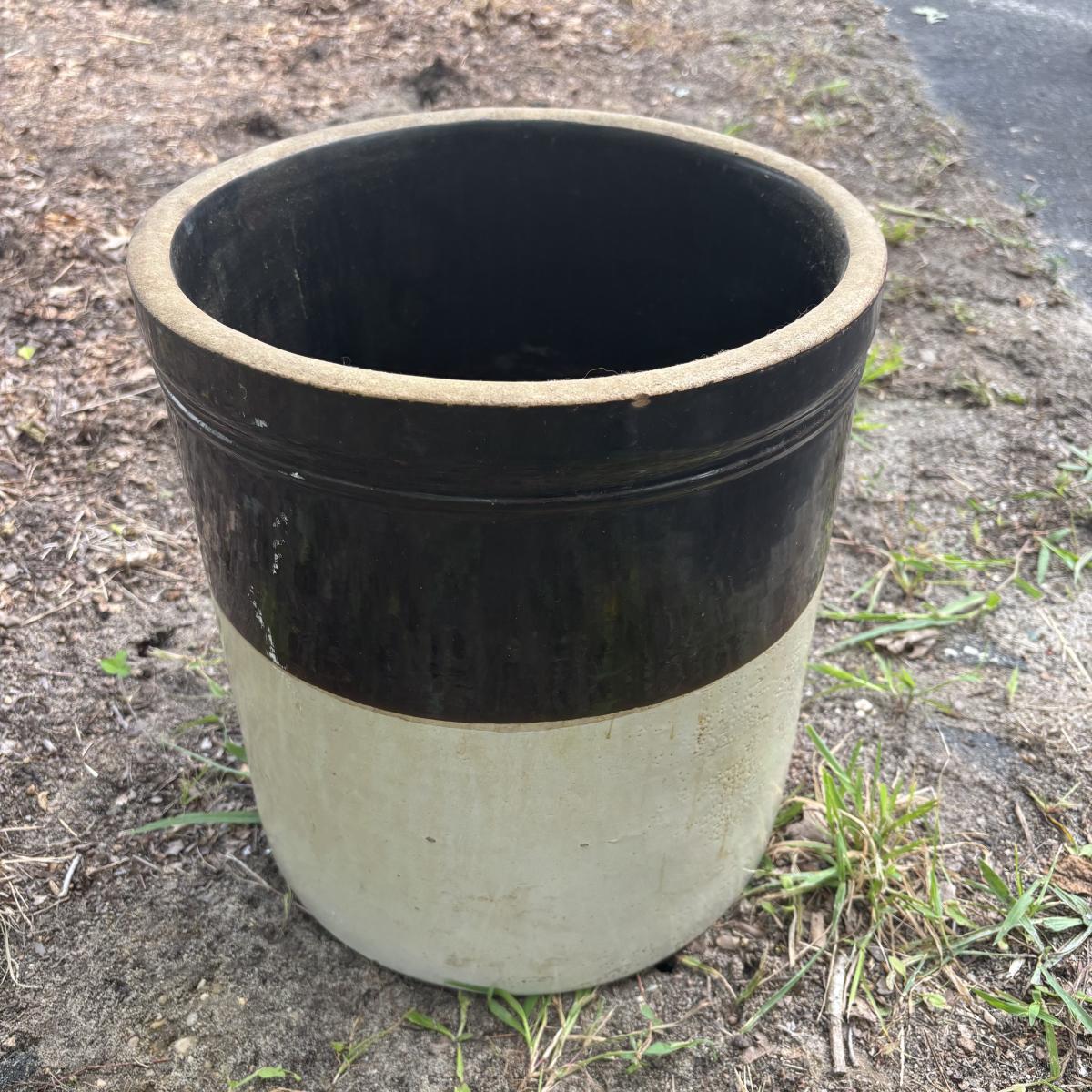 LOT 85: Vintage Two-Tone Robinson Ransbottom 6 Gallon Blue Crown Stoneware Crock USA