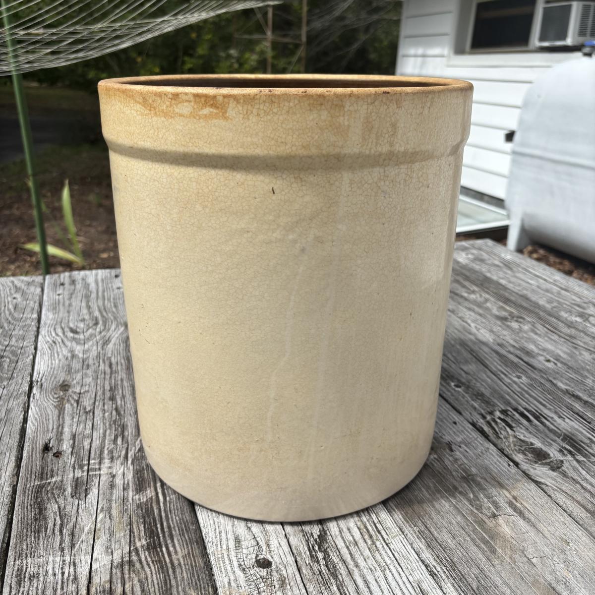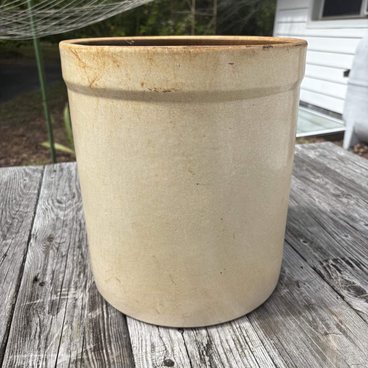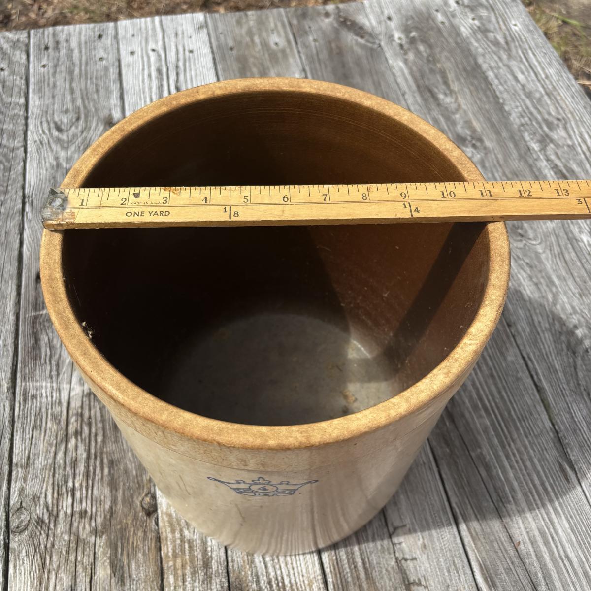 LOT 86: Vintage Robinson Ransbottom 4 Gallon Blue Crown Stoneware Crock USA