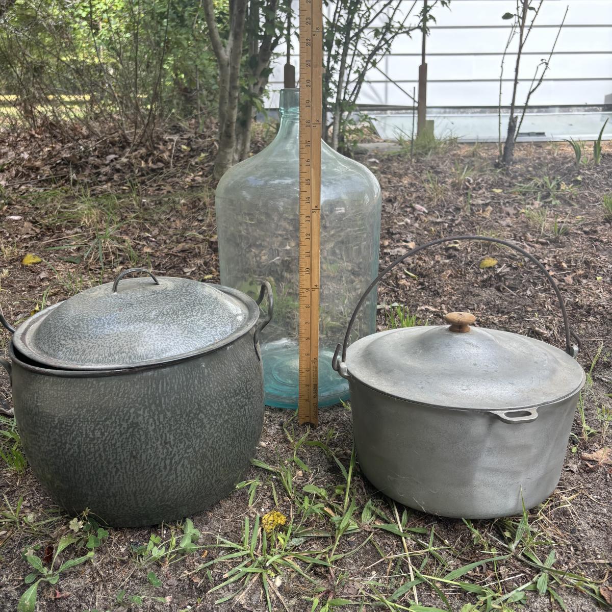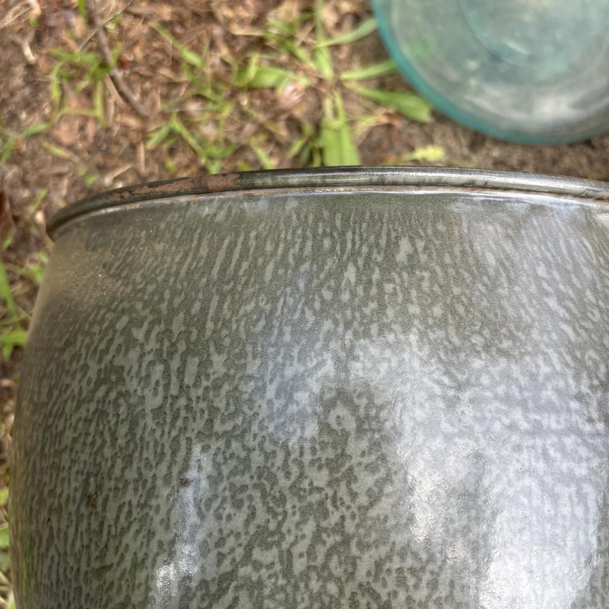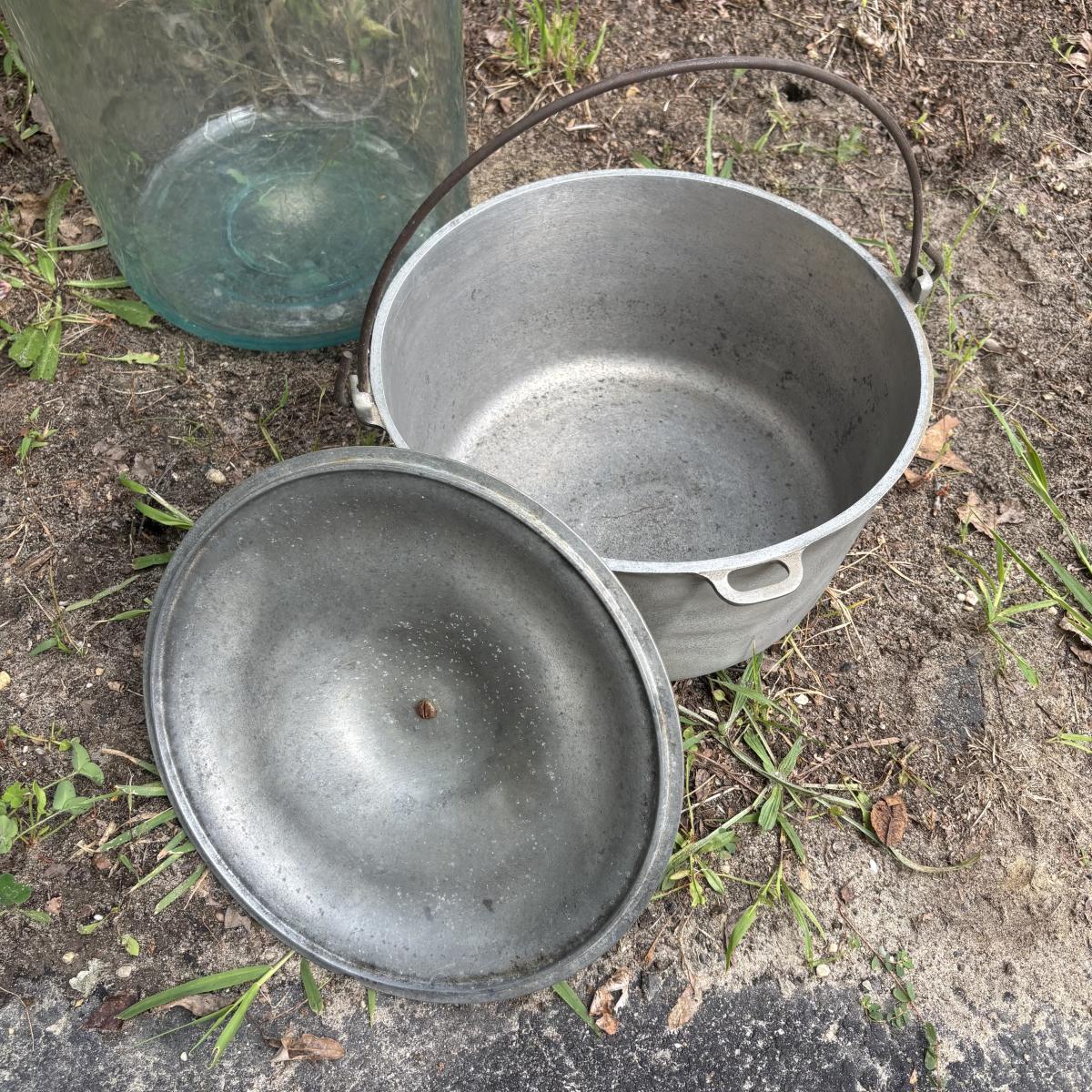 LOT 88: Vintage Enamelware, Glass Water Jug & Aluminum Pot