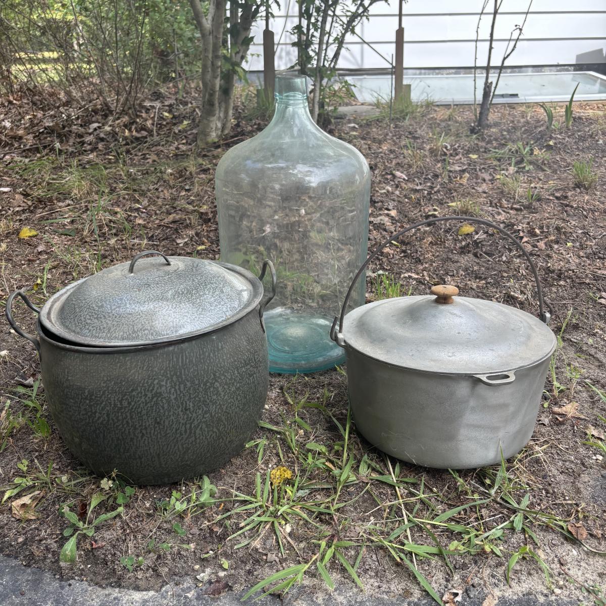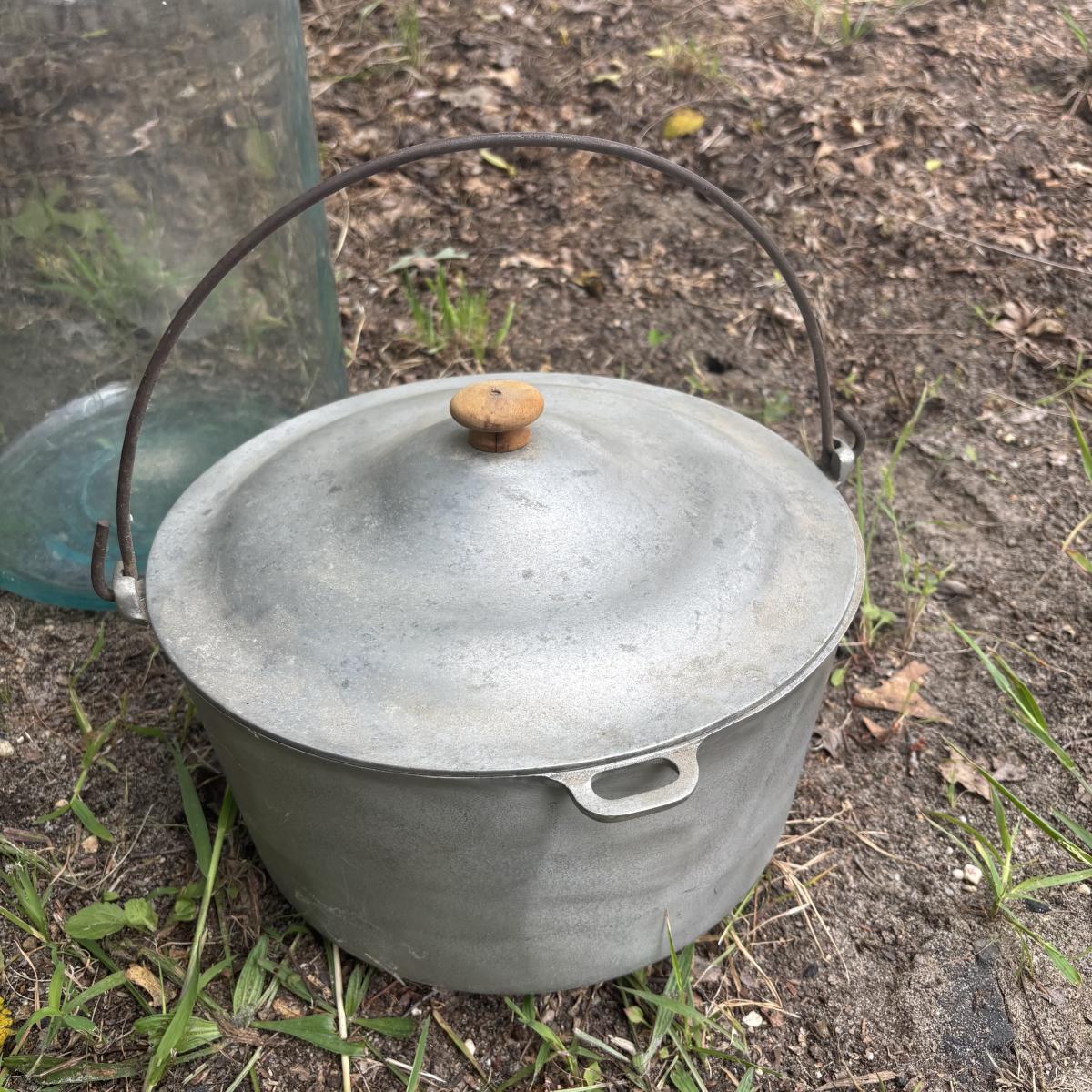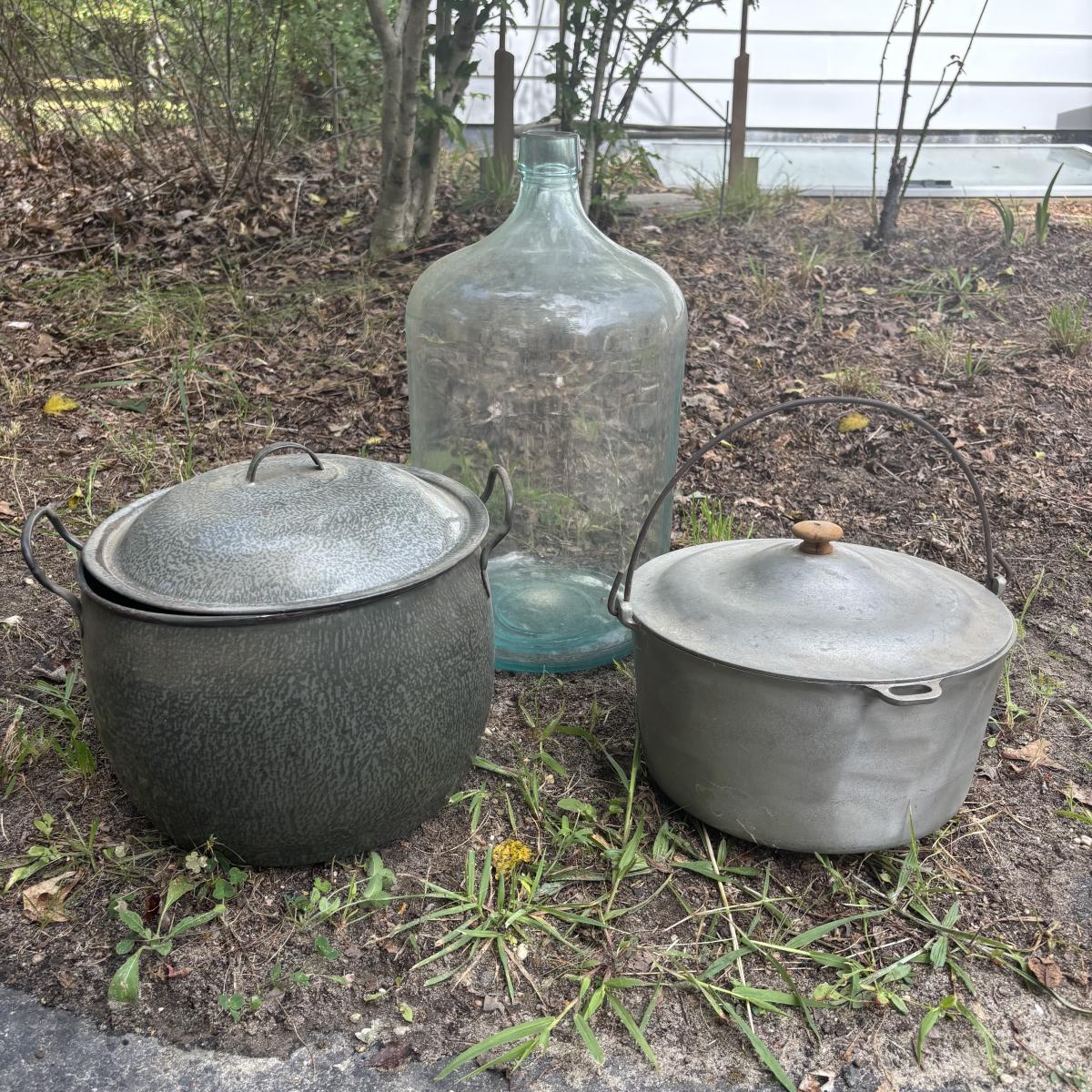 LOT 88: Vintage Enamelware, Glass Water Jug & Aluminum Pot