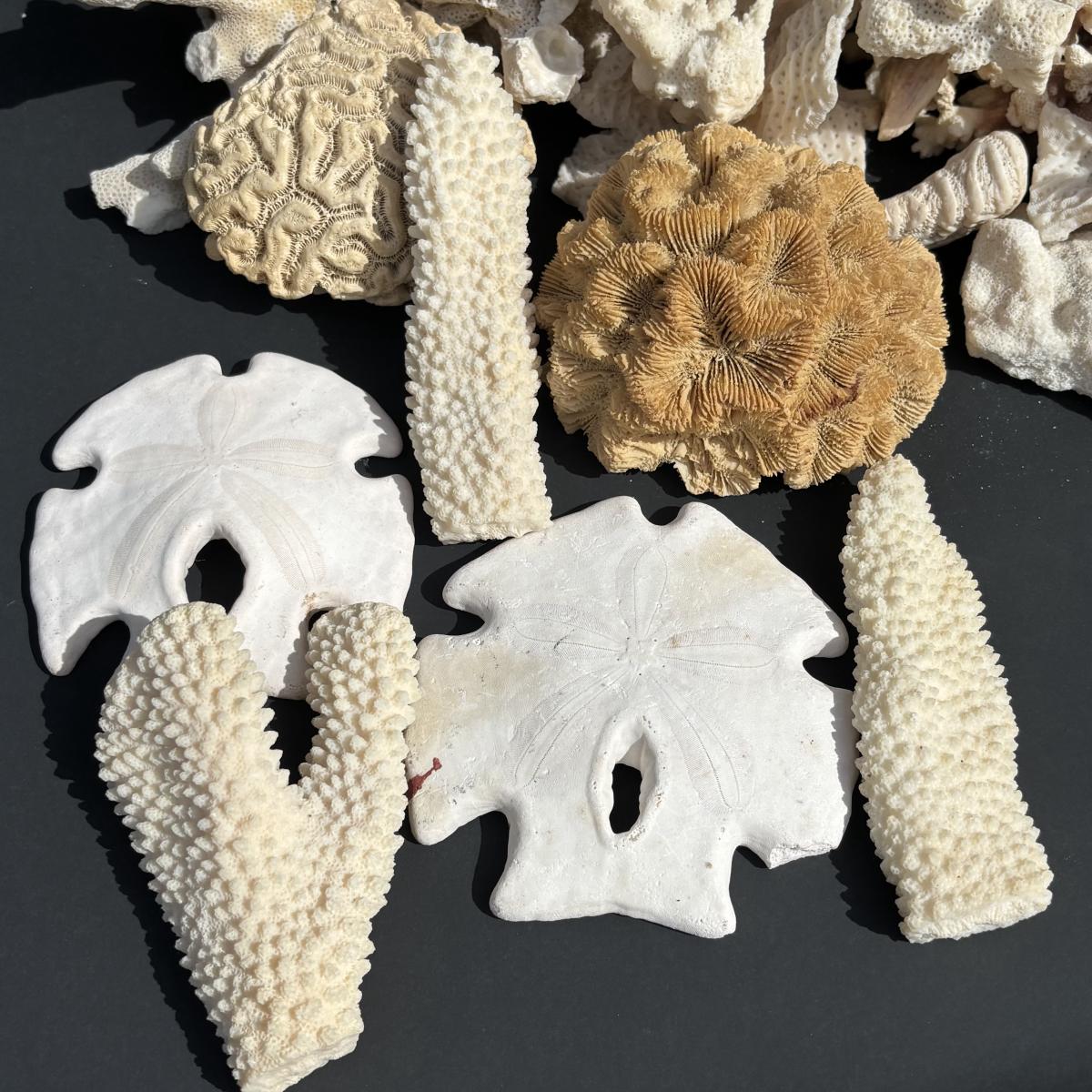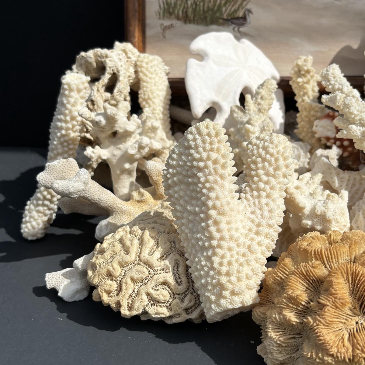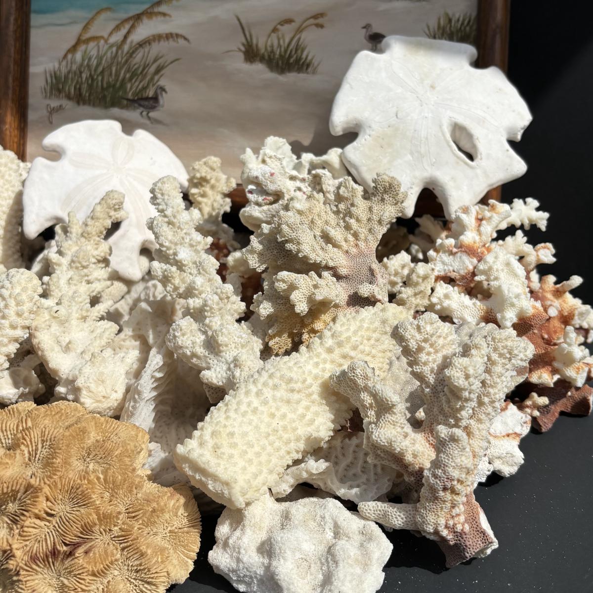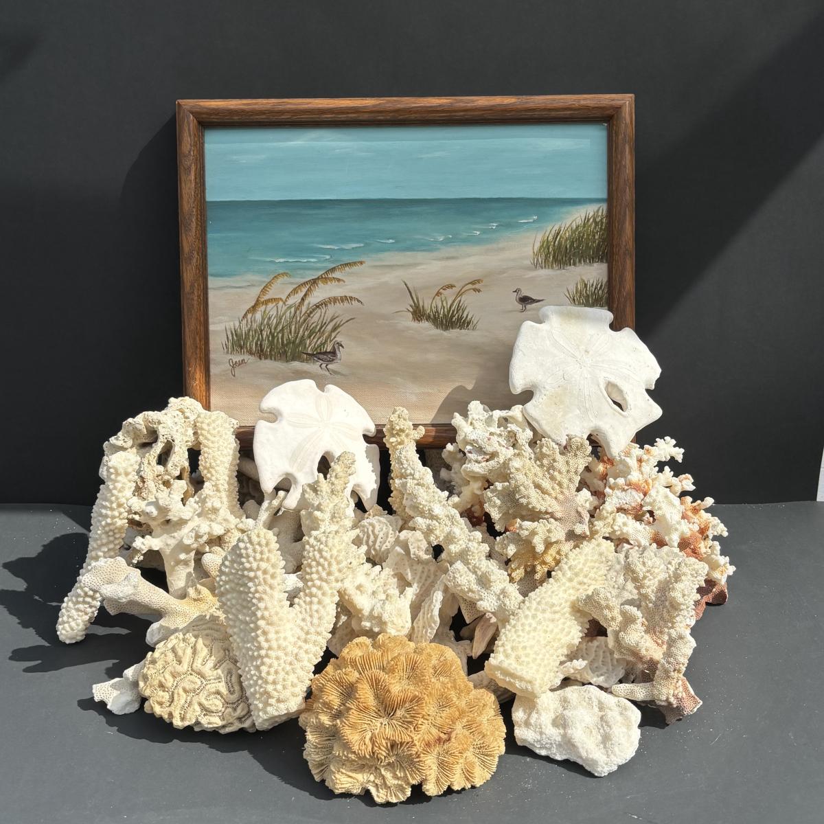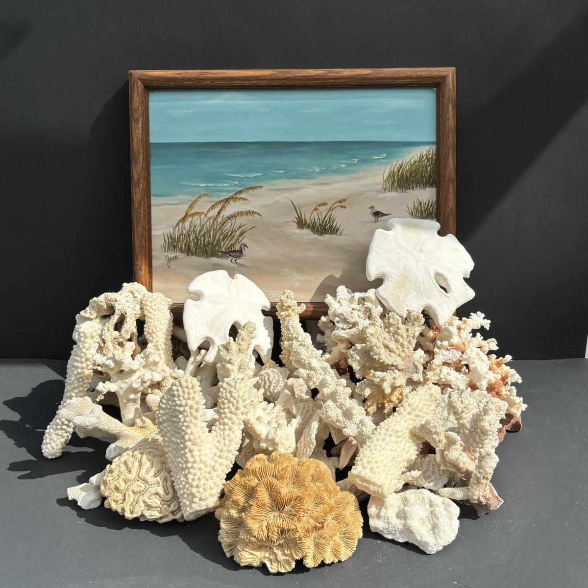 LOT 89: Seaside Collection of Corals & Sand Dollars along with a Signed Painting