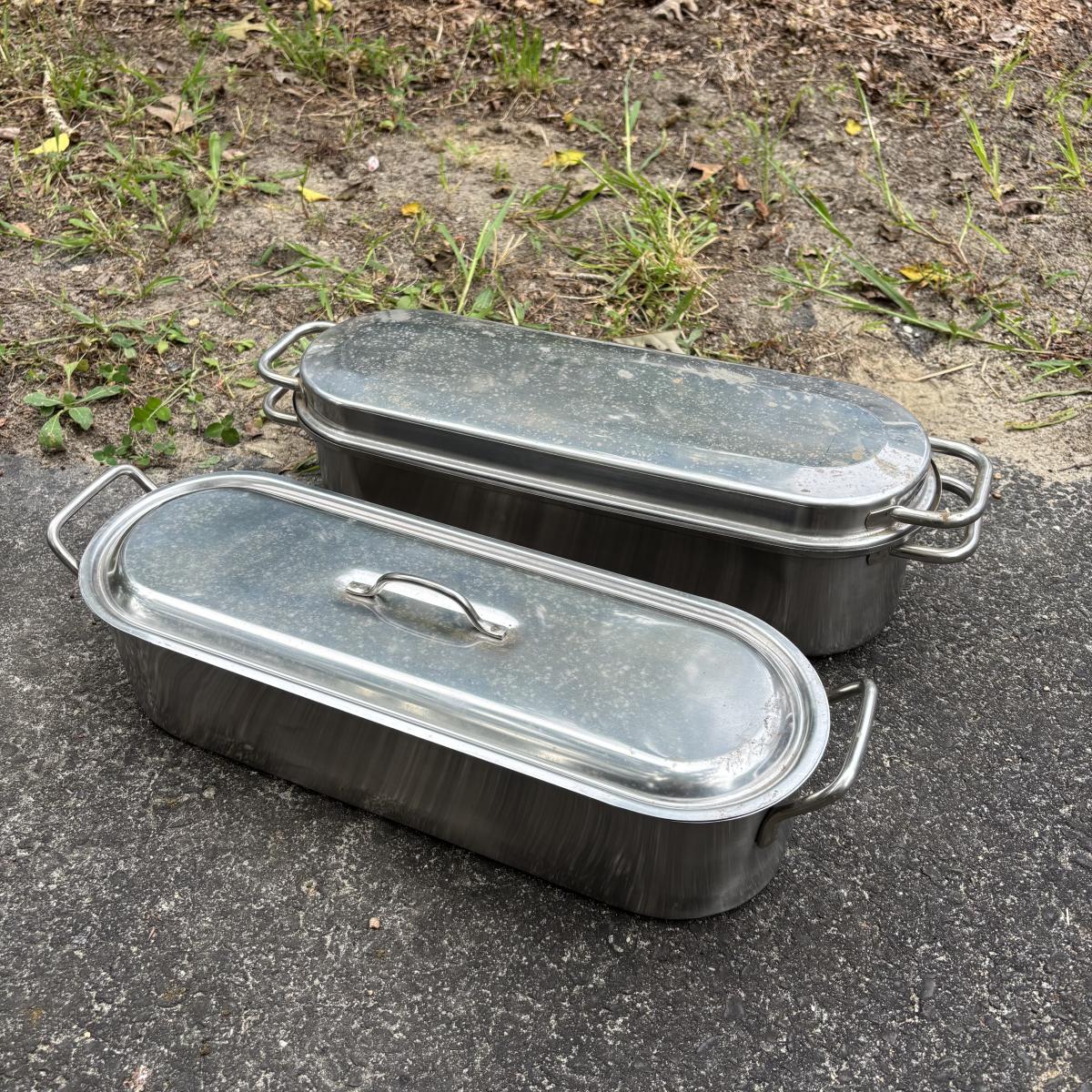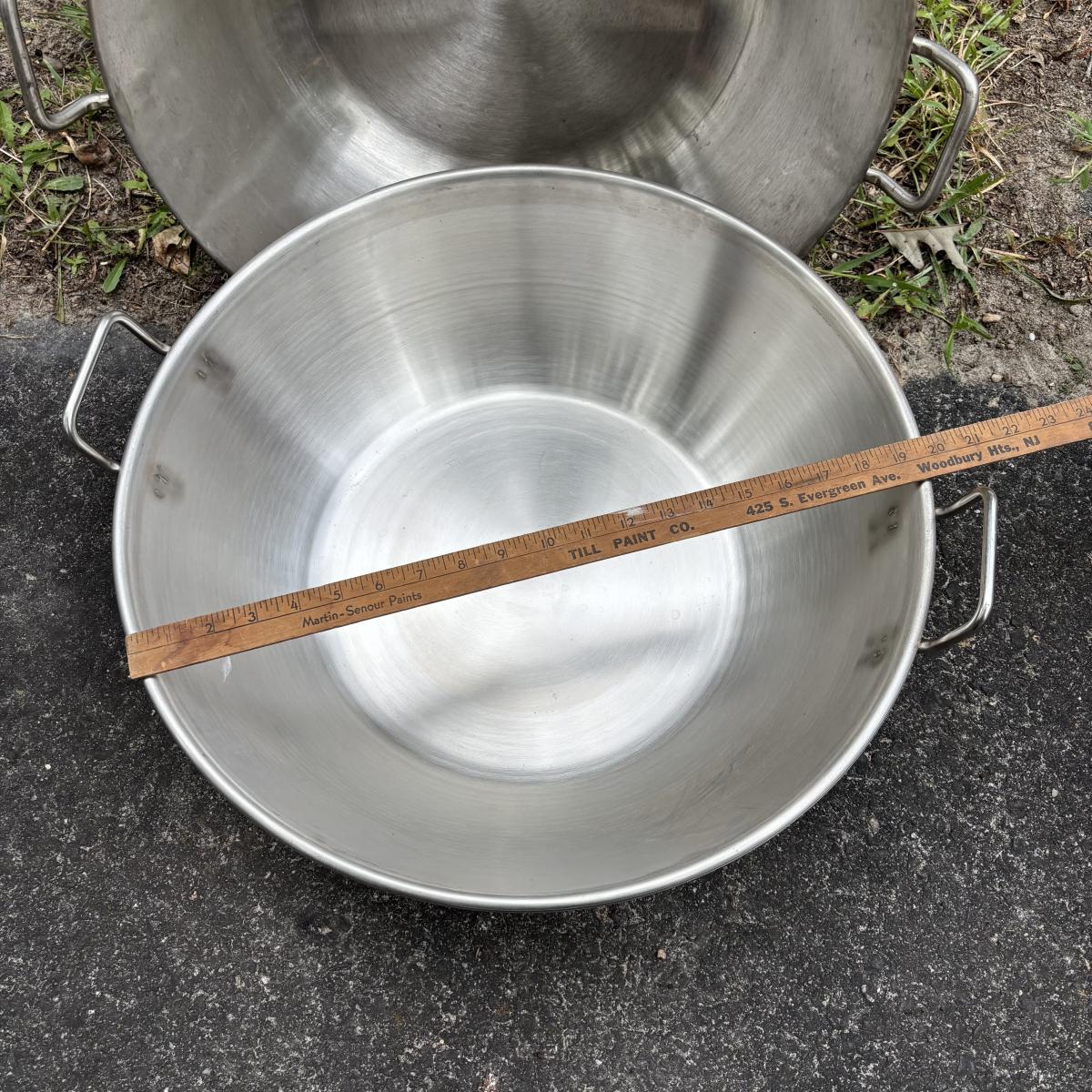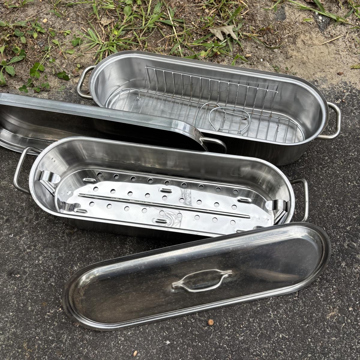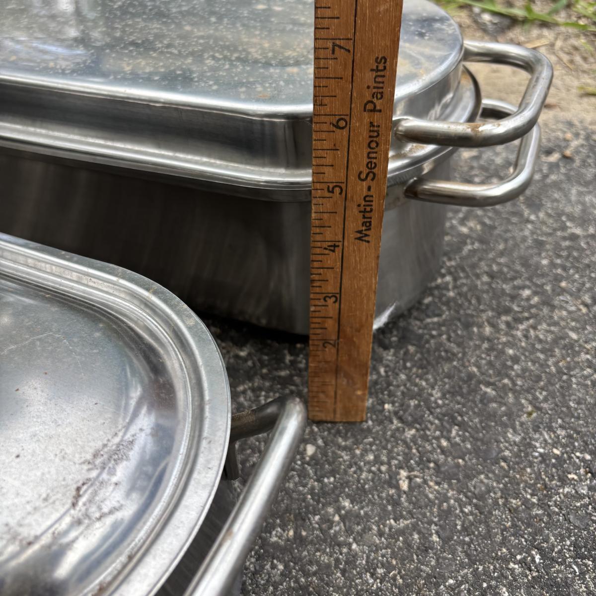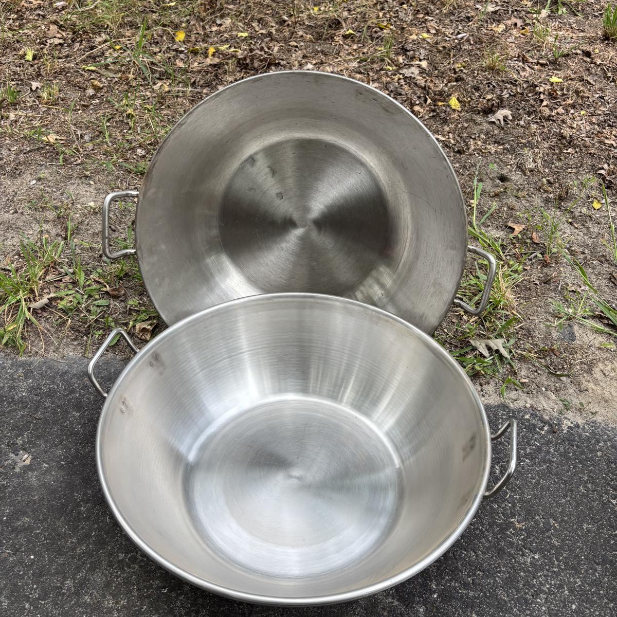 LOT 93: Stainless Steel Cookware Collection: Flatbottom Pan/Wok (2), Juicer Pot Made in Finland, Poacher/Steamer Pots