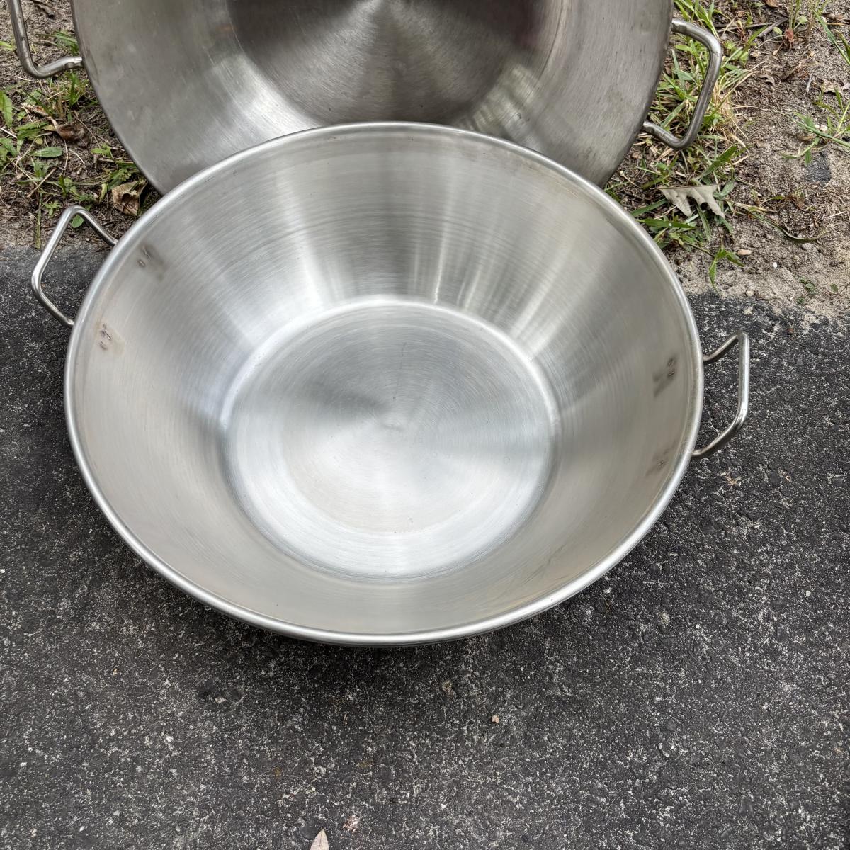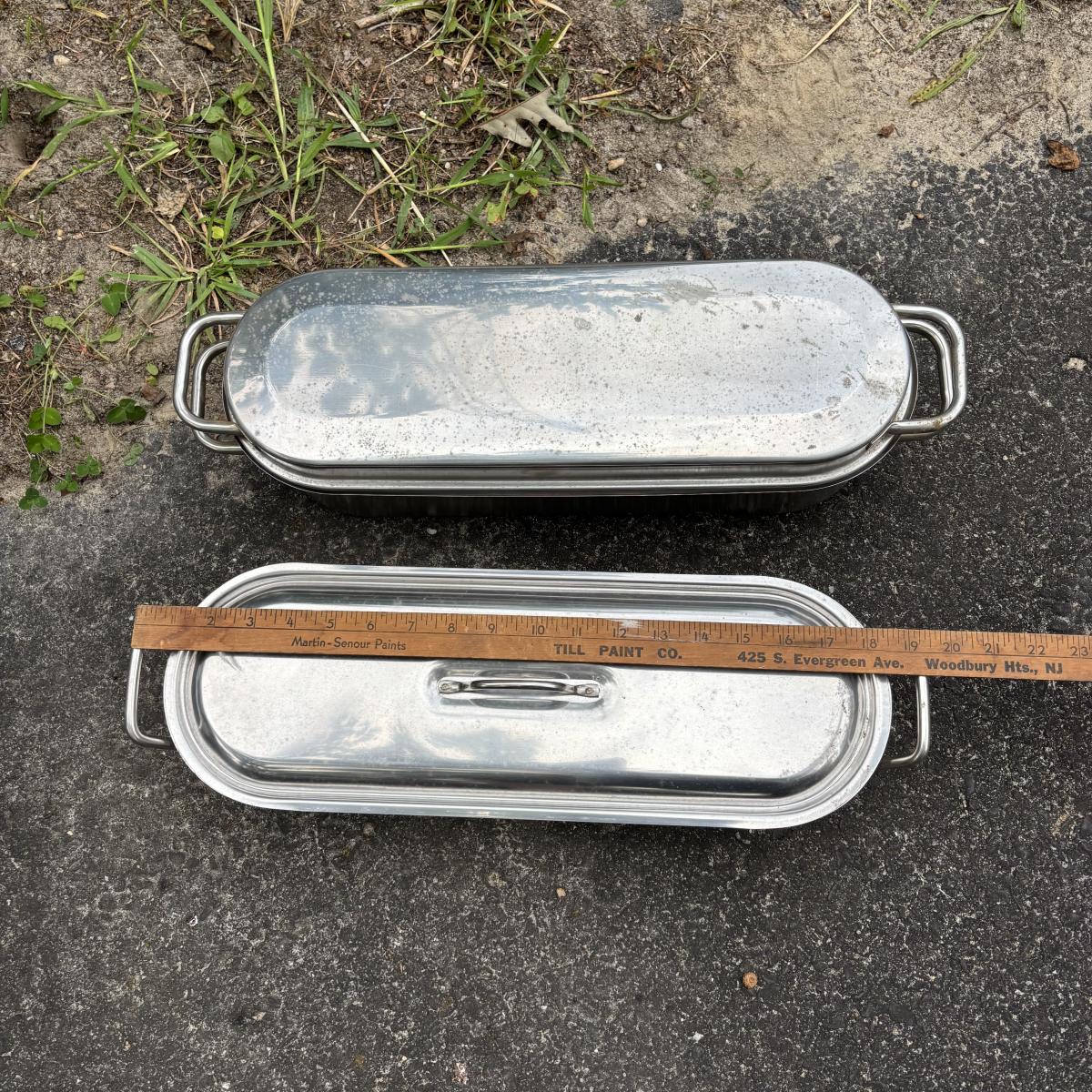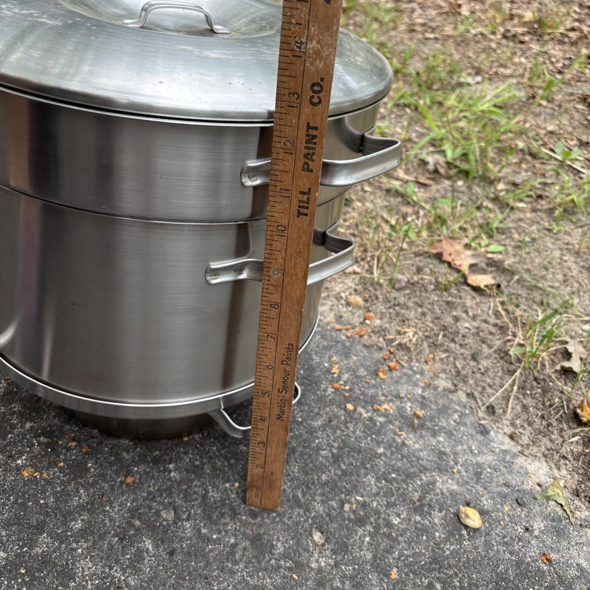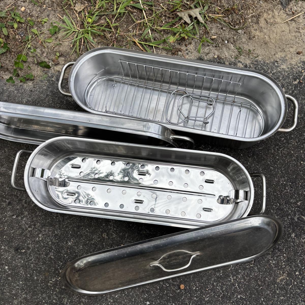LOT 93: Stainless Steel Cookware Collection: Flatbottom Pan/Wok (2), Juicer Pot Made in Finland, Poacher/Steamer Pots