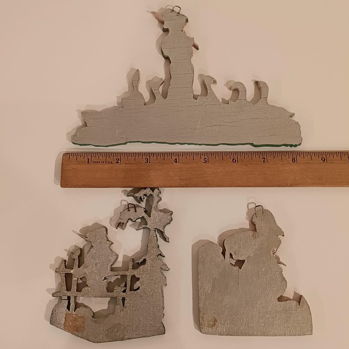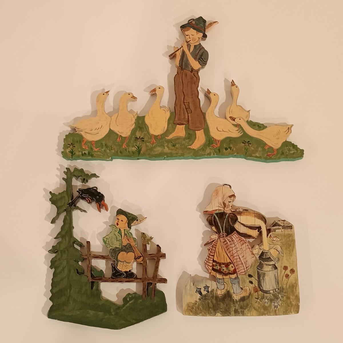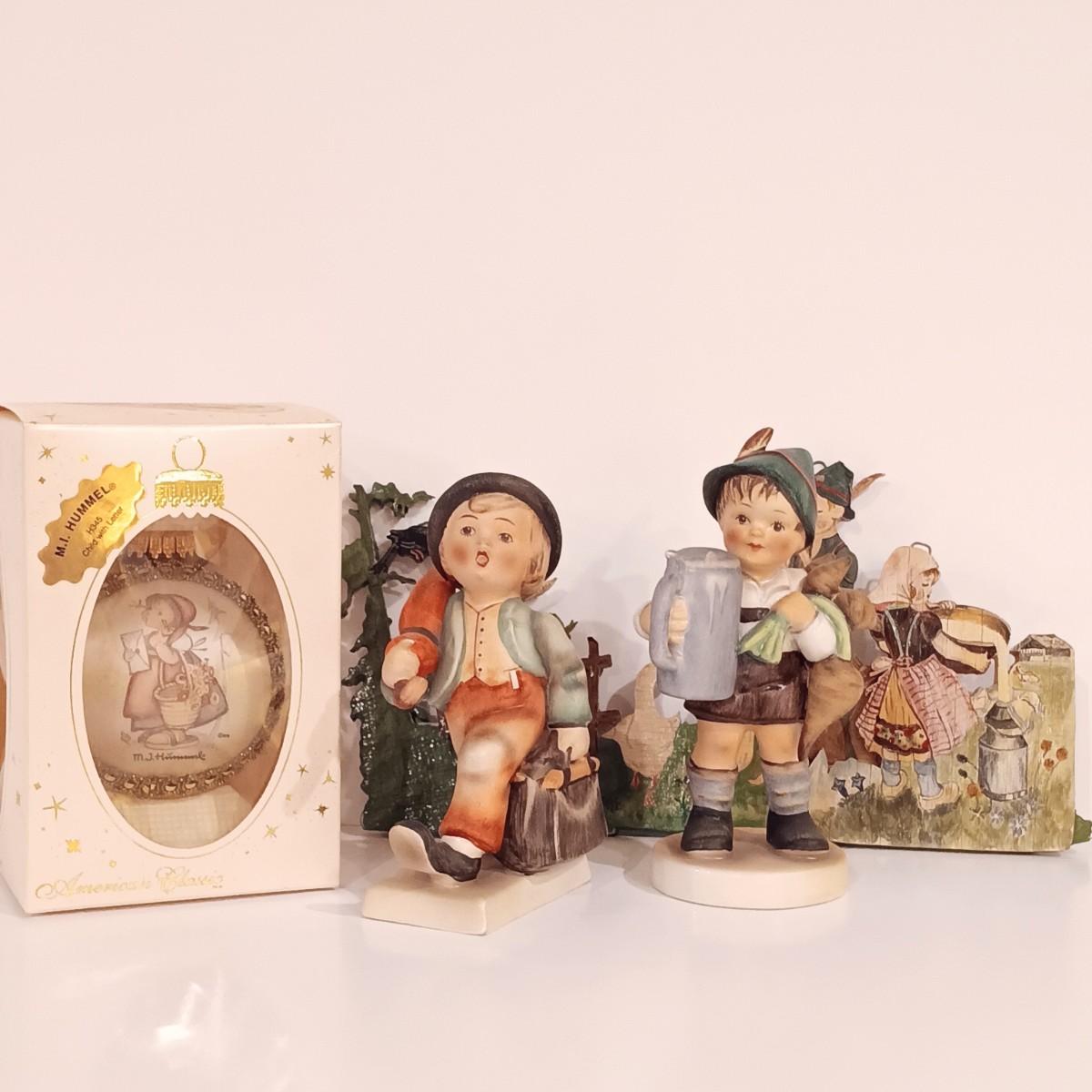 LOT 113: Hummel Goebel Merry Wanderer and For Father Figurines with Hummel Ornament & Painted Wood Die Cuts